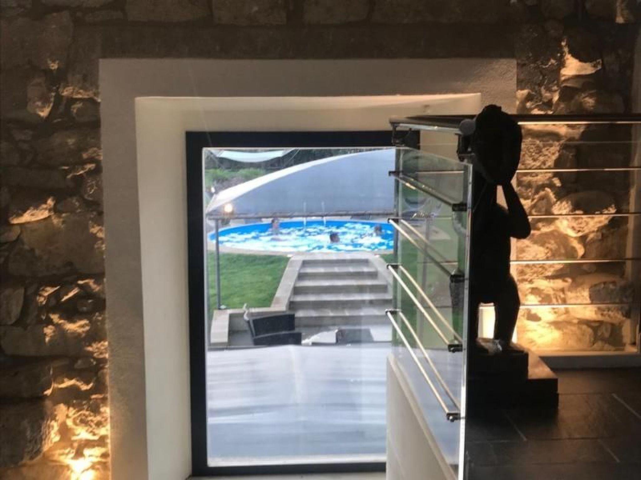The stay is perfect for relaxing after a day of hiking. Rest on the comfortable sofa and enjoy a good book in front of the fireplace or take advantage of the amenities offered by the property, including WiFi and Hi-Fi. The kitchen is fully equipped to allow you to cook your favourite dishes. Enjoy your meals at the dining table with seating for 16 or outside on the terrace, balcony. or in the garden Enjoy the view of the pool. The farmhouse has 5 comfortable bedrooms, 4 with a double bed, and 1 with 2 single beds. Several bathrooms are available, 3 with a shower and WC. Separate toilets are available The farmhouse has a safe, a hoover, cleaning products, an iron and ironing board, a tumble dryer, air conditioning, a washing machine, central heating, a jacuzzi and a desk. Please note that cleaning, towels, bed linen and tourist tax are included in the rental cost. Parking is available on site and is private.