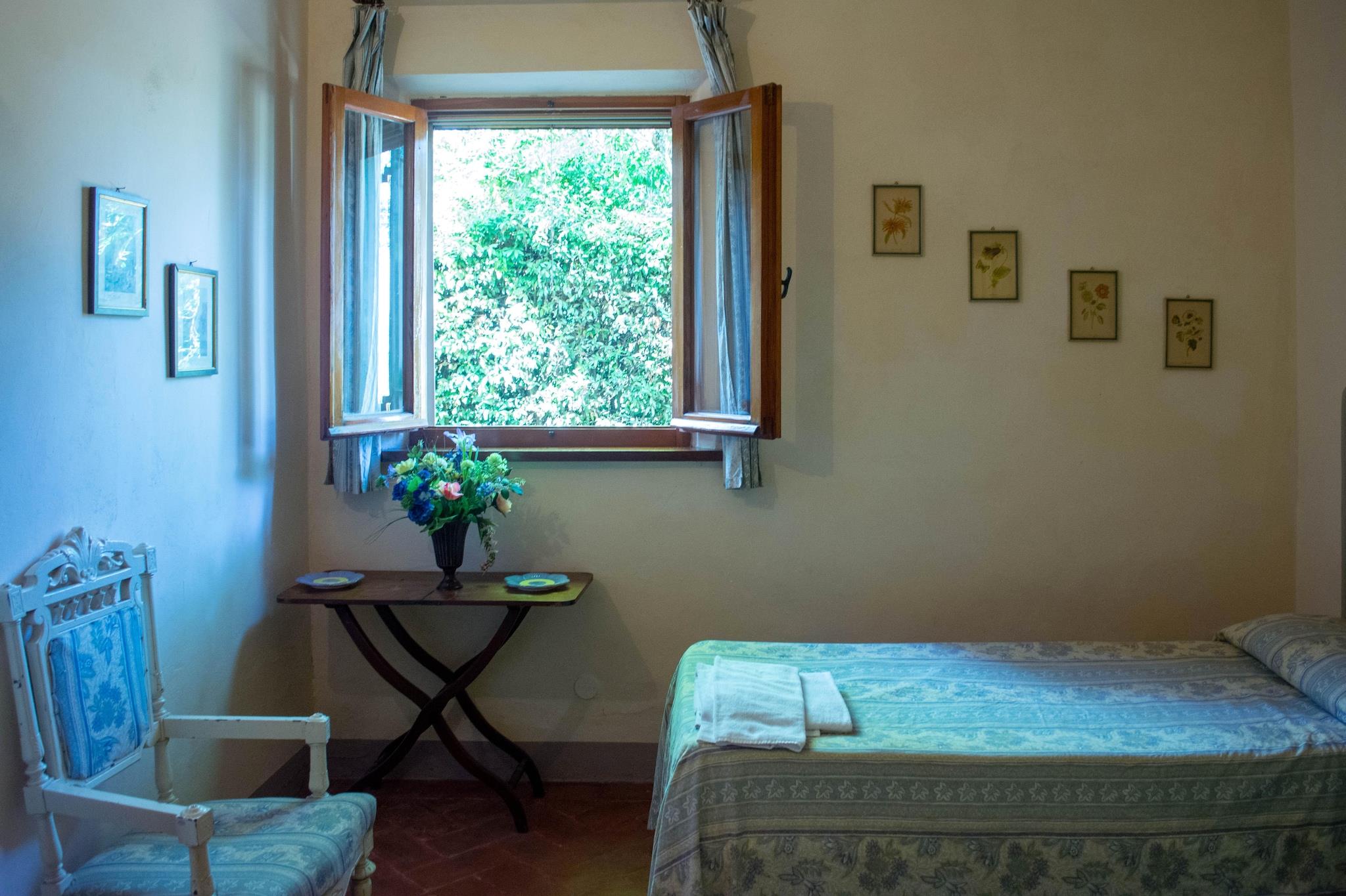 Denne charmerende bondegårdslejlighed i Umbertide tilbyder en fredelig flugt for op til fem gæster. Beliggende på 2. sal i en traditionel ejendom, den har terracottagulve, synlige bjælker, et rummeligt køkken og hyggelige soveværelser. Gæsterne har adgang til en panoramisk swimmingpool og en naturskøn udsigt over landskabet, perfekt til at slappe af med kæledyr eller deres kære. Kun 1 km væk kan du udforske Umbertides historiske centrum med butikker og markeder, eller spise på Locanda Appennino og Ristorante Calagrana for at få autentiske umbriske smagsoplevelser. Vinelskere kan nyde smagsprøver på ejendommens egen vingård, mens golfspillere vil sætte pris på den nærliggende Antognolla Golfklub. For kultur, besøg Perugia, Assisi eller Gubbio, og gå ikke glip af lokale perler som La Rocca, Museo Civico di Santa Croce og Centro di Equitazione Marana. Spisemuligheder omfatter også C'era una volta, Osteria Del Boccajolo og Tipico Osteria dei Sensi i det nærliggende Montone5. Med naturstier, vinmarker og nem adgang til Toscana er dette bondehus en perfekt base for at udforske Umbriens skønhed og charme.