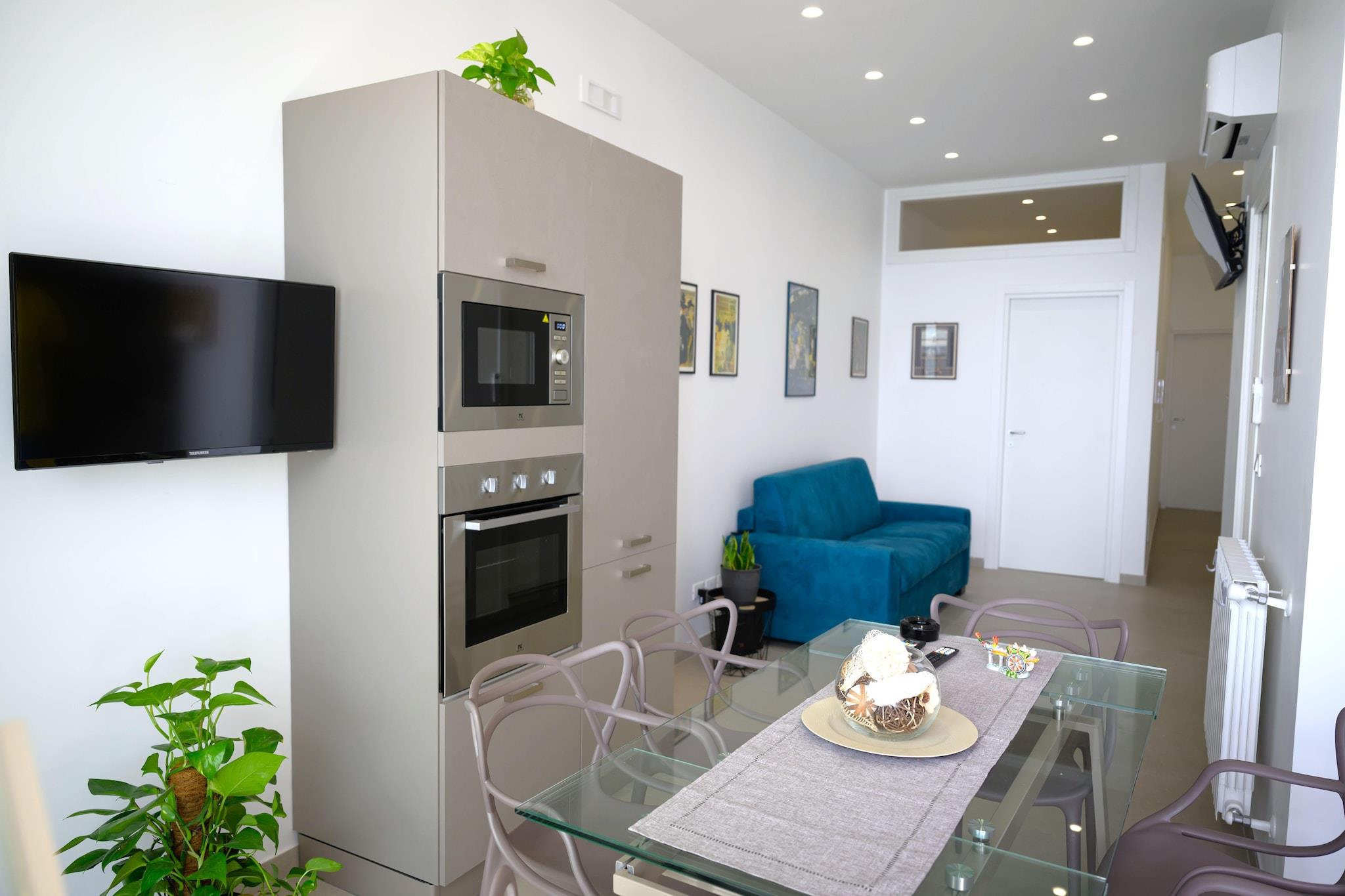 Din perfekte ferie på Sicilien! En elegant lejlighed udstyret med alle bekvemmeligheder kun få skridt fra havet. En pragtfuld udsigt over Giardini Naxos-bugten og dens vidunderlige hav, som du kan beundre og "opleve" fra en terrasse, der vil efterlade dig forpustet! Lejligheden er perfekt placeret til at nyde det bedste af Giardini. Området, hvor huset ligger, huser butikker, markeder, karakteristiske restauranter og indbydende barer og er godt forbundet med de nærliggende tog- og busstationer. Uanset om du udforsker de lokale attraktioner, slapper af på stranden eller nyder det livlige byliv, er denne lejlighed den ideelle base for en uforglemmelig ferie. Taormina ligger kun 10 minutter væk i bil, og Etna og dens naturalistiske og naturskønne skønheder er også inden for rækkevidde. Lejligheden er nybygget, har to udsigter, er udstyret med aircondition i alle rum, og består af to soveværelser, en stue med en dobbelt sovesofa, et komfortabelt badeværelse og et moderne køkken udstyret til alle dine behov. En invitation til Sicilien, for at se, leve og smage. Lejlighed på 1. sal, i Corso Umberto I n.12, 110 kvadratmeter, sammensat af en balkon på hovedgaden og en terrasse med udsigt over havet udstyret med et tet et tet bord, paraply, udendørs vask, 1 soveværelse med dobbeltseng dobbeltseng, 1 soveværelse med to enkeltsenge, der kan udvides til at rumme en ekstra seng, stort køkken-alrum med dobbelt sovesofa, 1 badeværelse med bruser, bidet, håndvask.