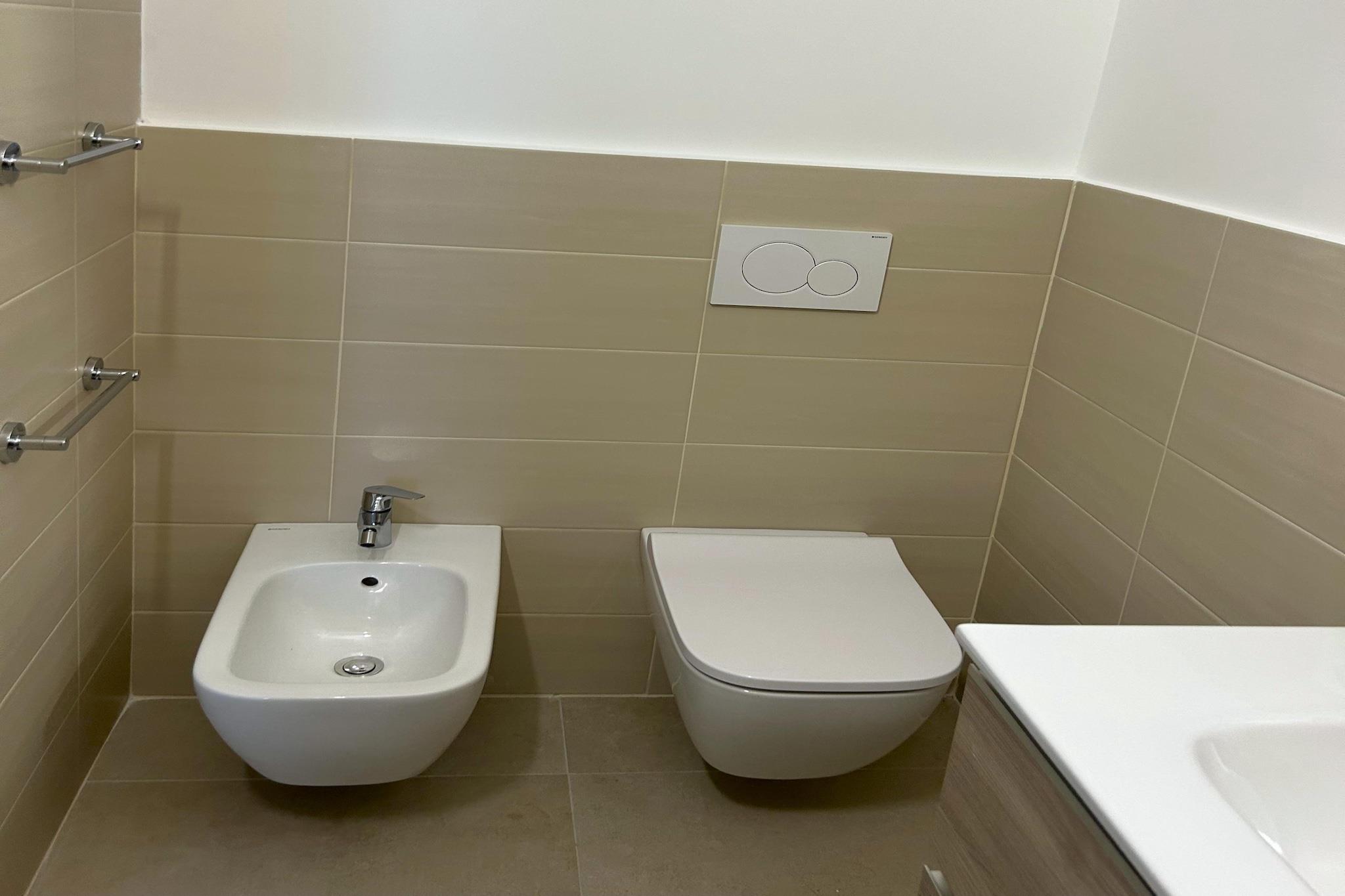 På 1. etage: (Stue(dobbeltsovesofa, Fjernsyn, spisebord, sofahjørne), åbent køkken(kogeplade, emhætte, ovn, mikrobølgeovn, køle-fryseskab), soveværelse(dobbeltseng, Fjernsyn), soveværelse(enkeltseng, enkeltseng, Fjernsyn), badeværelse(bruser, håndvask, toilet, bidet), balkon, klimaanlæg)