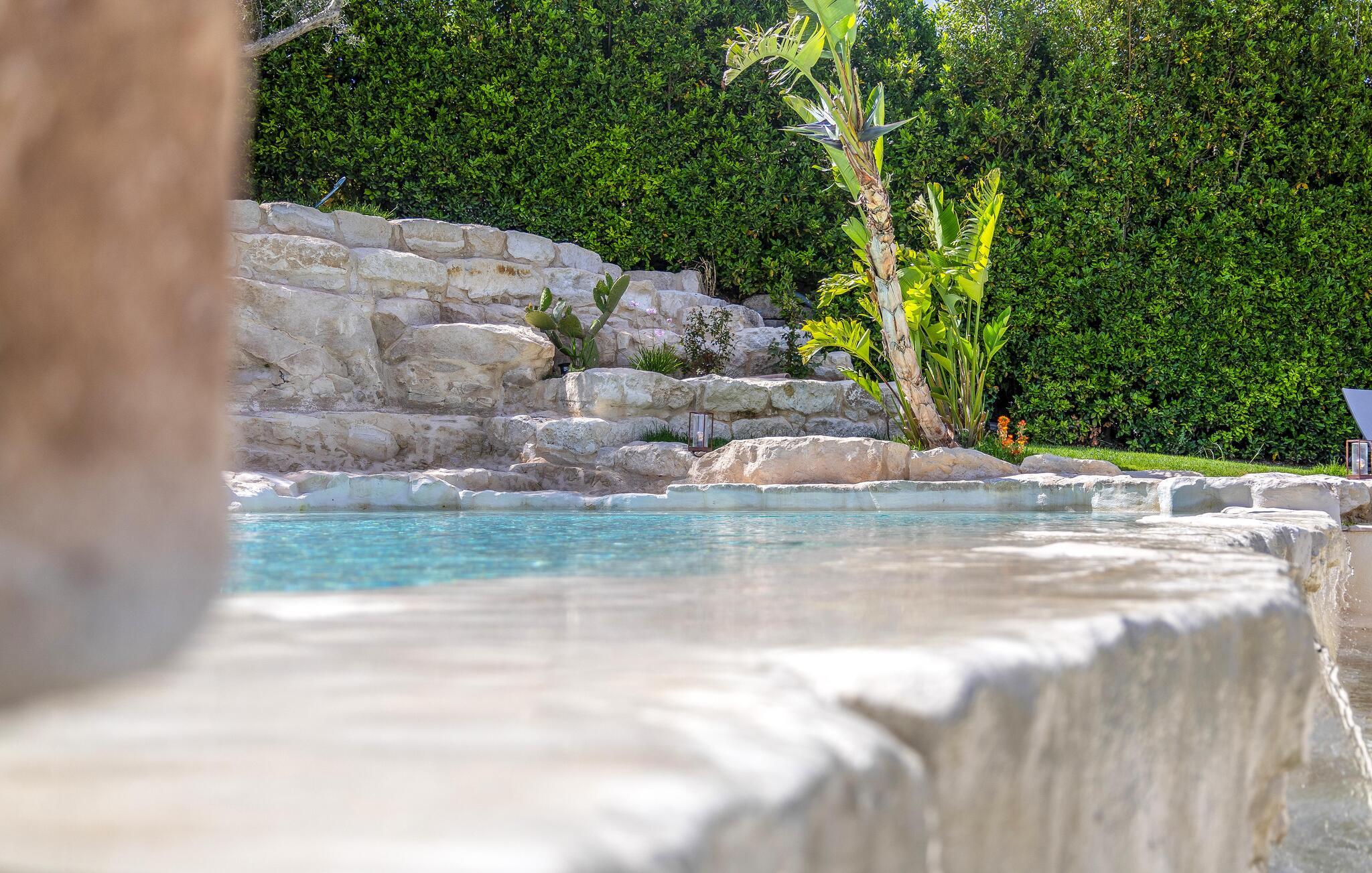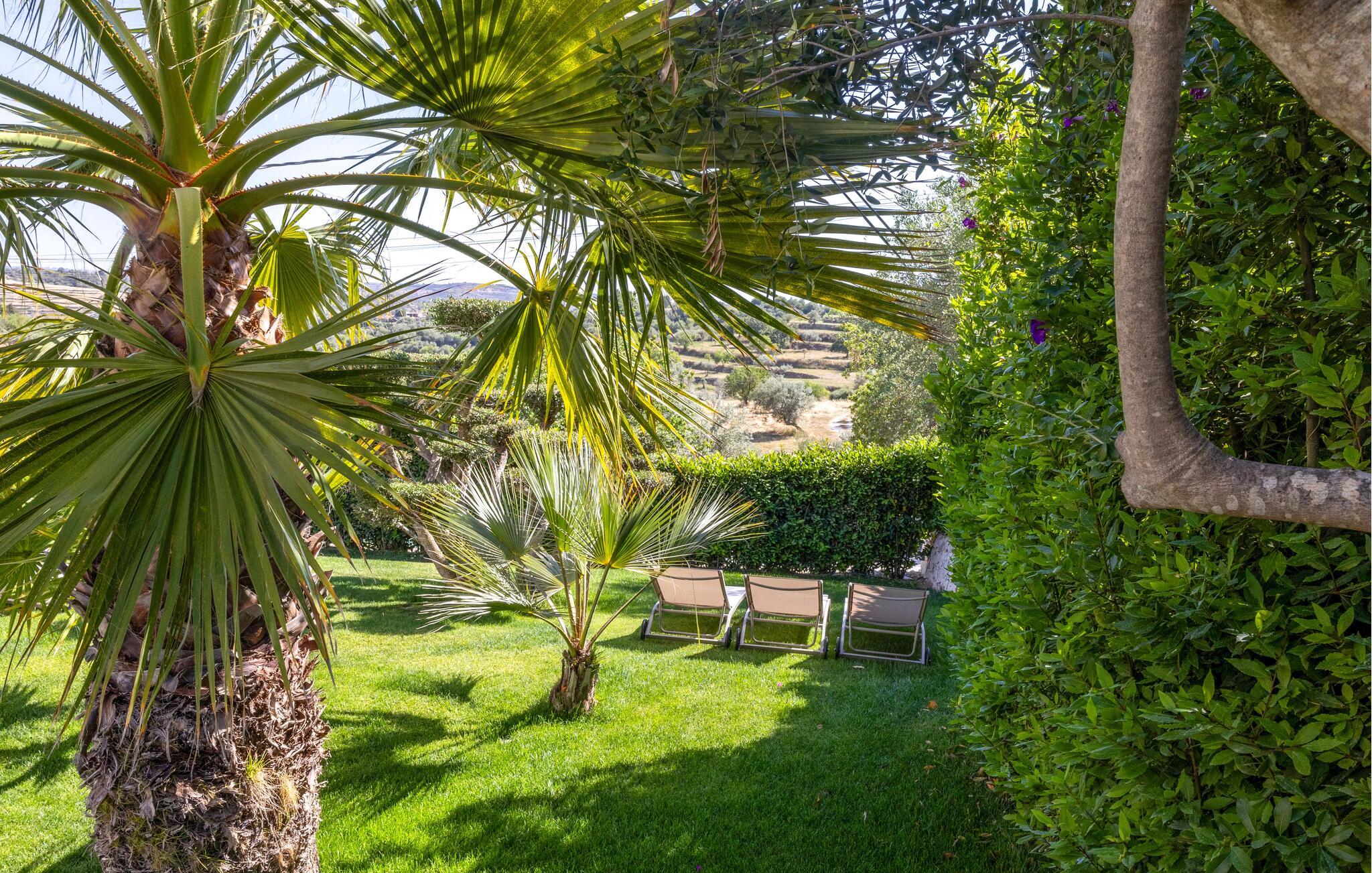 Udendørs venter et sandt paradis. Slap af i den rummelige have med udsigt over olivenlunde og palmer, mens børnene nyder sjove øjeblikke på rutsjebanen eller trampolinen. Dyk ned i den luksuriøse pool med vandfald, og nyd solen på de komfortable liggestole. Arrangér uforglemmelige grillaftener under åben himmel, eller afslut dagen med et glas vin i loungen, mens I betragter stjernehimlen.