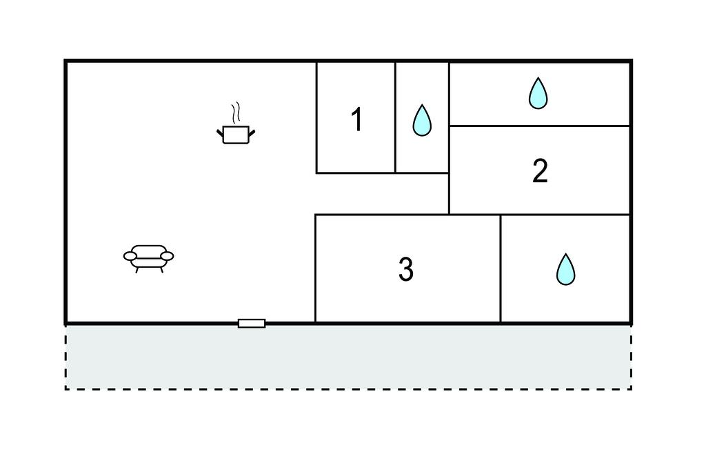 Badeværelse 3m2 (nr. 1) - WC. Varmt og koldt vand. Bruser
