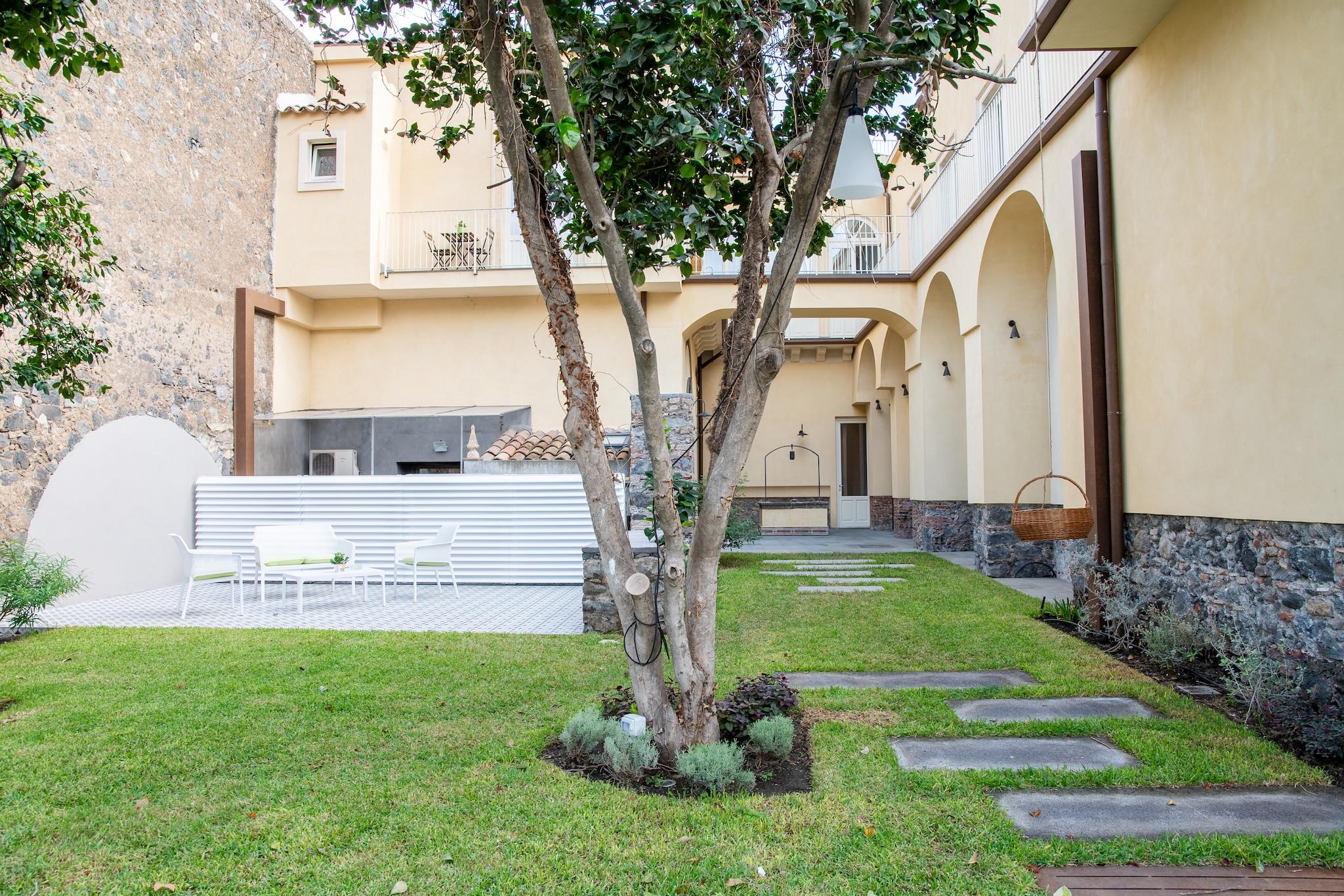 Denne luksuriøse historiske bolig, der dateres tilbage til 1700, er beliggende i hjertet af Giarre og er blevet elegant restaureret med materialer af høj kvalitet som marmor, lavasten og hvide sten. Første sal, der er tilgængelig via en majestætisk trappe, rummer fire raffinerede boliger med parketgulve, originale døre og smagfuld indretning. Designet med bæredygtighed i tankerne, bruger boligen solenergi til opvarmning og afkøling, hvilket tilbyder gæsterne både komfort og miljøbevidsthed. Ideelt placeret for at udforske den rige historie og naturlige skønhed i det østlige Sicilien, tilbyder boligen nem adgang til attraktioner såsom Taormina, Catania, Etna og den fantastiske kystlinje. Ejendommen tilbyder betalingsparkering på stedet, og der er også gratis parkering i kort afstand. Lejligheden består af et soveværelse med dobbeltseng, en hyggelig stue og et fuldt udstyret køkken. Den byder også på en balkon med udsigt over villaens frodige have, så gæsterne kan nyde roen i omgivelserne. Indkvarteringsfaciliteterne er af højeste standard og designet til at tilbyde gæsterne en maksimal komfortoplevelse. Gratis produkter såsom shampoo, shower gel, hjemmesko, kropscreme er inkluderet, sammen med praktisk tilbehør såsom hårtørrer, strygejern og strygebræt. Derudover leveres bløde håndklæder, badekåber, poolhåndklæder og et førstehjælpssæt for at sikre et bekymringsfrit ophold.