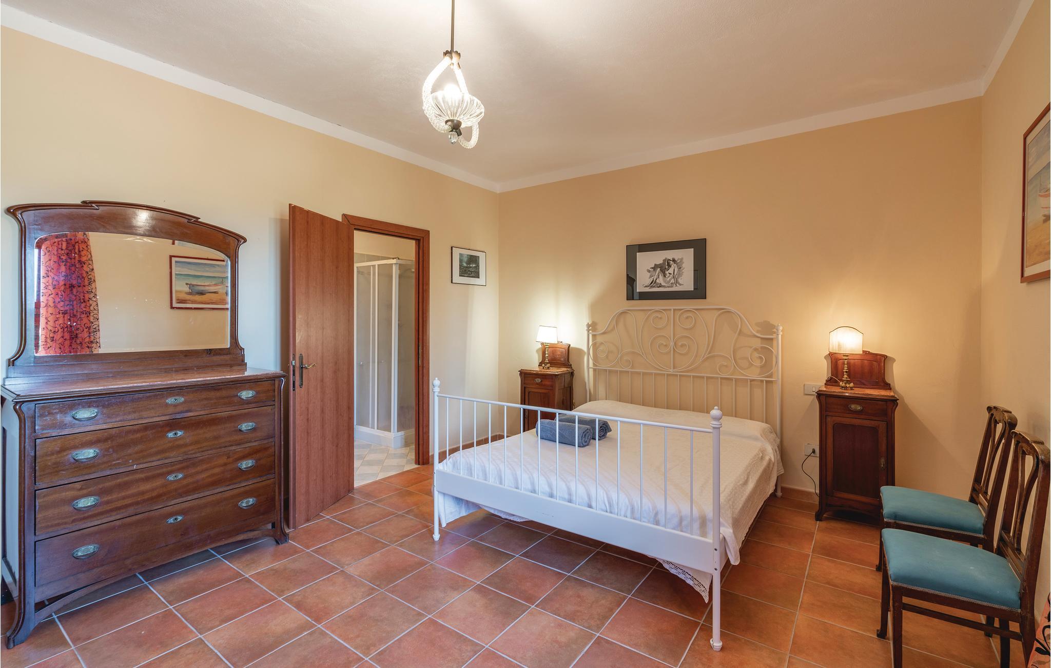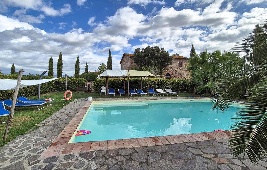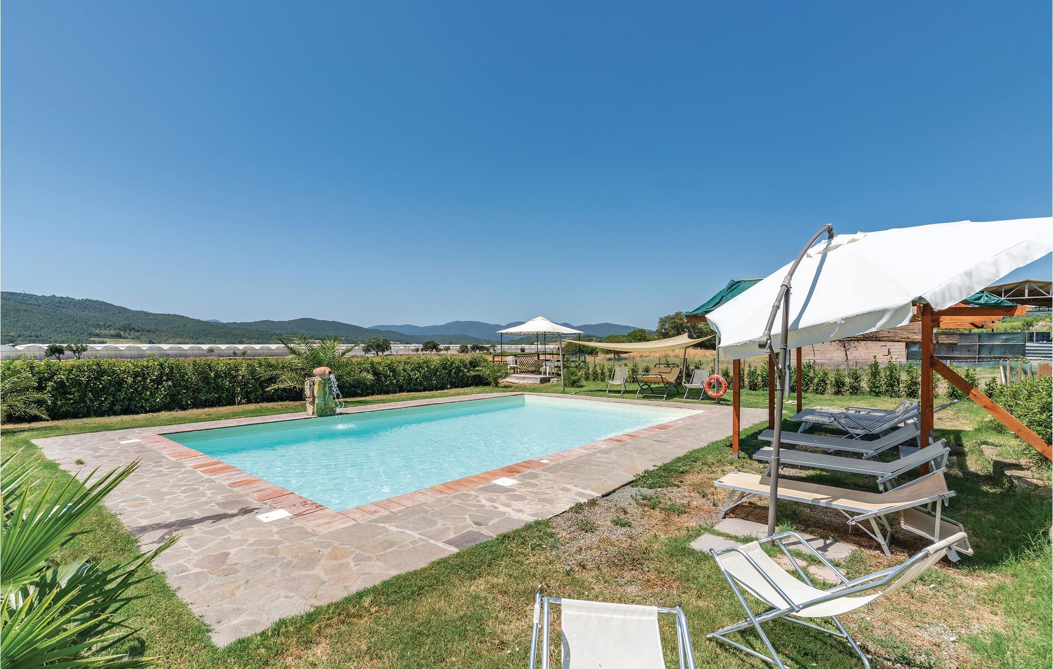 Dette smukke, fritliggende feriehus på en bakke med udsigt over Maremmas landskab, ligger ca. 2 km fra den nærmeste større by, Guincarico, og bare 20 km fra de lange strande ved Castiglione della Pescaia og Follonica-golfen. Huset ligger på en stor naturgrund med privat pool. I stueplan er der en rummelig opholdsstue, køkken, soveværelse med dobbeltseng og badeværelse. På første sal er der tekøkken, lille stue, fem soveværelser med dobbeltseng, tre med yderligere en gæsteseng, fire badeværelser med brusebad. I haven er der et stort område, hvor der er bord, stole og en grillplads. Der er ca. 15 km til golfbanen "Il Pelagone", ca. 30 km til Venturinas kurbade. Lige i nærheden kan I besøge middelalderlandsbyerne Massa Marittima, Gavorrano, Scarlino og Vetulonia, der især er kendt for sin velbevarede etruskiske Nekropol.