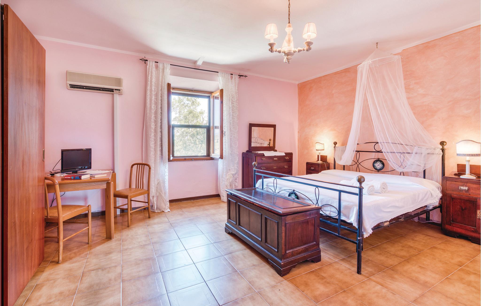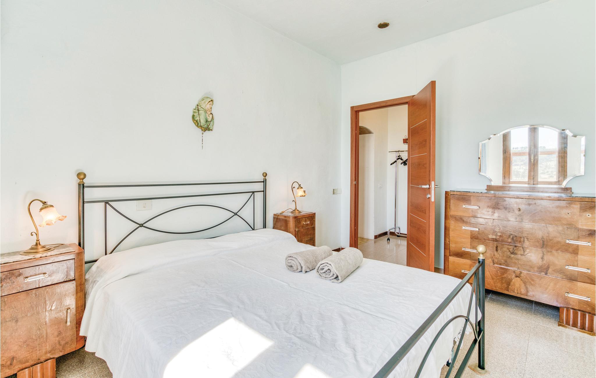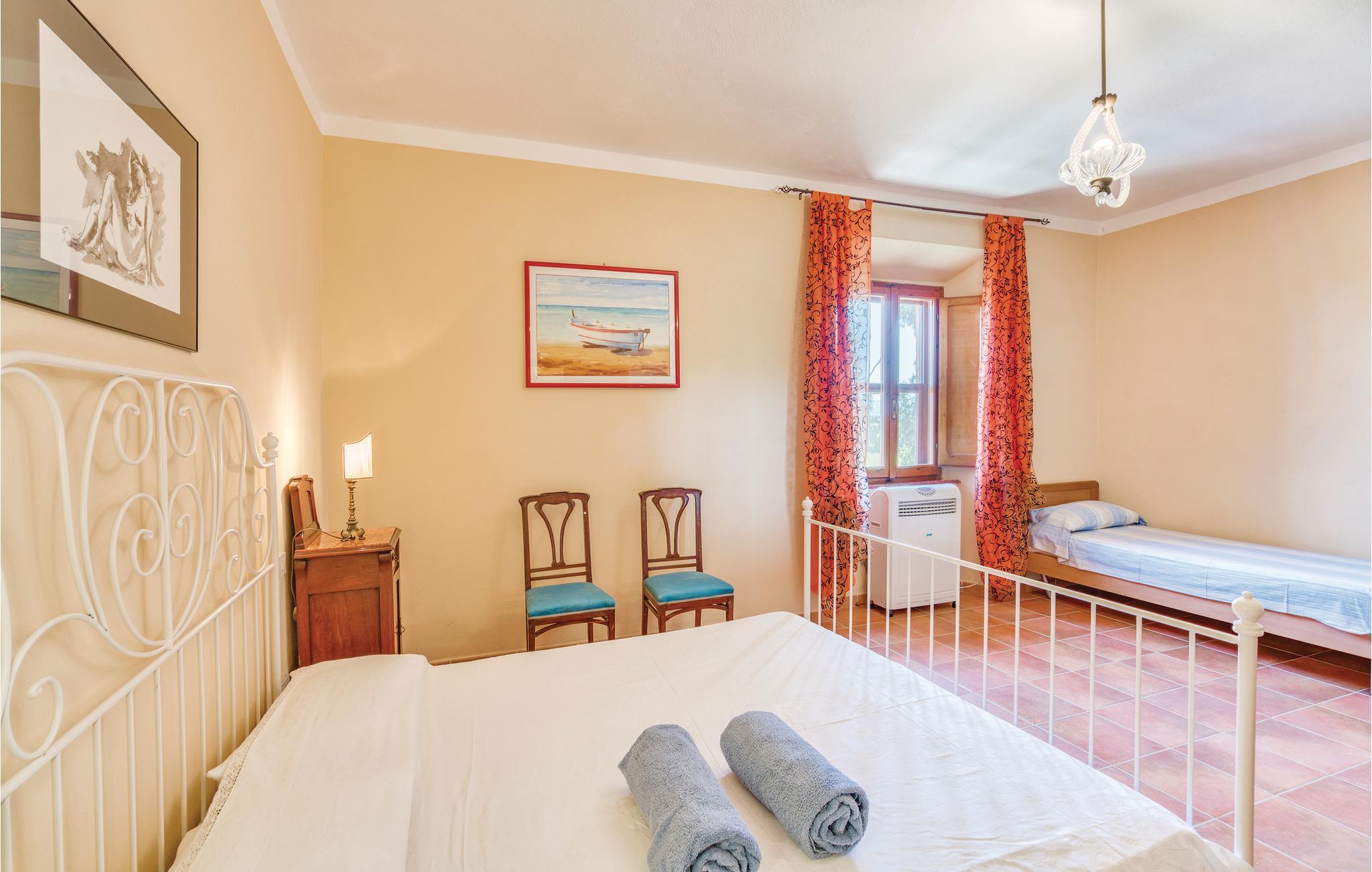 Dette smukke, fritliggende feriehus på en bakke med udsigt over Maremmas landskab, ligger ca. 2 km fra den nærmeste større by, Guincarico, og bare 20 km fra de lange strande ved Castiglione della Pescaia og Follonica-golfen. Huset ligger på en stor naturgrund med privat pool. I stueplan er der en rummelig opholdsstue, køkken, soveværelse med dobbeltseng og badeværelse. På første sal er der tekøkken, lille stue, fem soveværelser med dobbeltseng, tre med yderligere en gæsteseng, fire badeværelser med brusebad. I haven er der et stort område, hvor der er bord, stole og en grillplads. Der er ca. 15 km til golfbanen "Il Pelagone", ca. 30 km til Venturinas kurbade. Lige i nærheden kan I besøge middelalderlandsbyerne Massa Marittima, Gavorrano, Scarlino og Vetulonia, der især er kendt for sin velbevarede etruskiske Nekropol.