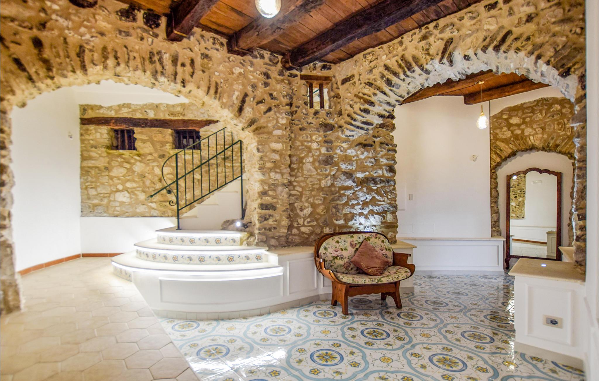 Denne smukke historiske bolig ligger i udkanten af nationalparken Cilento og Vallo di Diano. Den rummelige bolig består af attraktive rum fordelt på to etager med rå murstensvægge, rundbuer og synlige trælofter. Der er god komfort og private soveværelser. Sæt jer med morgenkaffen med udsigt over landskabet fra balkonen og læg planer for den kommende feriedag.