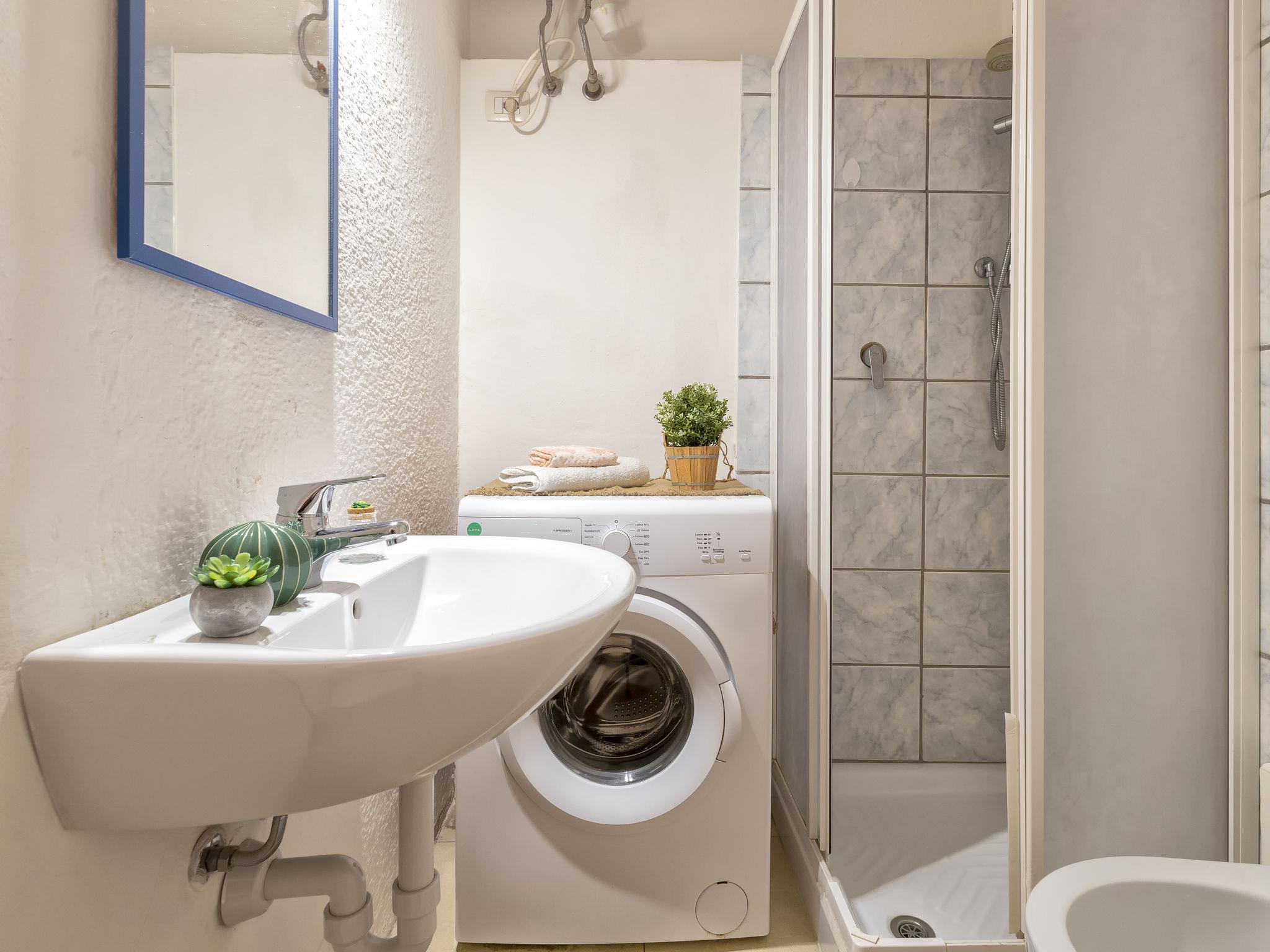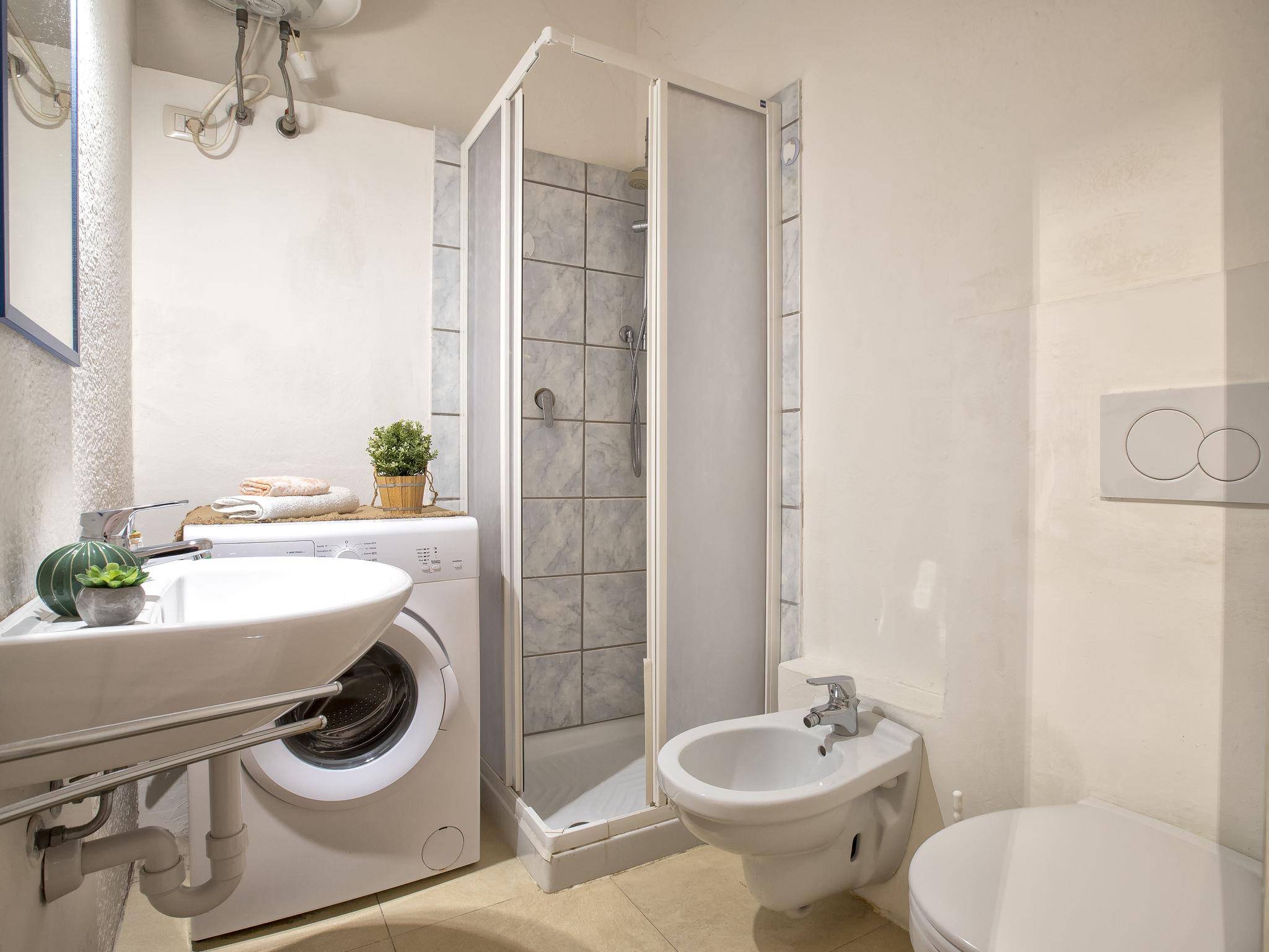 "La Delfina", 2-room apartment 35 m2 on 1st floor. Simple and practical furnishings: living/dining room with 2 sofabeds and TV (flat screen). Kitchen-/living room (4 induction hot plates, toaster, kettle, microwave, electric coffee machine). Shower/bidet/WC. No heating option. Facilities: washing machine, iron, hair dryer. Internet (WiFi, free). IT090083C2000S6445