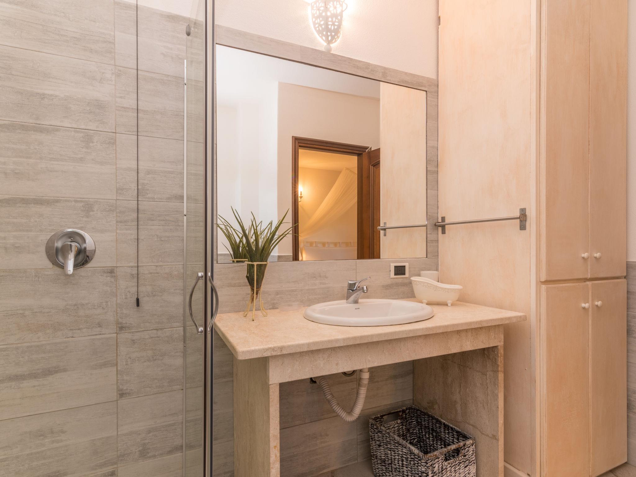 "Lentischio", 3-room apartment 95 m2, on the ground floor. Tasteful and cosy furnishings: living/dining room with 1 sofabed, satellite TV and air conditioning. Exit to the terrace. 1 double bedroom with shower/bidet/WC. 1 room with 1 bed and 1 x 2 bunk beds. Kitchen (oven, dishwasher, 4 induction hot plates, 4 gas rings, microwave). Shower/bidet/WC. Electric heating, air-conditioning (extra). Terrace 30 m2 partly roofed, garden 75 m2, lawn. Terrace furniture, deck chairs (2). Marvellous view of the sea. Facilities: washing machine, iron, children's high chair, baby cot (extra), hair dryer. Parking (roofed). Maximum 1 pet/ dog allowed. IT090083B4000E2141