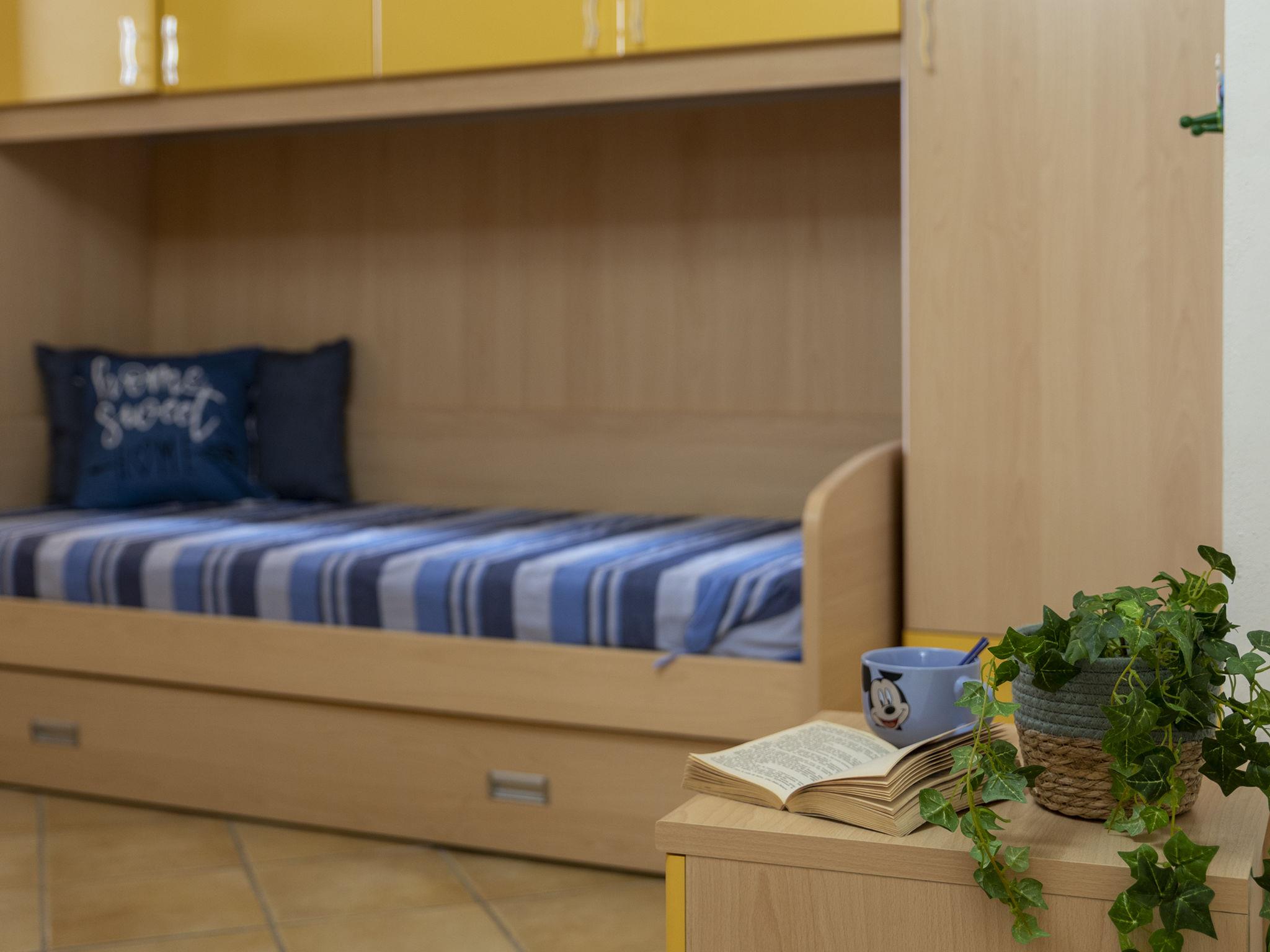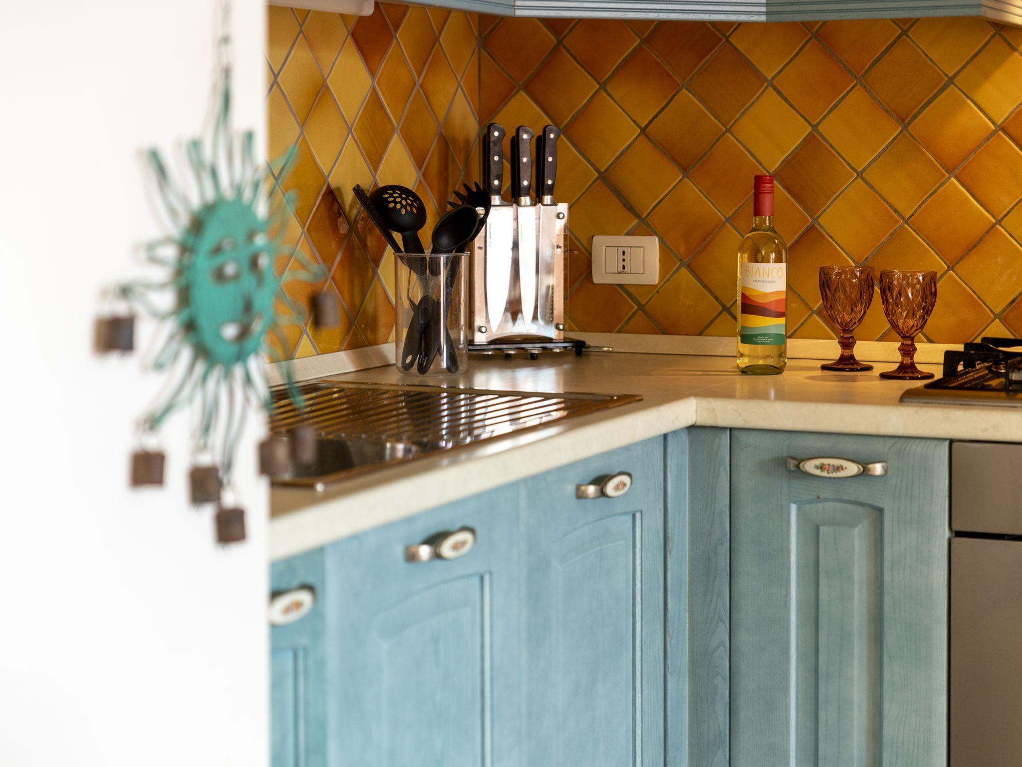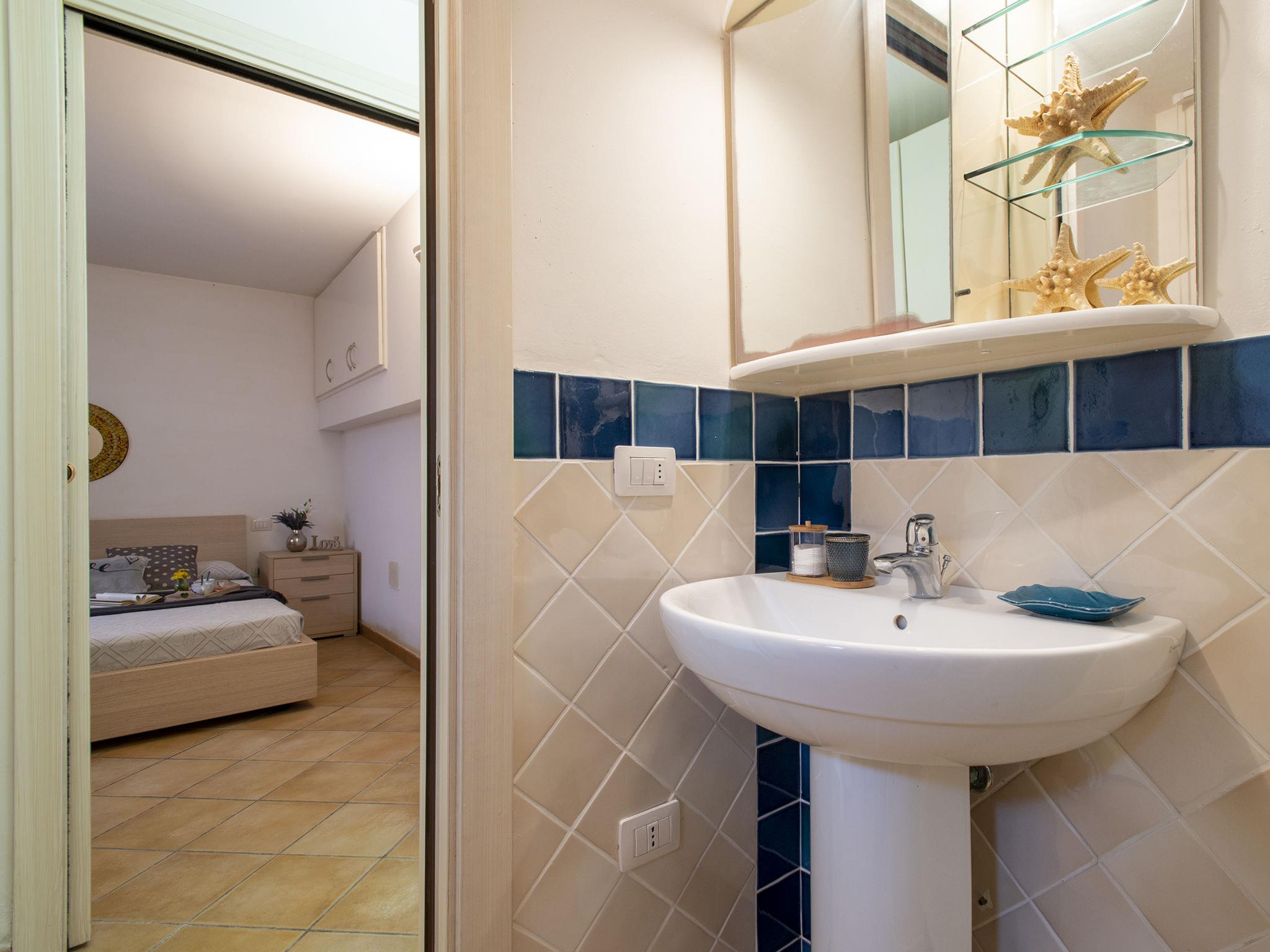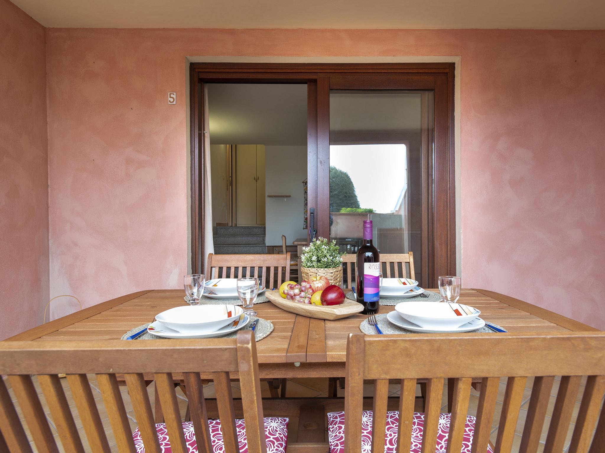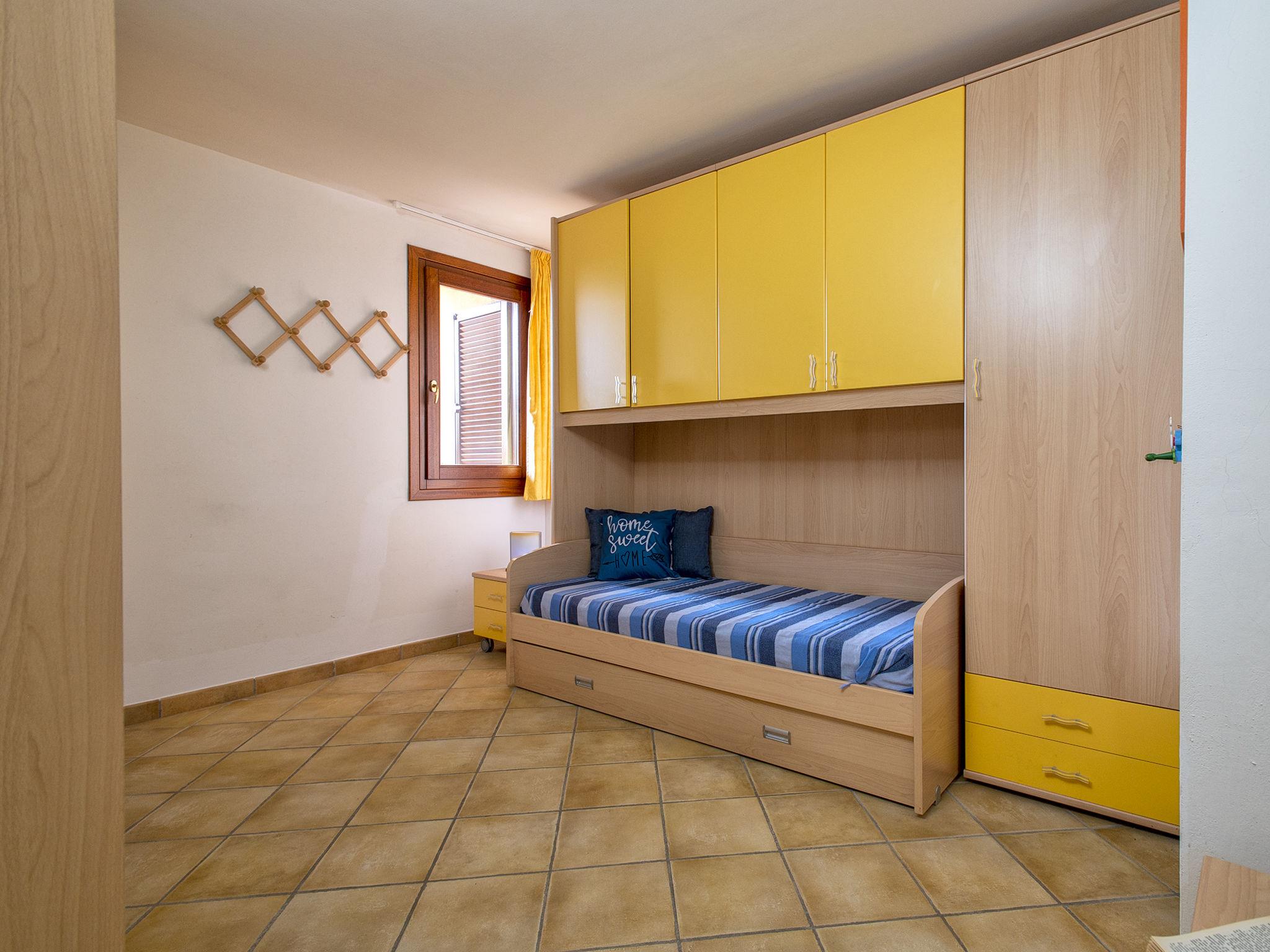 "Orizzonti 5", 3-room apartment 75 m2, on the ground floor. Comfortable and cosy furnishings: living/dining room with 1 sofabed, dining table, TV, air conditioning and forced-air heating. Exit to the terrace. 1 double bedroom. Exit to the balcony. 1 room with 1 bed, 2 wall-trunk beds, air conditioning and forced-air heating. Kitchen (oven, dishwasher, 4 gas rings, toaster, kettle). Shower/bidet/WC. Heating not available in all rooms. Terrace partly roofed. Terrace furniture. View of the resort. Facilities: washing machine, iron, children's high chair, hair dryer. Parking at 20 m. Please note: non-smoking house. IT090083C2000S9722