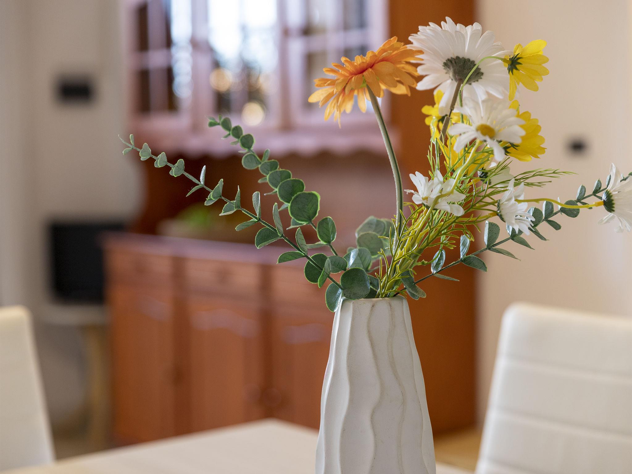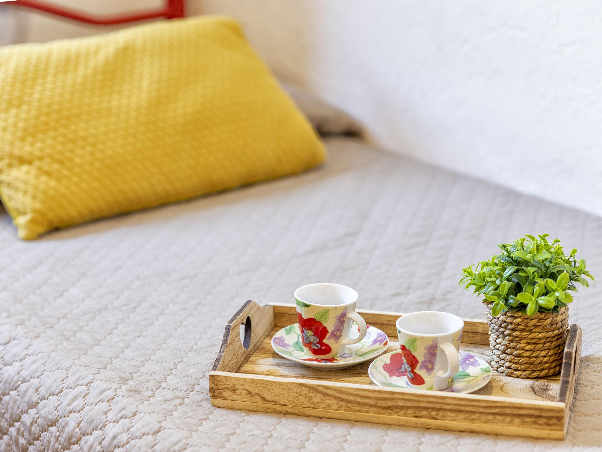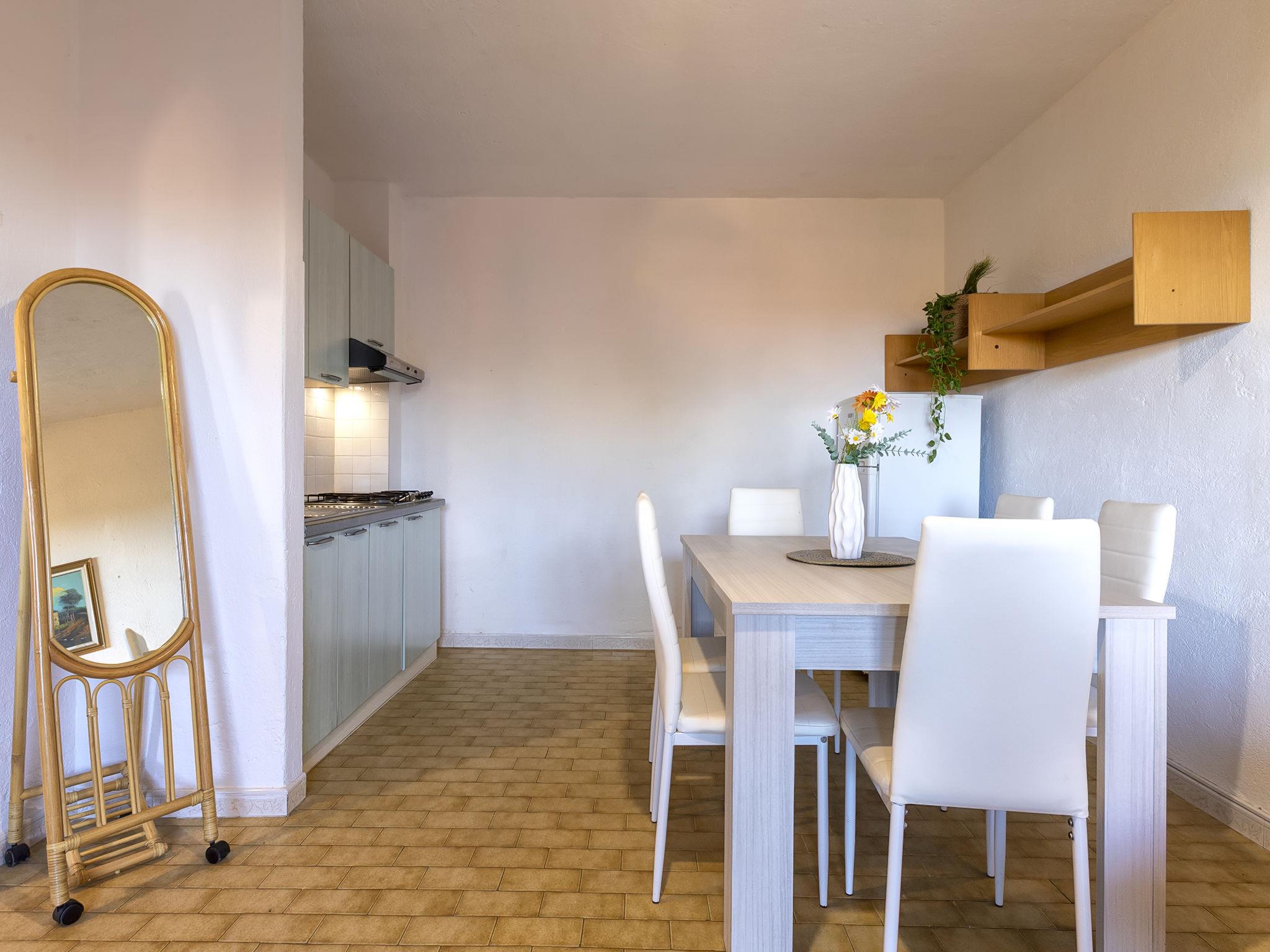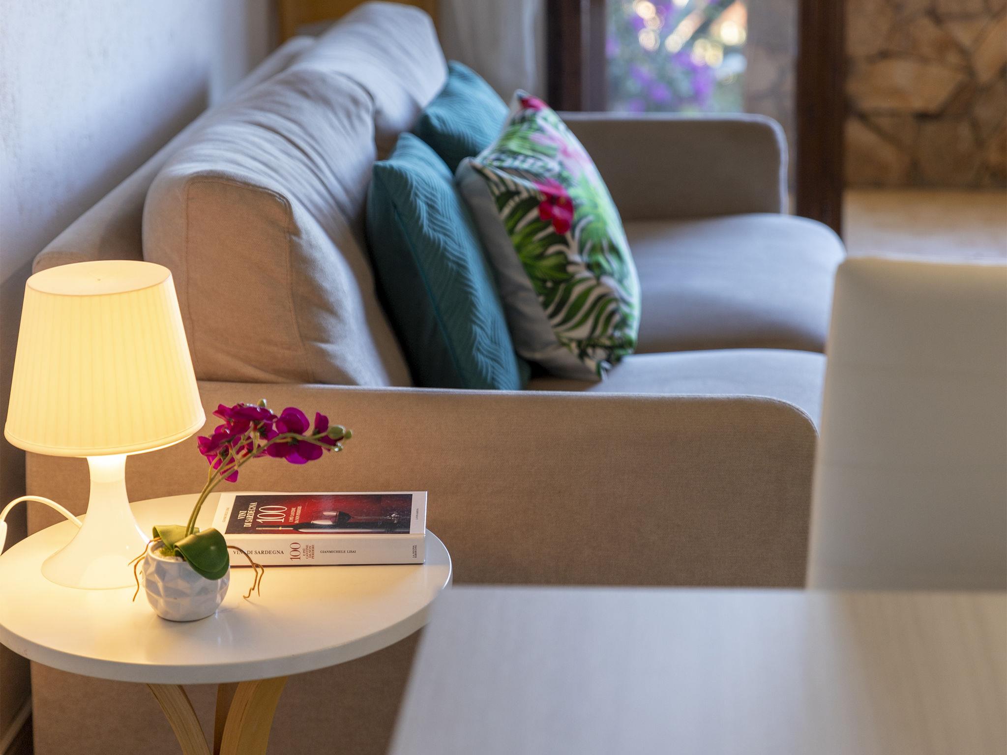 "CSB - 9 - Baia de Bahas", 3-room apartment 55 m2, on the upper ground floor. Comfortable and cosy furnishings: living/dining room with 1 double sofabed, dining table, TV, air conditioning and forced-air heating. Exit to the veranda. 1 double bedroom. 1 room with 2 beds. Kitchenette (3 hot plates, toaster, kettle). Shower/bidet/WC. Air-conditioning, forced-air heating. Heating not available in all rooms. Large terrace 5 m2 partly roofed. Terrace furniture. Facilities: hair dryer. Maximum 1 pet/ dog allowed. IT090083C2000S3205
