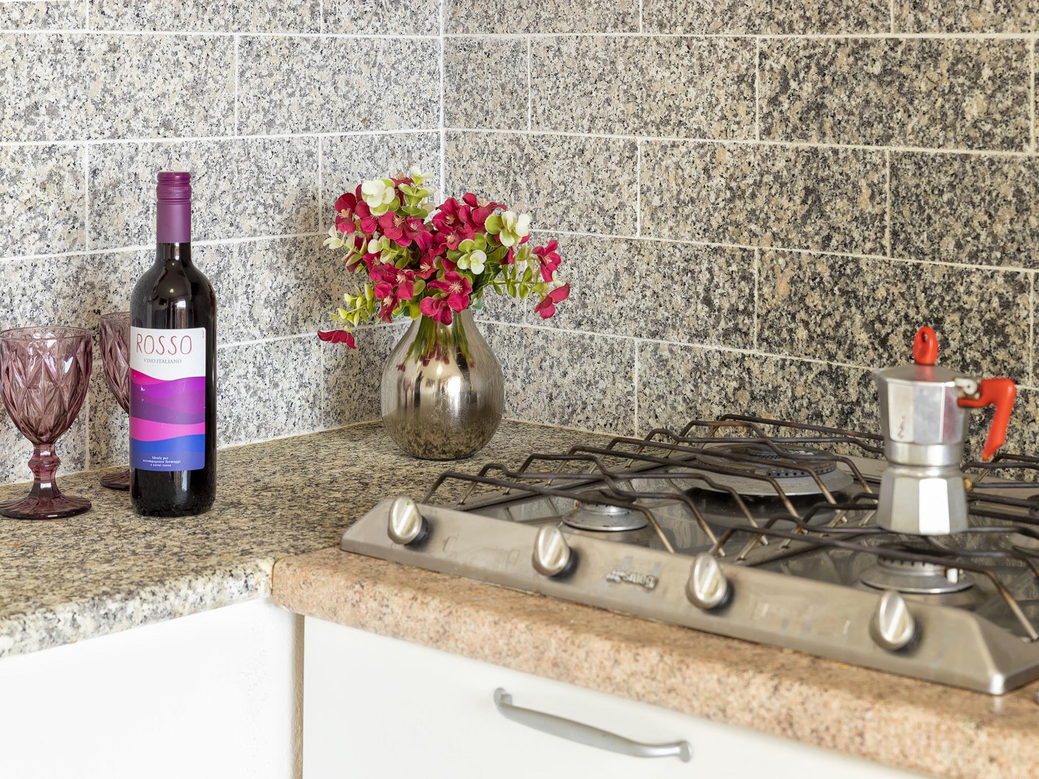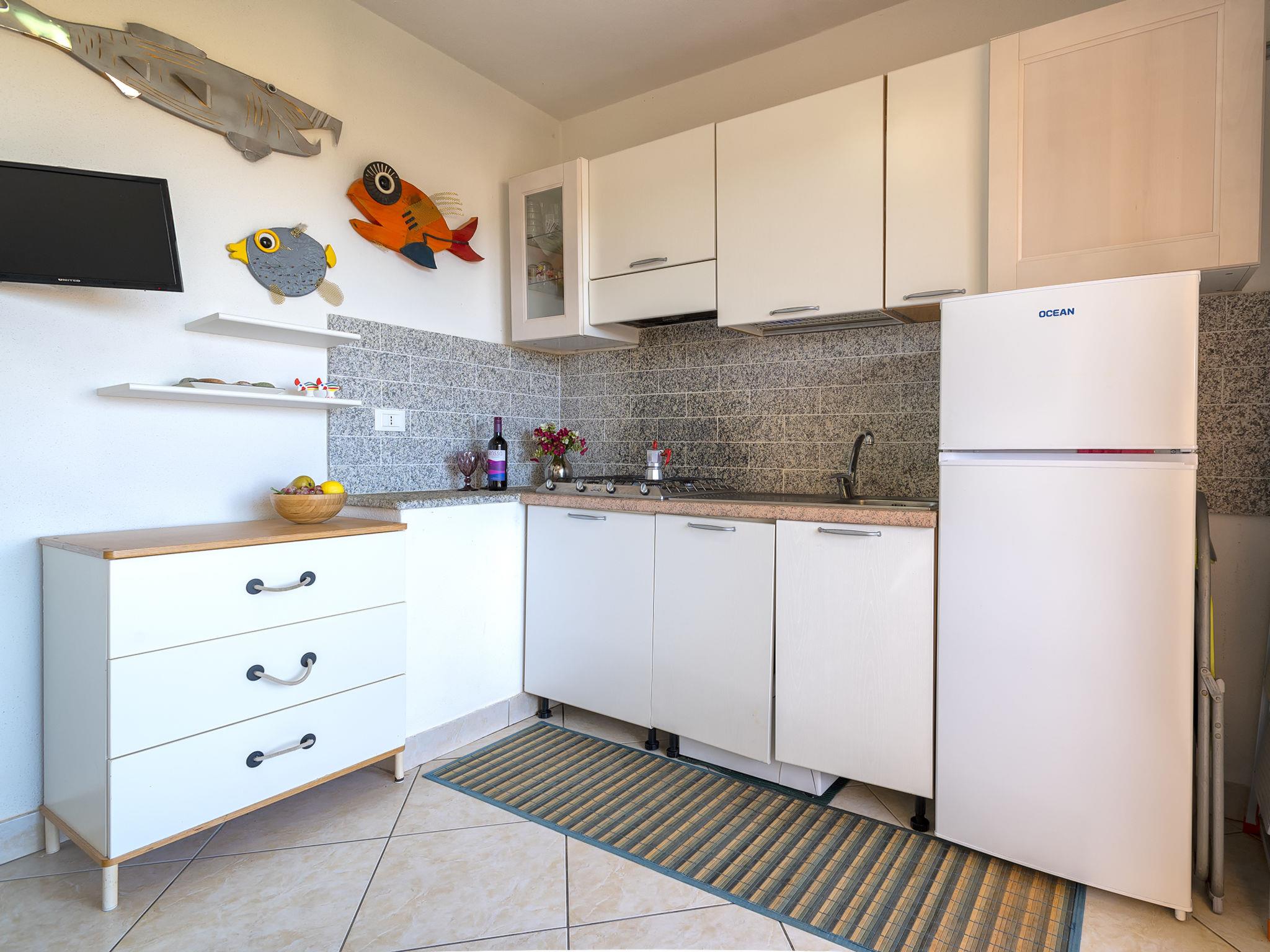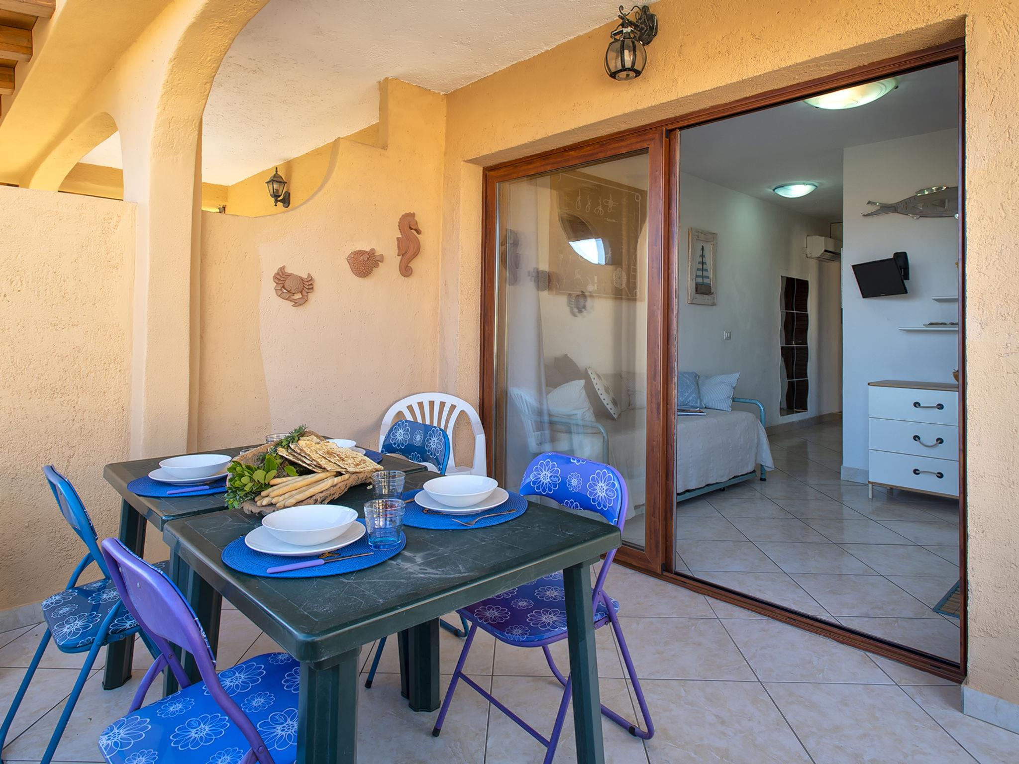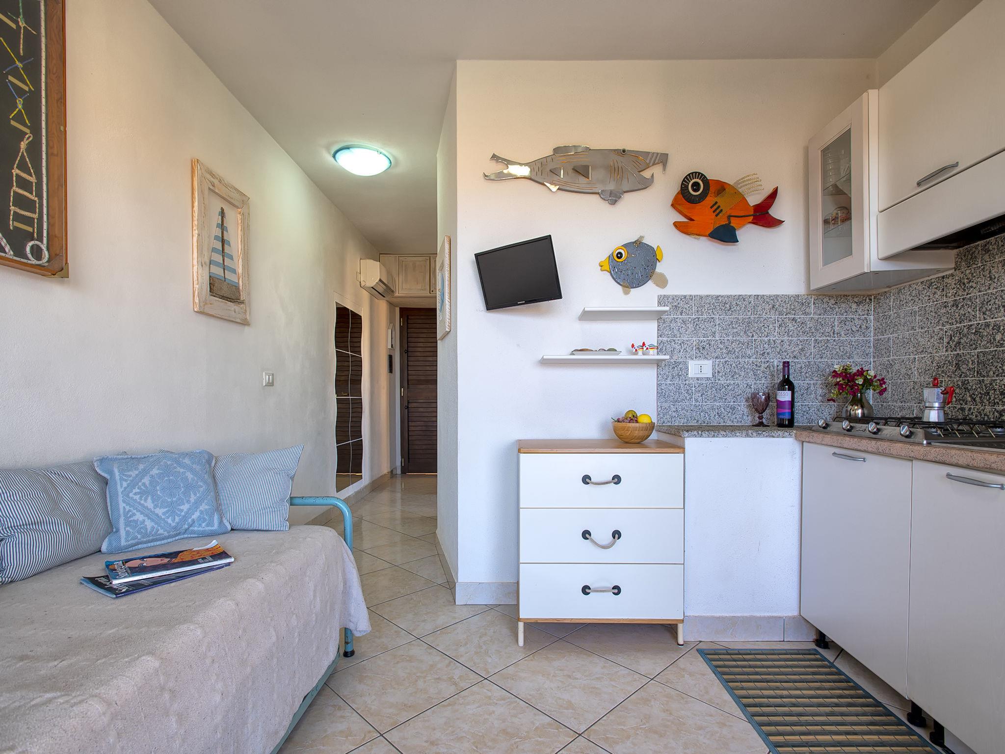 "D4 - F3, Baia de Bahas", 3-room apartment 40 m2 on 1st floor. Comfortable and cosy furnishings: living/dining room with 1 sofabed, TV, air conditioning and forced-air heating. Exit to the terrace. 1 double bedroom with air conditioning and forced-air heating. 1 room with 1 x 2 bunk beds. Kitchenette (4 hot plates, toaster, kettle). Shower/bidet/WC. Air-conditioning, forced-air heating. Heating not available in all rooms. Terrace 10 m2, roofed. Terrace furniture. View of the sea and the resort. Facilities: iron, hair dryer. Maximum 1 pet/ dog allowed. IT090083C2000R7990
