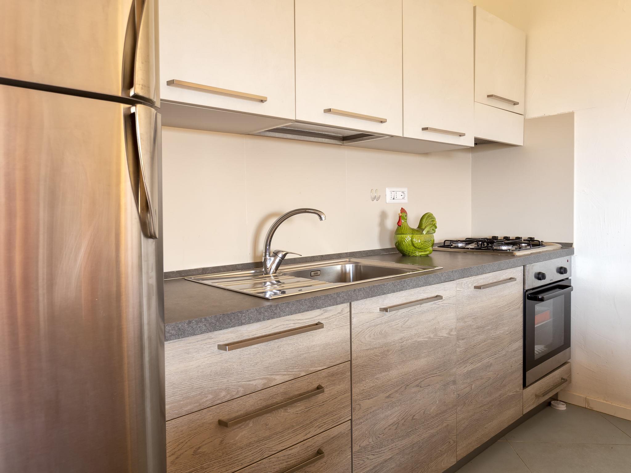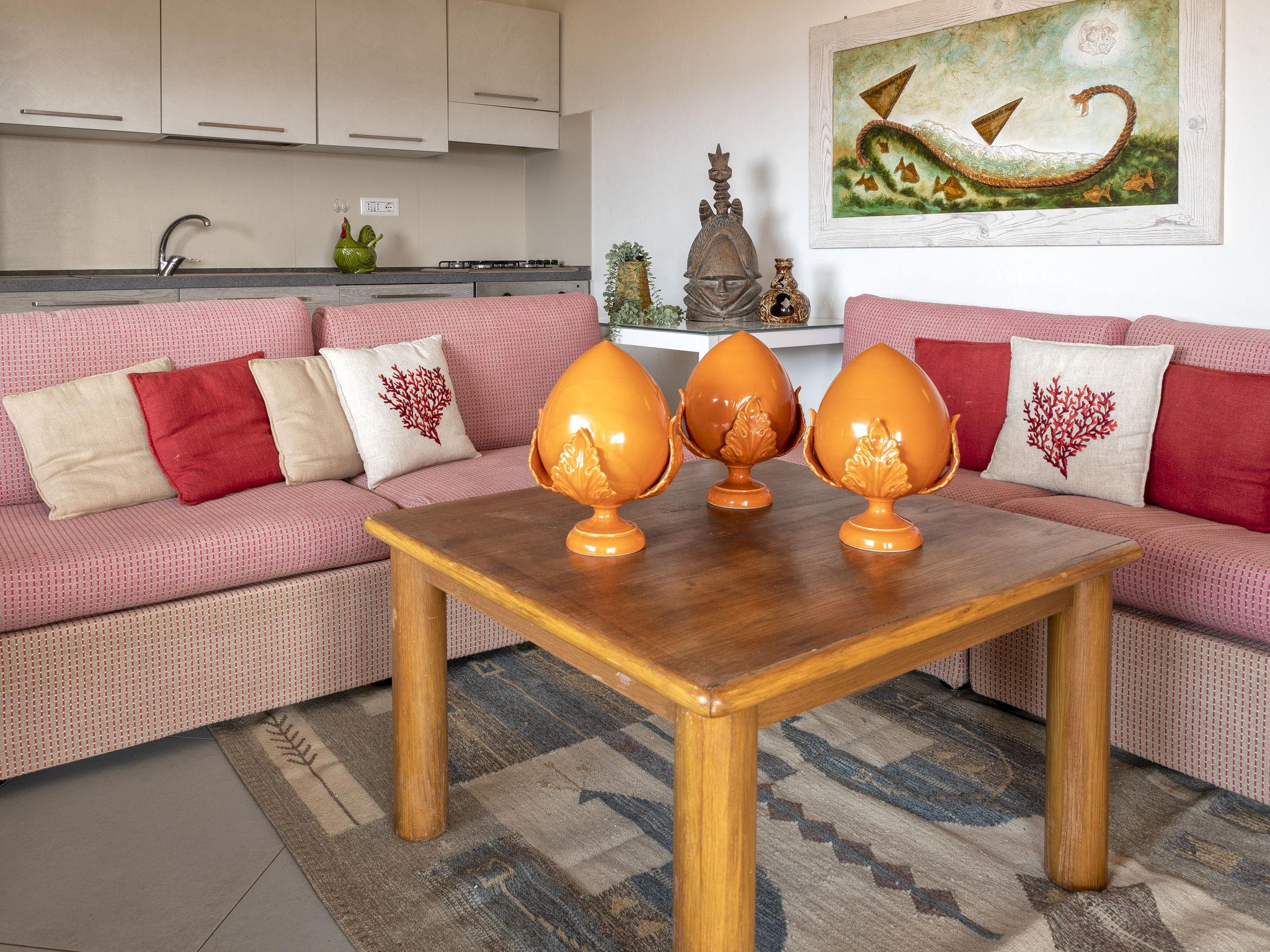 "0/1/M - Marineledda", 4-room apartment 85 m2, on the ground floor. Comfortable and cosy furnishings: living/dining room with dining table and TV. Exit to the terrace. 1 double bedroom with air conditioning and forced-air heating. 1 room with 1 x 2 bunk beds, air conditioning and forced-air heating. 1 small room with 1 bed. Kitchenette (oven, dishwasher, 4 gas rings, toaster, kettle). Exit to the veranda. 2 showers/bidet/WC. Air-conditioning, forced-air heating. Heating not available in all rooms. Terrace roofed. Terrace furniture. Marvellous view of the sea. Facilities: washing machine, iron, hair dryer. Parking. Maximum 1 pet/ dog allowed. Please note: the washing machine for shared use with the other apartments in the building is located in the basement. IT090083B49LW4AY3K