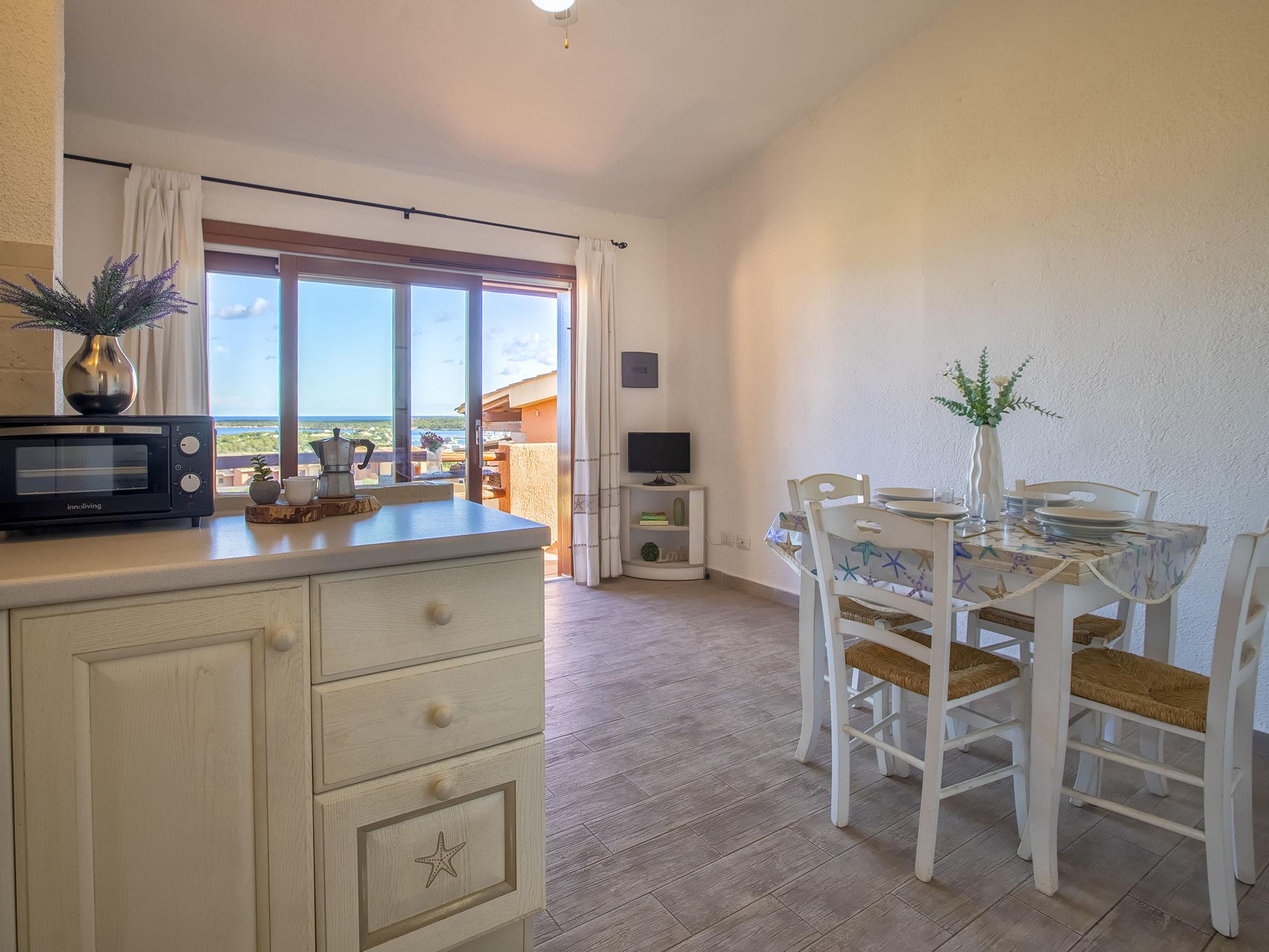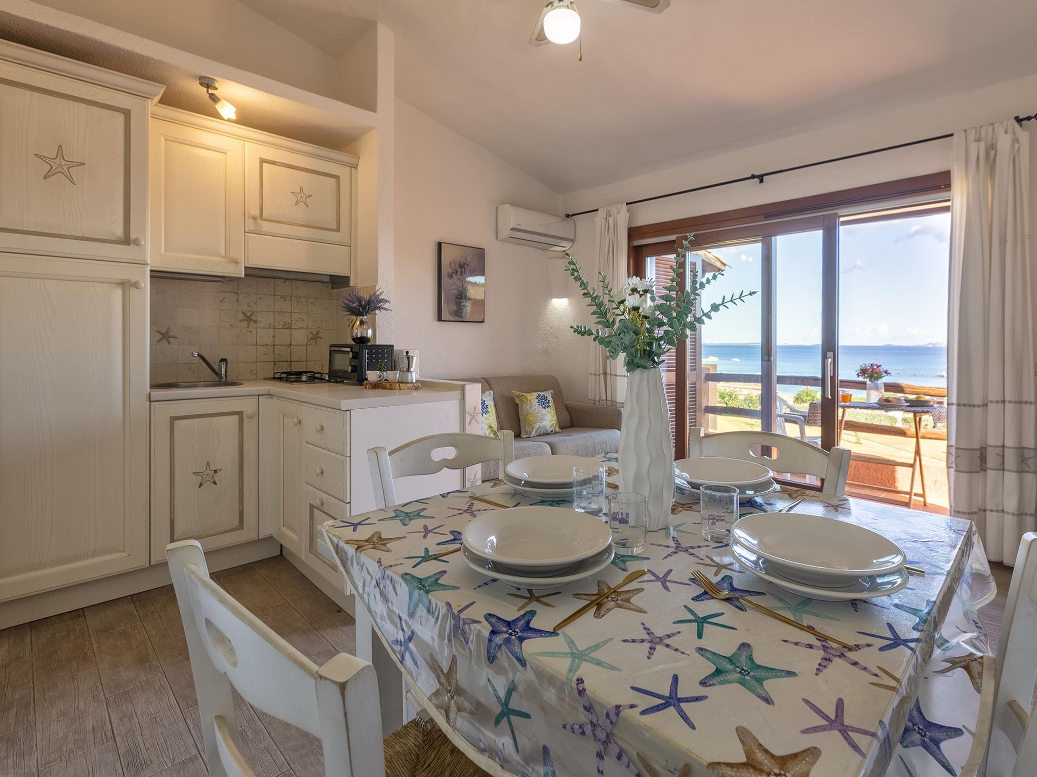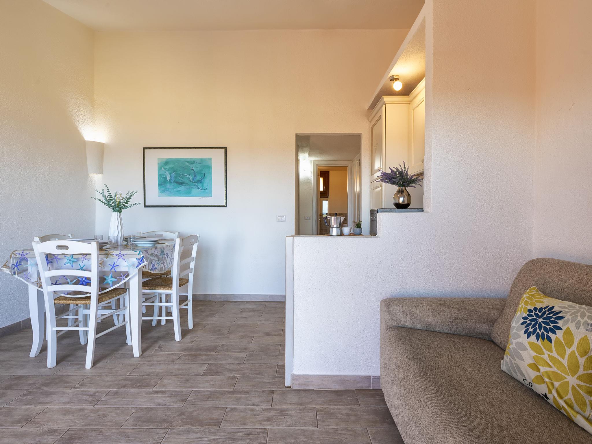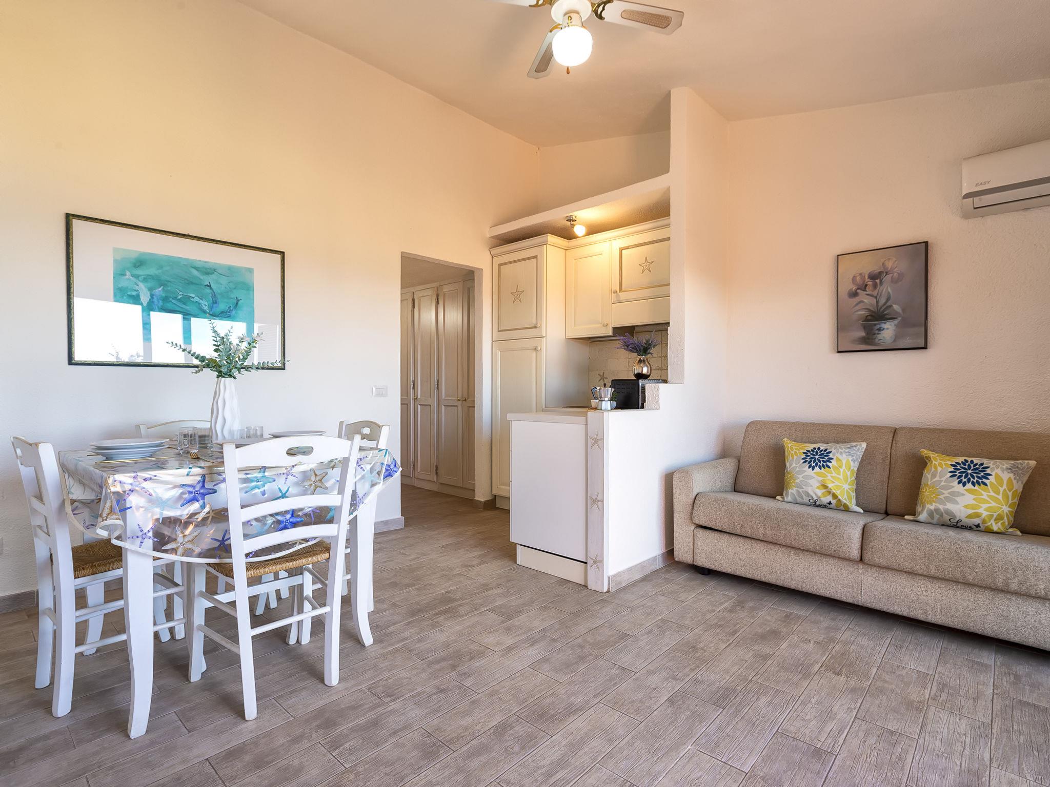 "E/1/1 - Marineledda", 2-room apartment 41 m2 on 1st floor. Comfortable and cosy furnishings: living/dining room with 1 sofabed, dining table, TV, air conditioning and fan. Exit to the balcony. 1 room with 1 bed and 1 double bed. Kitchenette (2 gas rings, toaster, kettle, microwave). Shower/bidet/WC. Air-conditioning, forced-air heating. Heating not available in all rooms. Small balcony 8 m2. Balcony furniture. Beautiful view of the sea and the resort. Facilities: iron, hair dryer. Maximum 1 pet/ dog allowed. IT090083C2000R6463