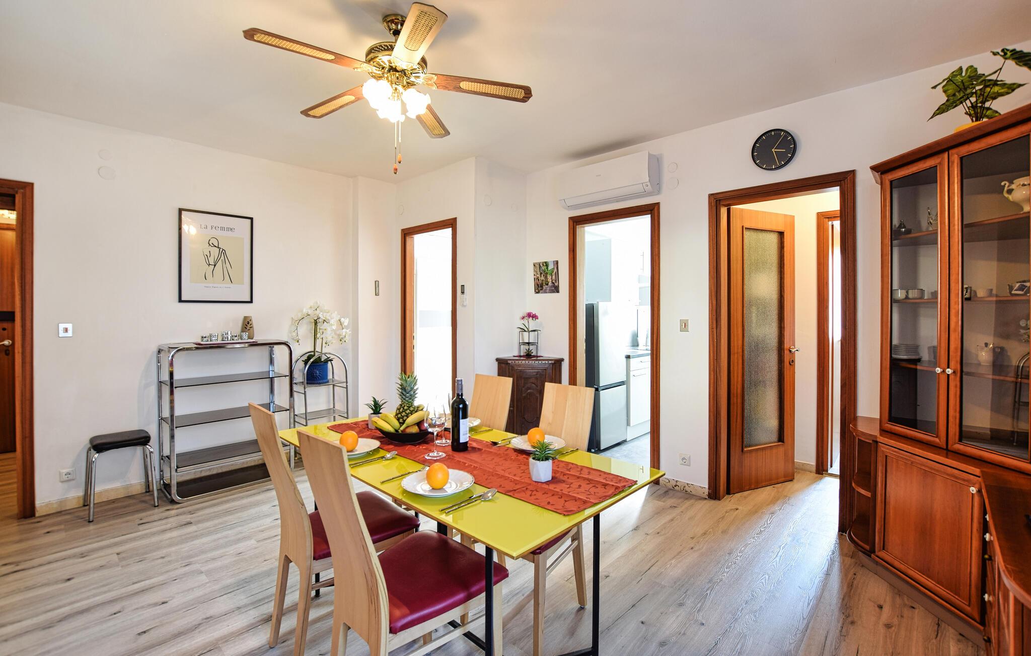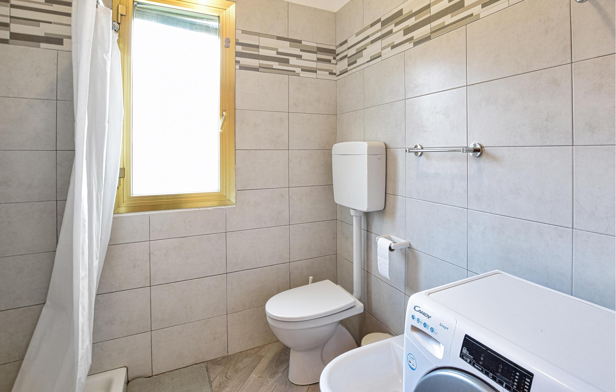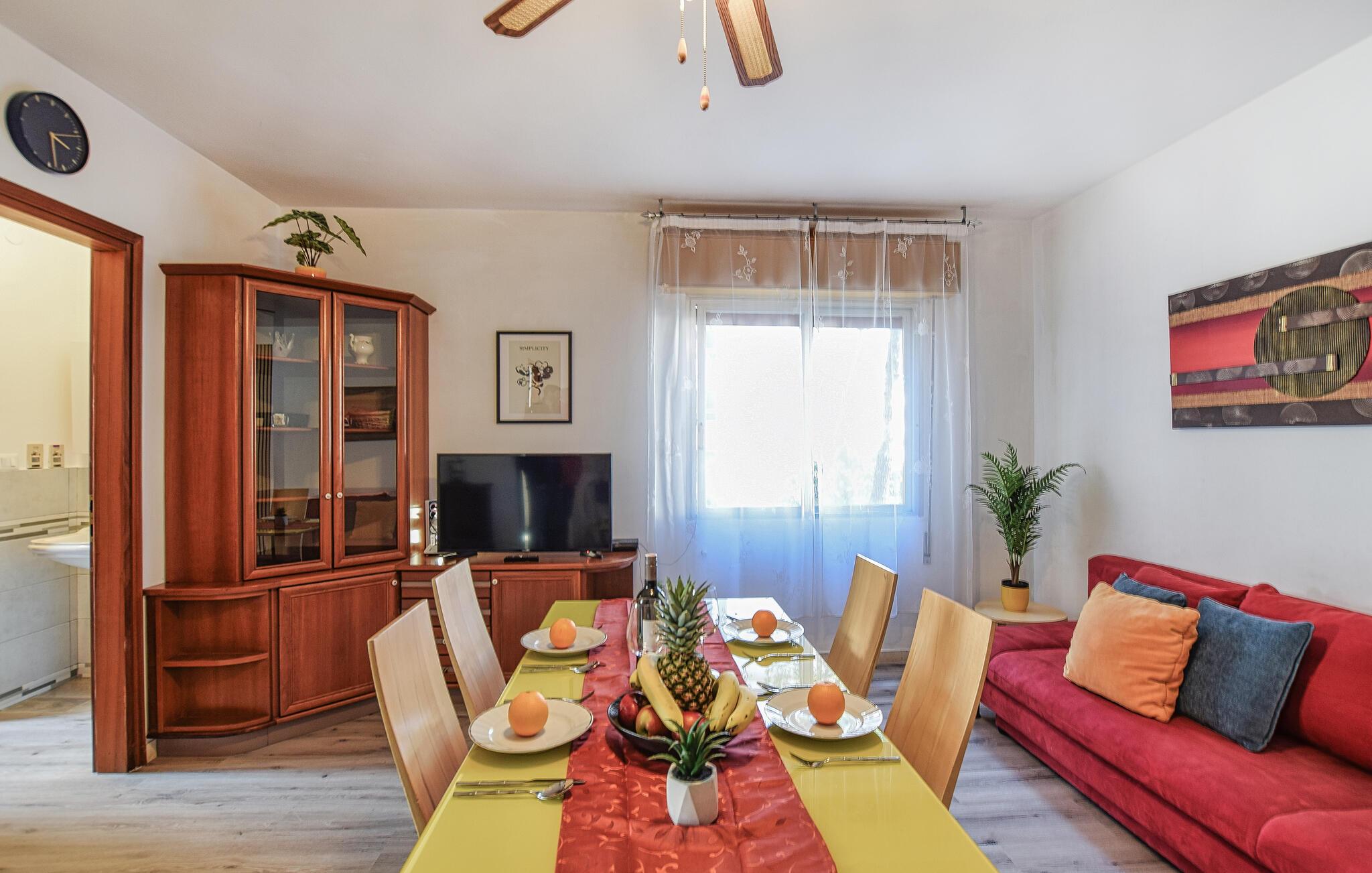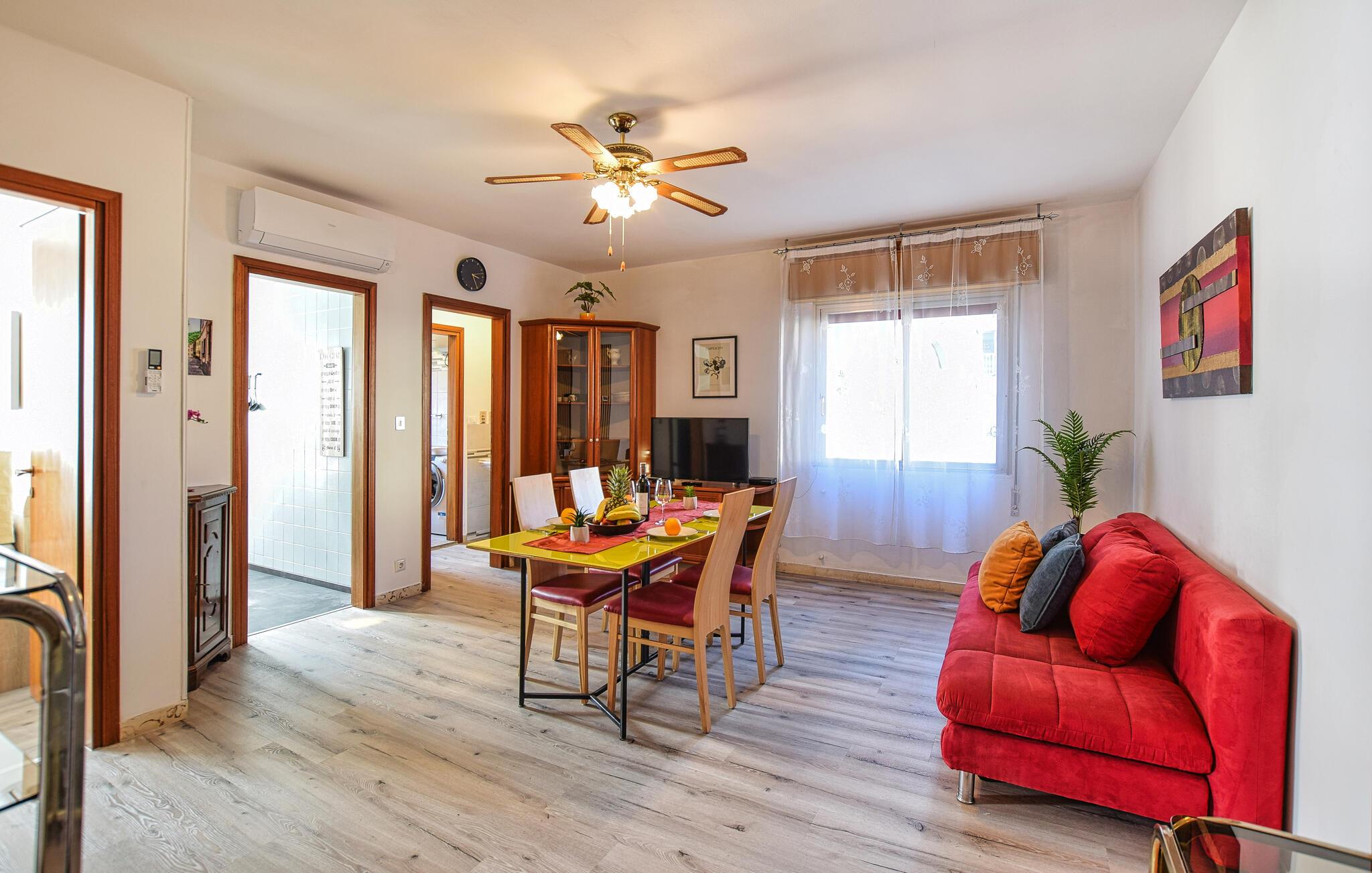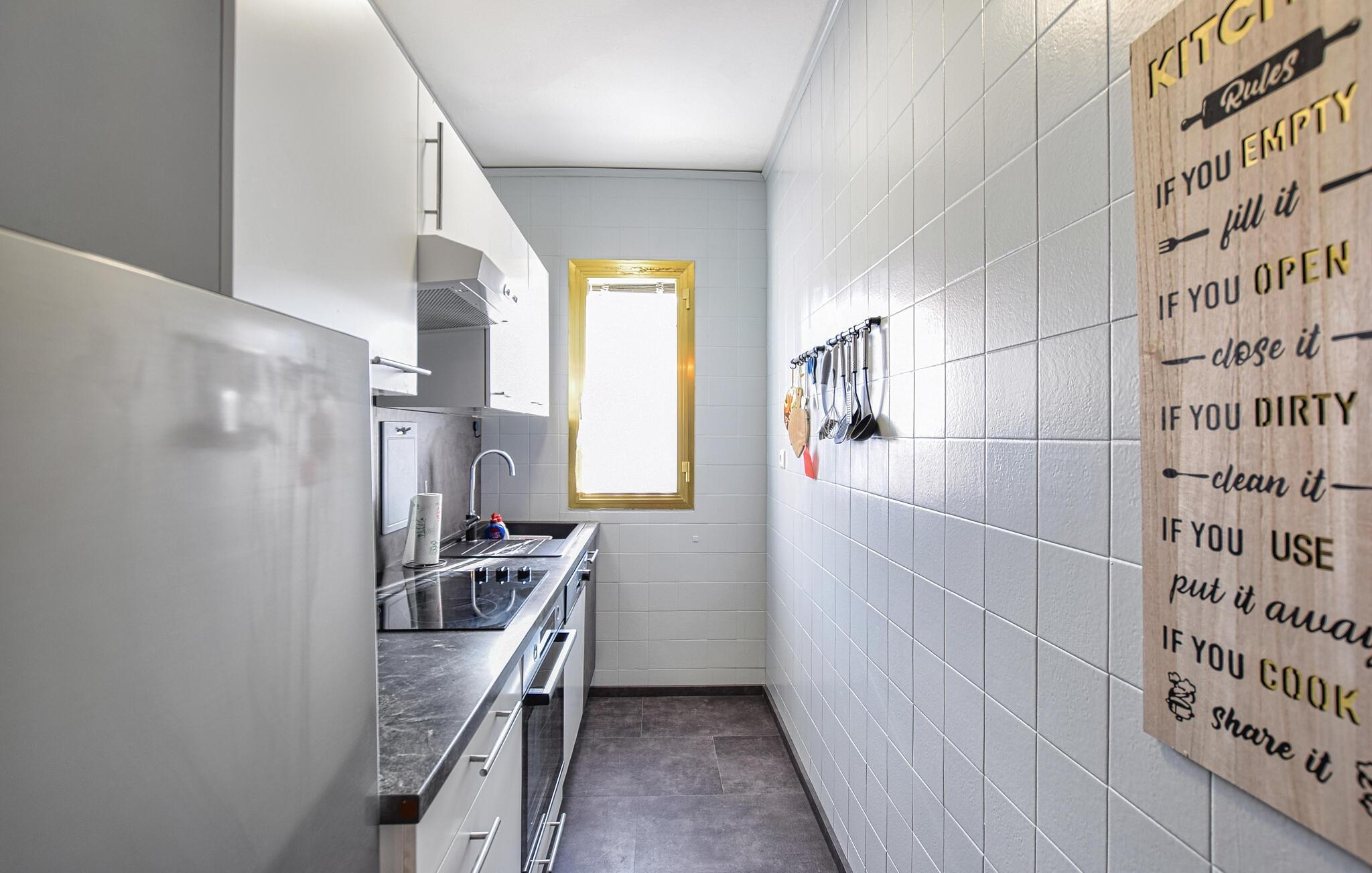 Denne venlige og velindrettede ferielejlighed ligger kun en kort gåtur fra stranden og giver jer et hyggeligt hjem væk fra hjemmet, mens I udforsker de fortryllende omgivelser under en varieret ferie ved Middelhavskysten. Server middelhavspastaretter ved det indbydende spisebord, og planlæg jeres aktiviteter sammen. Nyd den behagelige atmosfære under sociale spilleaftener eller læn jer tilbage i sofaen med en bog.