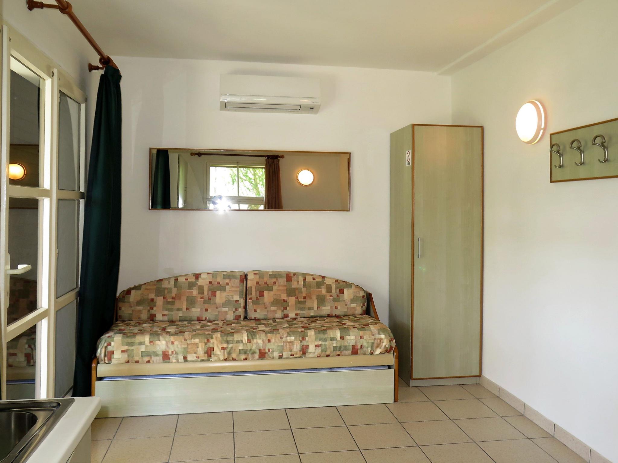 "Classic B", 2-room bungalow 32 m2. Living/sleeping room with 1 double sofabed and dining table. 1 double bedroom. Kitchenette (2 hot plates, kettle, microwave, freezer, electric coffee machine). Shower/WC. Air-conditioning, forced-air heating. Terrace partly roofed. Terrace furniture, deck chairs (2). Facilities: safe, mosquito net, children's high chair, baby cot (extra). Parking (1 car). Please note: non-smoking house. Beach ca. 220-350 m. IT031009B28ZDV3E5N