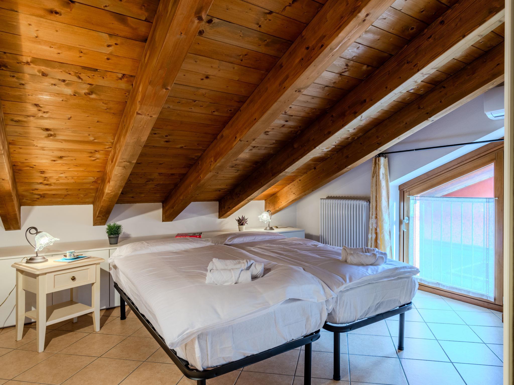 "Cristina", 3-room apartment 70 m2 on 2 levels on 1st floor. Beautiful and modern furnishings: open living/dining room with dining table and TV (flat screen). Exit to the balcony. Open kitchen (oven, dishwasher, 4 induction hot plates, toaster, kettle, microwave, freezer, electric coffee machine). Shower/bidet/WC. Upper floor: 1 double bedroom with sloping ceilings with air conditioning. 1 room with sloping ceilings with 2 beds and air conditioning. Shower/bidet/WC. Gas heating. Heating available only from 15.10. to 15.04. Natural stone floors. Large balcony. Balcony furniture. Marvellous panoramic view of the lake and the mountains. Facilities: washing machine, children's high chair, baby cot for up to 2 year olds. Internet (WiFi, free). Garage. Please note: non-smokers only. Private entrance. IT013249C2E9Z4JQR4