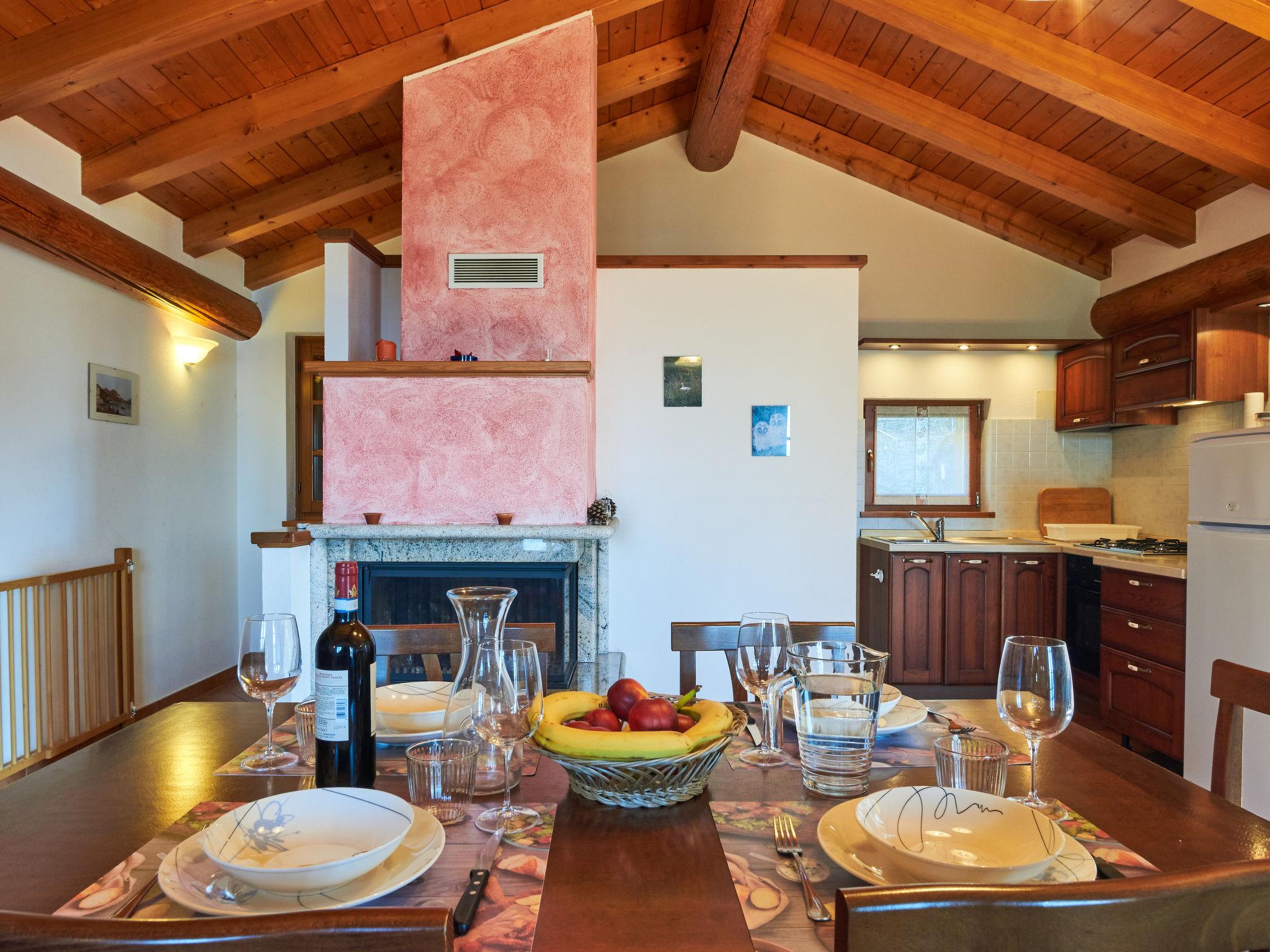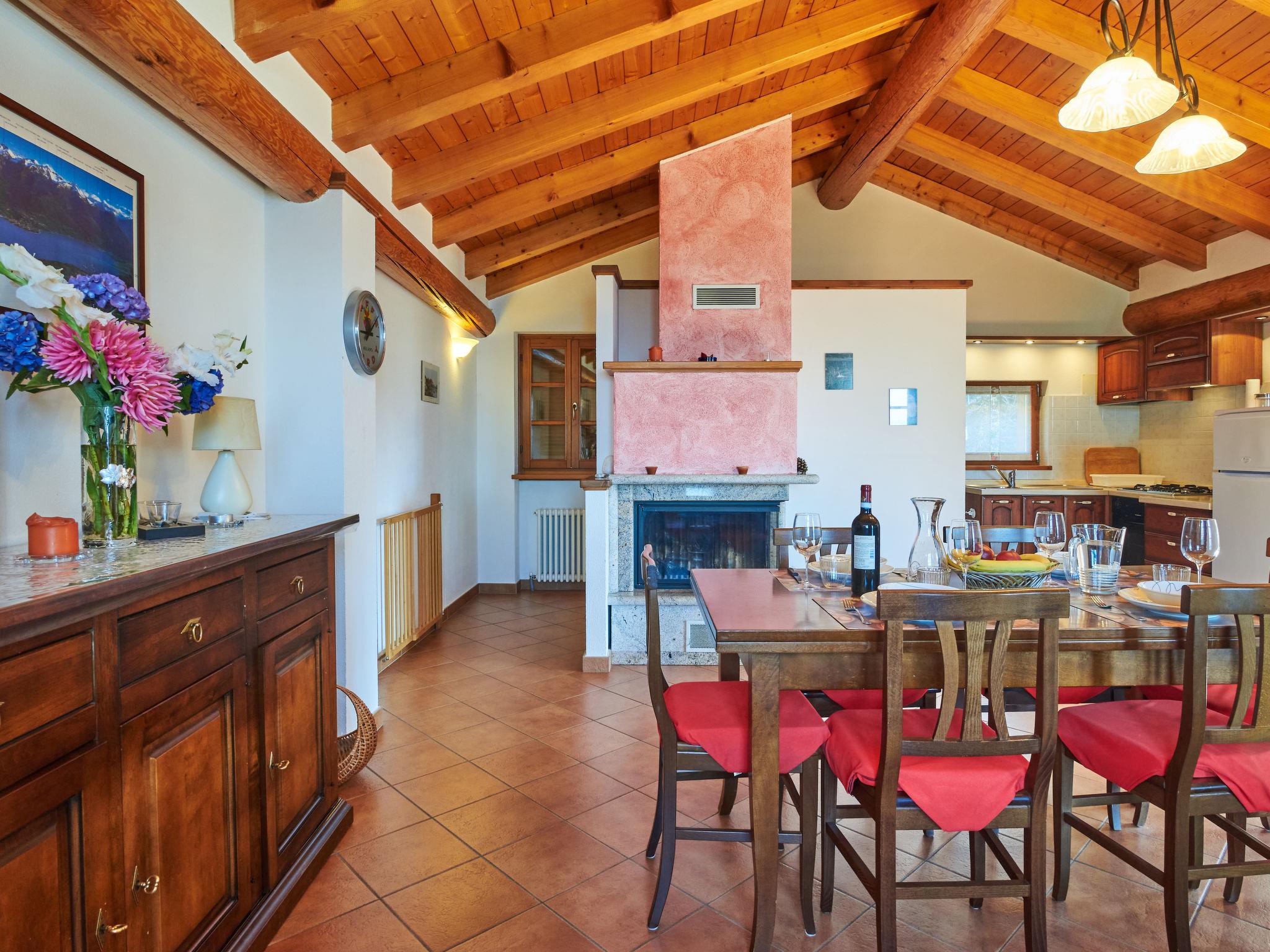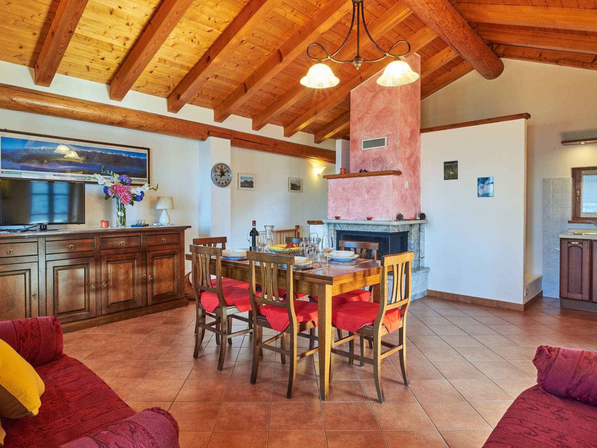 3-room house 65 m2 on 2 levels, south facing position. Beautiful and rustic furnishings: 1 room with 1 french bed (160 cm). 1 room with 1 x 2 bunk beds. Shower/WC. Upper floor: (steep stair) large living/dining room with sloping ceilings with open-hearth fireplace, dining table and satellite TV. Exit to the balcony. Kitchenette (oven, 4 gas rings, toaster, kettle, freezer, electric coffee machine). Gas heating. Balcony, east facing position and south facing position, patio, lawn. Balcony furniture, barbecue (portable). Very beautiful panoramic view of the lake and the mountains. Facilities: washing machine, iron, children's high chair, baby cot. Internet (WiFi, free). Maximum 2 pets/ dogs allowed. IT013178C2FIJLQOZ6