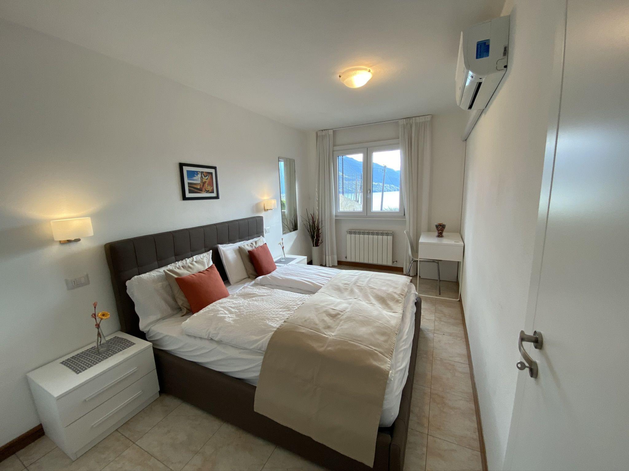 "Viola", 3-room apartment 45 m2, on the upper ground floor, south-east facing position. Modern furnishings: living/dining room with dining table, satellite TV and air conditioning. Exit to the balcony. 1 room with 1 french bed (160 cm), air conditioning. 1 room with 2 beds. Open kitchen (oven, dishwasher, 4 gas rings, toaster, kettle, microwave, electric coffee machine). Shower/WC. Gas heating. Balcony, south facing position. Balcony furniture, deck chairs (2). Marvellous view of the lake. Facilities: washing machine, iron, children's high chair, baby cot. Internet (WiFi, free). Parking (1 car). Please note: maximum 1 pet/ dog allowed. Private entrance. IT013249C2FPZHQV9R