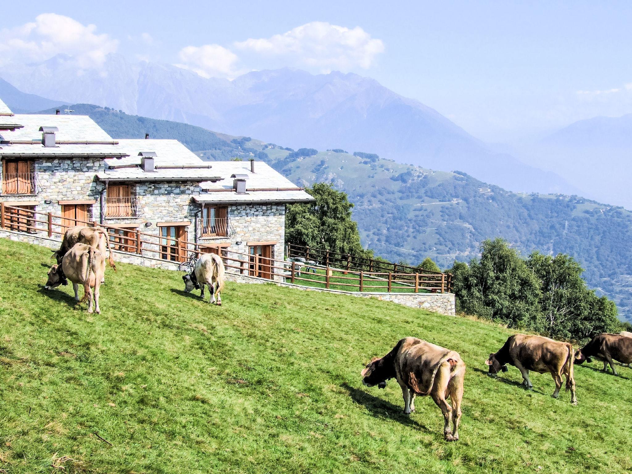 Rustic terraced house "Le Baite di Bodone", 1'150 m a.s.l., built in 2009. 4 houses in the residence. In the hamlet Bodone 12 km from the centre of Gravedona, 60 km from the centre of Como, 64 km from the centre of Lugano, in an elevated position on a slope, 12 km from the lake, in a cul-de-sac, in the countryside. Private: property 20 m2 (fenced), garden with lawn. Patio, garden furniture. Heating available only from 15.Oct. - 30.Apr.. 6 km long narrow motor access (100 m via unmade road, mountain road). Stepped path to the house. Parking on the premises, public parking 150 m. Shop 6 km, supermarket 13 km, bus stop 5.6 km, railway station "Como" 60 km, pebble beach "Lido di Gravedona" 12 km, outdoor swimming pool 12 km. Marina 12 km, golf course (18 hole) 39 km. Nearby attractions: Chiesa Santa Maria del Tiglio-Gravedona, Palazzo Gallio-Gravedona, Museo della Barca Lariana-Pianello, Menaggio, Bellagio, Villa Carlotta-Tremezzo. Well-known ski regions can easily be reached: Madesimo, Livigno, Sankt Moritz, Santa Caterina. Well-known lakes can easily be reached: Lago di Mezzola. Hiking paths: Sasso Pelo, Livo-Crotto Dangri.