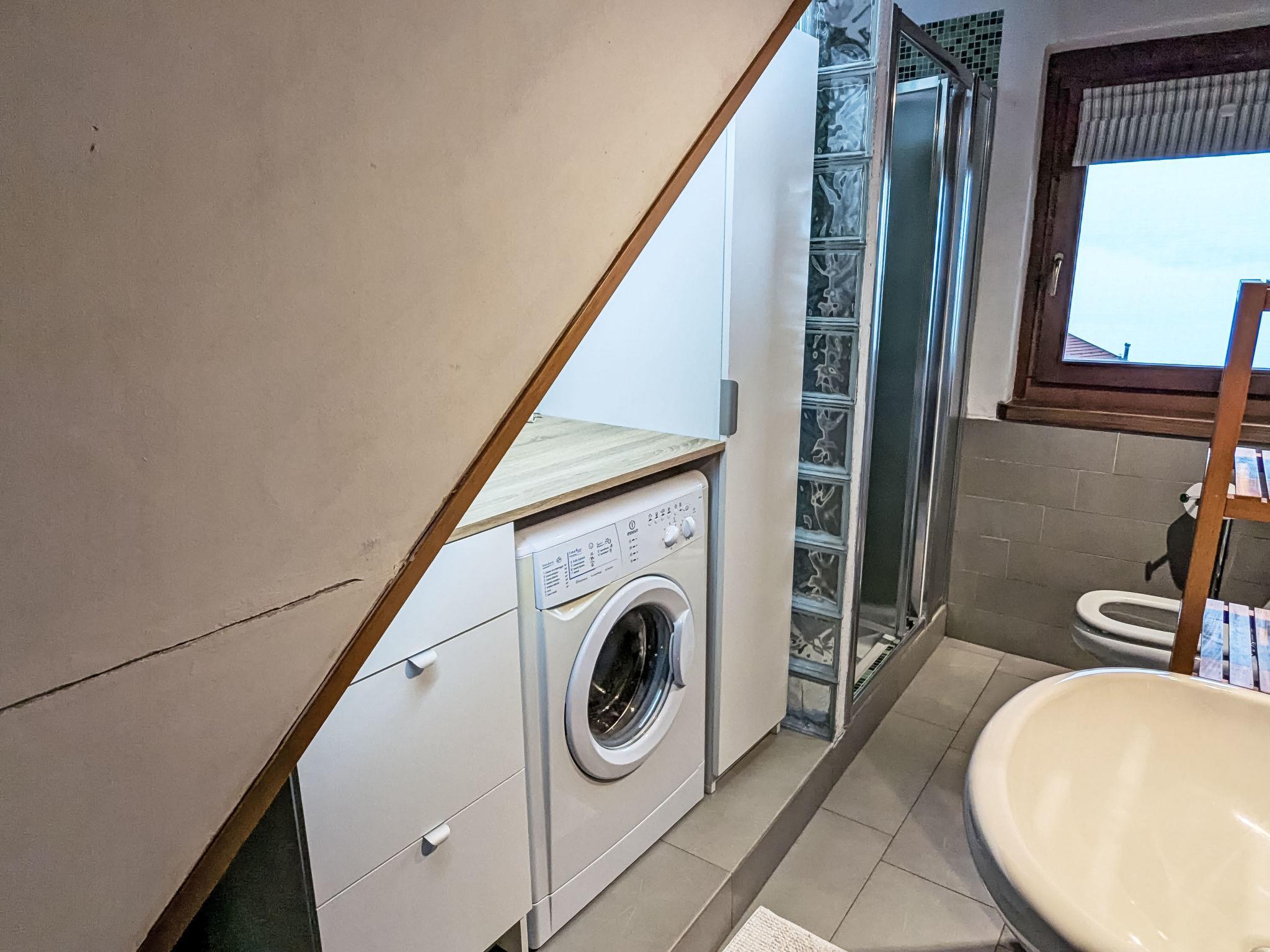 3-room house 70 m2 on 2 levels. Beautiful and tasteful furnishings: open living/dining room with Scandinavian wood stove (only for decoration), dining table and TV (flat screen). Exit to the garden, to the balcony, to the terrace. Open gallery. Open kitchen (oven, dishwasher, Gas stove, 4 gas rings, toaster, kettle, microwave, freezer). On the lower ground floor: 1 room with 1 x 2 bunk beds, 1 double bed. Exit to the garden. Shower/bidet/WC. Gas heating. Heating available only from 15.10. to 30.04. Natural stone floors. Small balcony, large terrace, garden. Terrace furniture, deck chairs (2). Marvellous panoramic view of the lake, the mountains and the resort. Facilities: washing machine, children's high chair, hair dryer. Internet (WiFi, free). Please note: non-smoking house, no parking. Maximum 1 pet/ dog allowed. Smoke alarm, fire extinguisher. IT013249C2G3DY7FHC