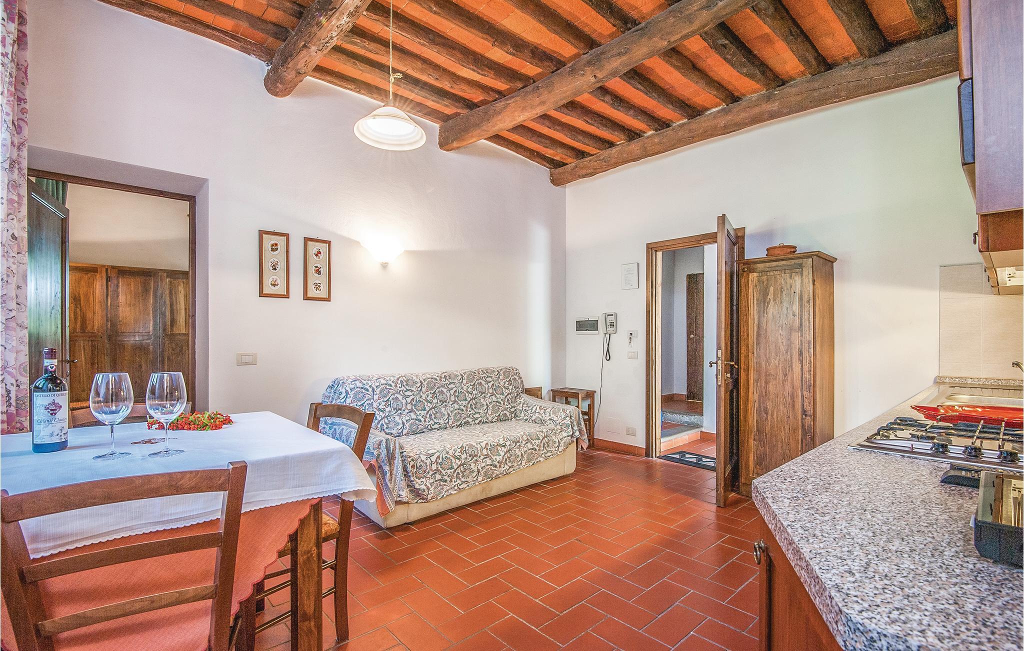 Disse seks dejlige lejligheder i et skønt bondehus, som er blevet renoveret med bevaring af den oprindelige landstil, ligger omgivet af vinmarker og olivenlunde. Her fremstilles der egne vine samt olie, snaps og brandy, som gæsterne kan prøvesmage og købe på stedet. I nærheden ligger det vidunderlige slot Querceto, som er en af de største seværdigheder i Chianti-området. Slottets vinkælder kan ses efter aftale. Fælles pool, der deles af i alt 12 lejligheder. Barneseng på forespørgsel. Tilkørslen er en velholdt naturvej. I nærheden af grunden løber hovedvejen mellem Greve in Chianti og Figline Valdarno. Efter aftale er der mulighed for morgenmadsservice, vaskeservice, vinsmagning, rundture, ekstra rengøring og skift af sengetøj i løbet af ugen samt brug af internetpoint. Disse serviceydelser betales på stedet. Ankomst kun kl. 15-18. Se også ITC138-143.