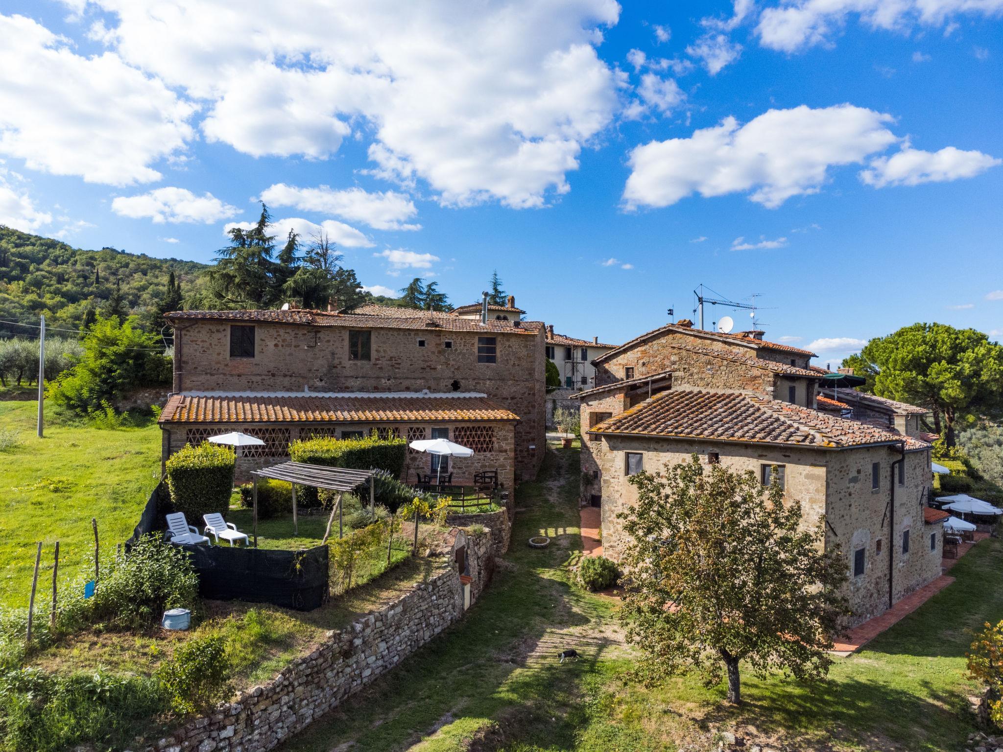 Large, rustic on a vinyard country house "Fattoria l'Ottavo", 400 m a.s.l., from the 18th century, renovated, surrounded by meadows and vineyards. 3 houses in the residence. 9 apartments in the residence. In the district of Lucolena in Chianti 12 km from the centre of Greve in Chianti, 13 m from the centre of Figline Valdarno, in a secluded, sunny, elevated position, in the countryside. For shared use: property 40 ha, natural garden, meadow, swimming pool fenced (8 x 4 m, seasonal availability: 01.May. - 15.Oct. pool opening hours: 08:00-20:00). Outdoor shower, terrace, garden furniture, barbecue, pool maintenance by the owner/gardener. In the house: reception, restaurant, breakfast room, WiFi, washing machine (for shared use). Linen change weekly. Breakfast possible on request (extra). 200 m long narrow motor access to the grounds. Parking on the premises. Shop 700 m, grocery 700 m, supermarket 12 km, shopping centre 13 km, restaurant 1 km, bar 700 m, bakery 700 m, bicycle rental 12 km, bus stop "Lucolena" 700 m, railway station "Figline Valdarno" 13 km, sandy beach "Calambrone" 110 km, indoor swimming pool 13 km, lake Trasimeno 114 km. Golf course (18 hole) 20 km, tennis 12 km, riding stable 2 km, walking paths from the house 100 m. Nearby attractions: Firenze 37 km, Siena 50 km, Arezzo 54 km, San Gimignano 65 km. Please note: car recommended. Reception open 10:00-17:00 hrs. Suitable for families, baby equipment (included). Suitable for events. Local sale of farm products. Please note: the owner lives on the same property. All houses/apartments are individually designed/furnished.