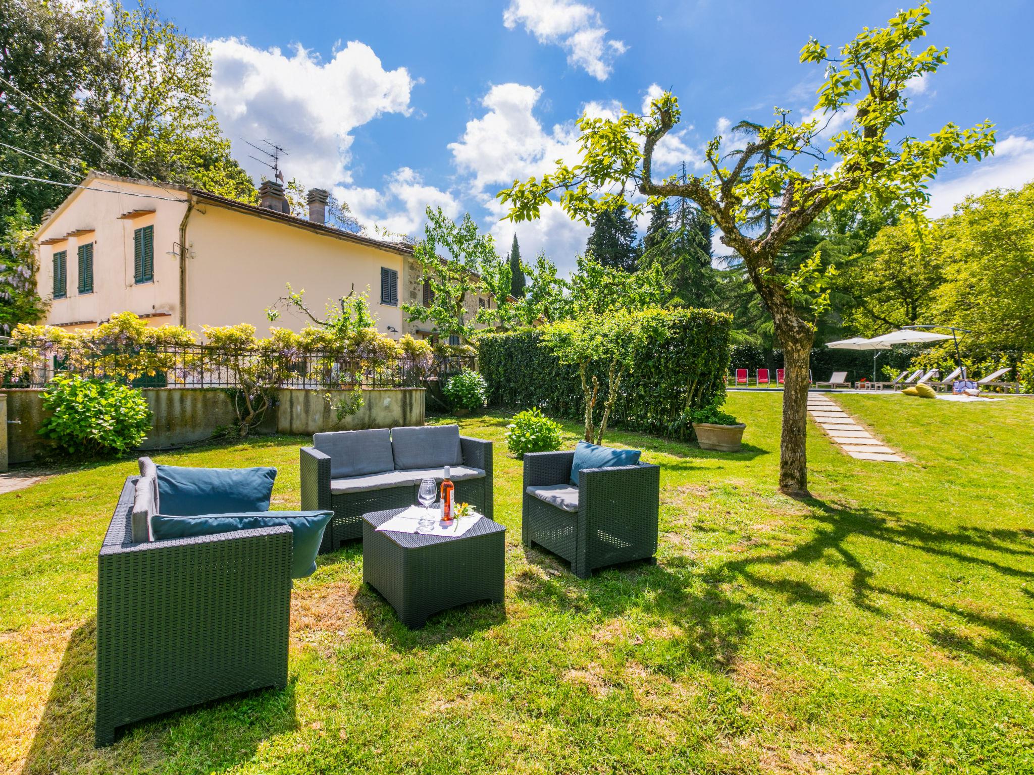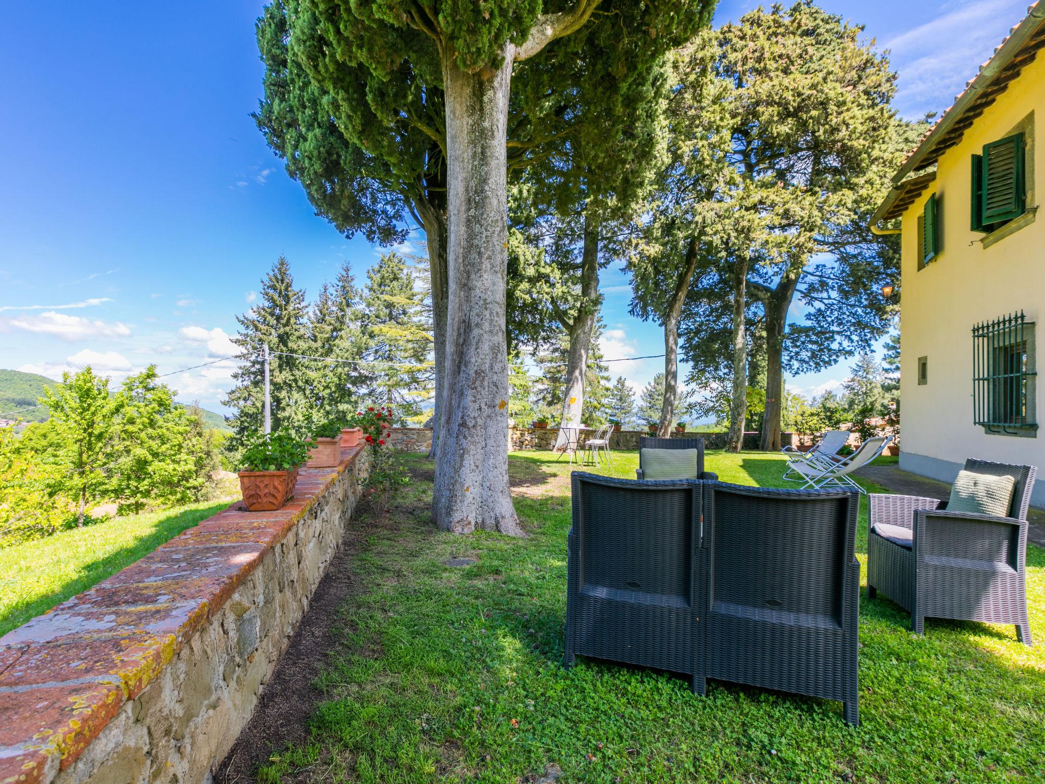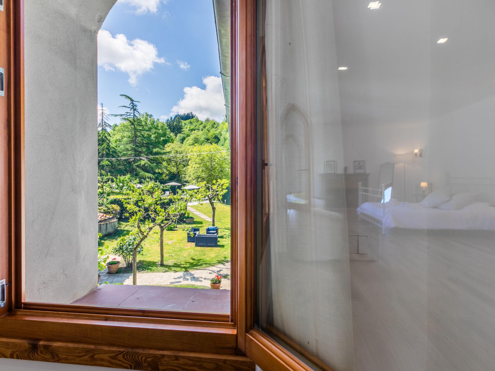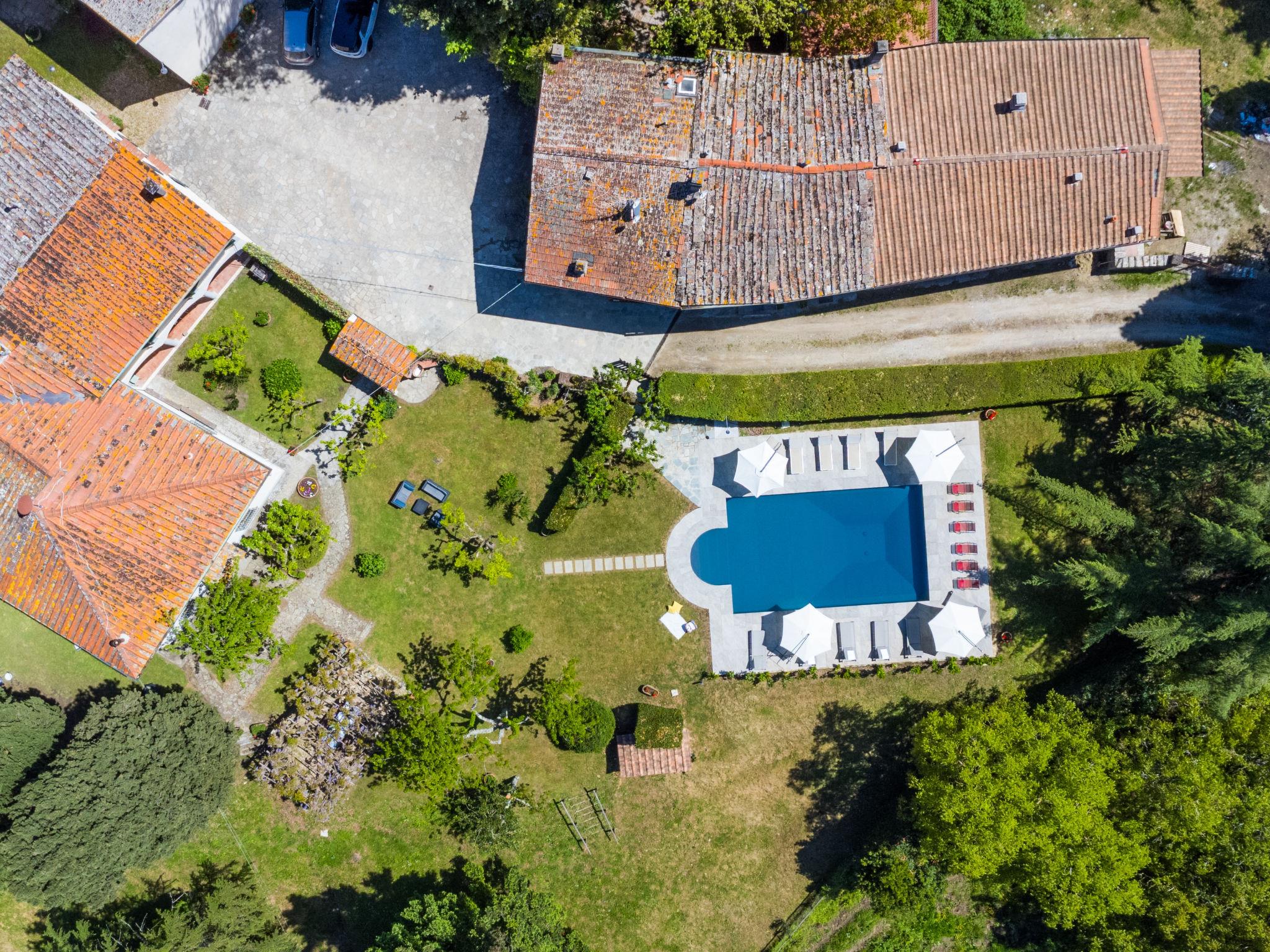 "Villa Castagnoli", 7-room villa 250 m2 on 2 levels. Comfortable and wooden furniture furnishings: living/dining room with open-hearth fireplace, dining table and satellite TV (flat screen). Exit to the garden. Open kitchen (oven, dishwasher, 5 gas rings, freezer, electric coffee machine) with open-hearth fireplace. Sep. WC. Upper floor: 3 rooms, each room with 1 french bed (160 cm). 2 rooms, each room with 2 beds (80 cm). Bath/WC, 2 showers/WC. Gas heating. Parquet floors. Terrace roofed. View of the valley and the garden. Facilities: washing machine, iron, baby cot for up to 2 year olds. Internet (WiFi, free). Parking (4 cars) at the house. Please note: non-smokers only. Maximum 1 pet/ dog allowed. No mandatory extra charges to be paid on-site except for local tax. IT048021B49F5V68X8