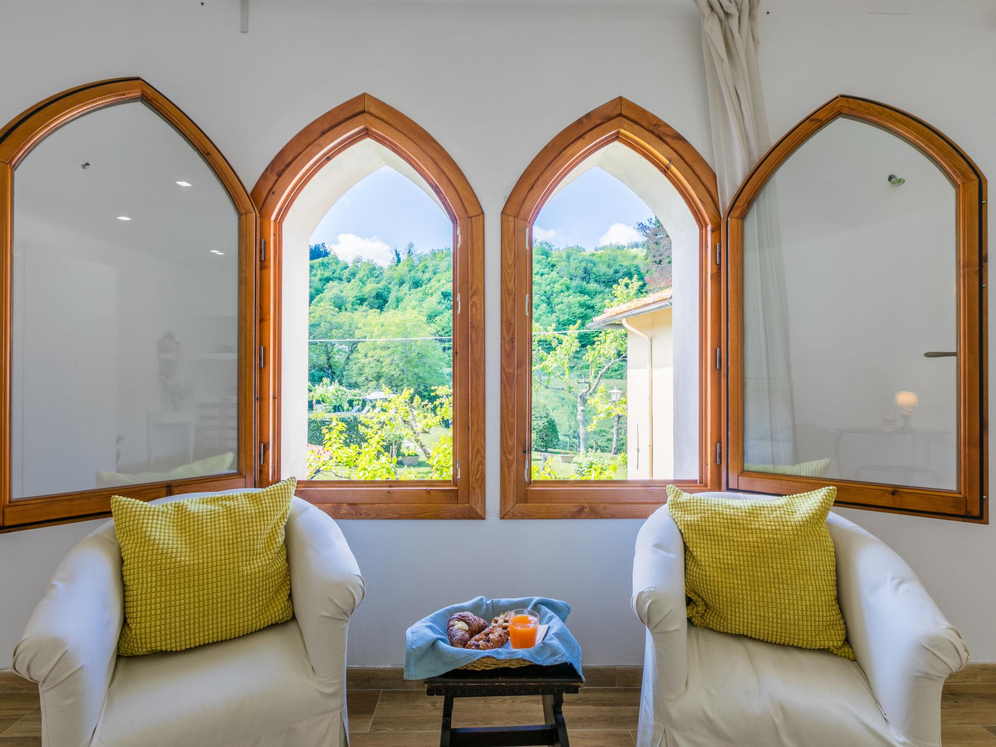 "Borgo Castagnoli", 14-room house 470 m2 on 2 levels. Wooden furniture furnishings: living/dining room with open-hearth fireplace, dining table, kitchen corner and satellite TV. Living/dining room with dining table and satellite TV. 1 room with 1 french bed (160 cm). 1 room with 2 beds (80 cm). Open kitchen (oven, dishwasher, 5 gas rings, freezer, electric coffee machine) with small dining table, open-hearth fireplace. Shower/WC, sep. WC. Upper floor: living/dining room with open-hearth fireplace, dining table and satellite TV. 5 rooms, each room with 1 french bed (160 cm). 3 rooms, each room with 2 beds (80 cm). Open kitchen (oven, dishwasher, 4 gas rings, freezer, electric coffee machine). Bath/WC, 4 showers/WC. Gas heating. Parquet floors. Terrace roofed. Facilities: washing machine, iron, baby cot for up to 2 year olds. Internet (WiFi, free). Parking (5 cars) at the house. Maximum 1 pet/ dog allowed. No internal connecting door between the separated properties. The pool mentioned in the description is for private use. When booking this property you make a reservation for the whole house. Facilities for shared use are then for private use. No mandatory extra charges to be paid on-site except for local tax. IT048021B49F5V68X8