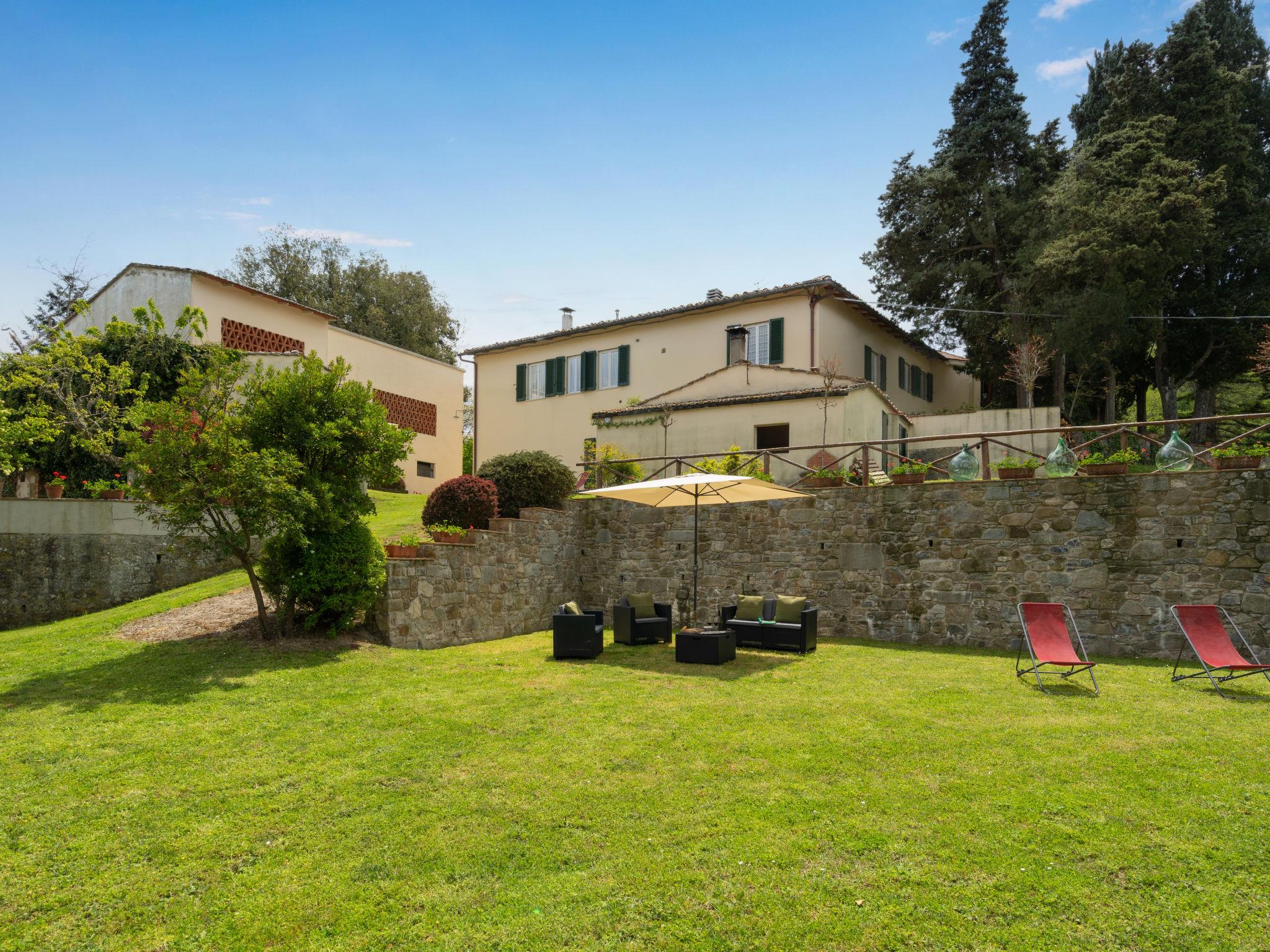 Manor house "Castagnoli", 650 m a.s.l., surrounded by fields and vineyards. 12 km from the centre of Greve in Chianti, 2 km from the centre of Lucolena, in a secluded position, in the countryside. Private: property 40 ha, park, beautiful, well-kept garden (not fenced) with flowers and trees, lawn for sunbathing, swimming pool (10 x 5 m, depth 100 - 200 cm, seasonal availability: 10.May. - 10.Oct.). Outdoor shower, terrace, barbecue, pool maintenance by the owner/gardener. 500 m long bumpy motor access (via unmade road). Parking on the premises. Shop 2 km, supermarket 10 km, bus stop 3 km, sandy beach "Marina di Cecina" 85 km. Golf course (18 hole) 20 km, walking paths from the house 50 m. Nearby attractions: Siena 30 km, Volterra 44 km, Firenze 50 km, Arezzo 75 km. Please note: car recommended. Baby equipment (included). Groups of teenagers on request only.