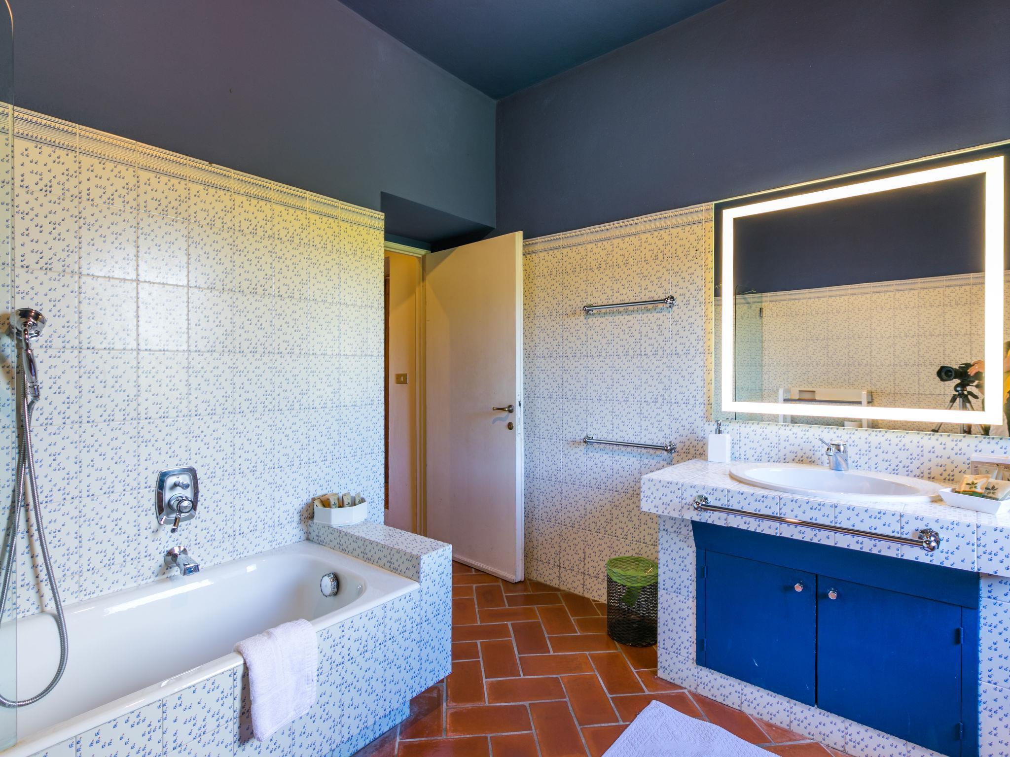 8-room house 330 m2 on 3 levels. Spacious, stylish and romantic furnishings: entrance hall. Upper floor: open living room with open-hearth fireplace. Exit to the terrace. Large dining room with open-hearth fireplace. Small dining room. 3 double bedrooms, each room with air conditioning. 1 room with 2 beds (90 cm), air conditioning. Kitchen (oven, dishwasher, Gas stove, 5 gas rings, toaster, kettle, microwave, electric coffee machine, Capsules for coffee machine (Nespresso) extra) with open-hearth fireplace. Exit to the terrace. 2 baths/bidet/WC, shower/bidet/WC. 2nd upper floor: living room with panoramic window with TV (flat screen). Bath/shower/bidet/WC. Gas heating. Natural stone floors. Comfortable furnishings in the country house style. Large terrace 50 m2, terrace. Terrace furniture, deck chairs, box-room. Very beautiful panoramic view of the countryside. Facilities: washing machine, iron, mosquito net, children's high chair, baby cot for up to 2 year olds, hair dryer. Internet (WiFi, free). Parking at the house. Please note: non-smokers only. Private entrance. IT048021C2RIVRJI6R