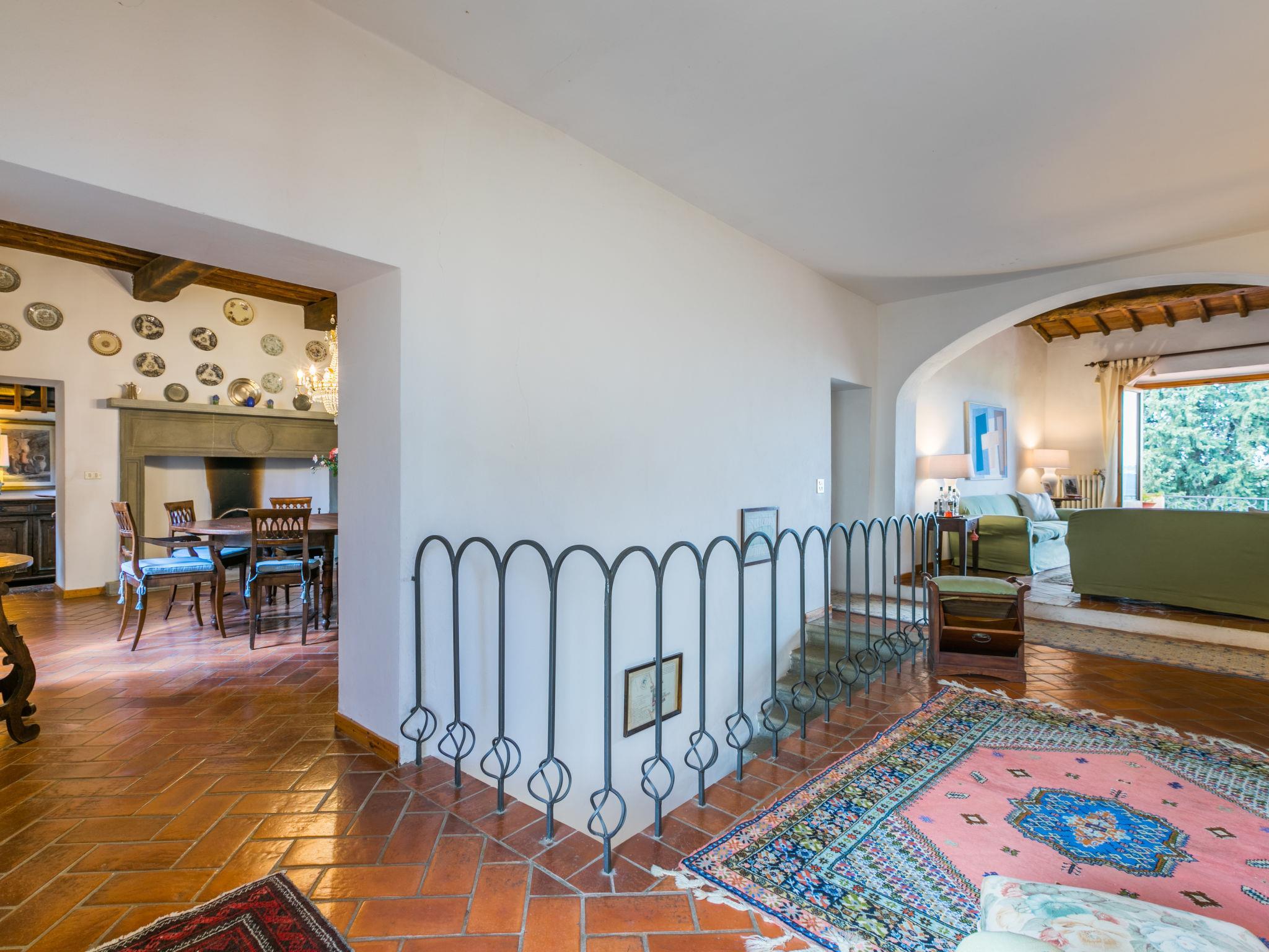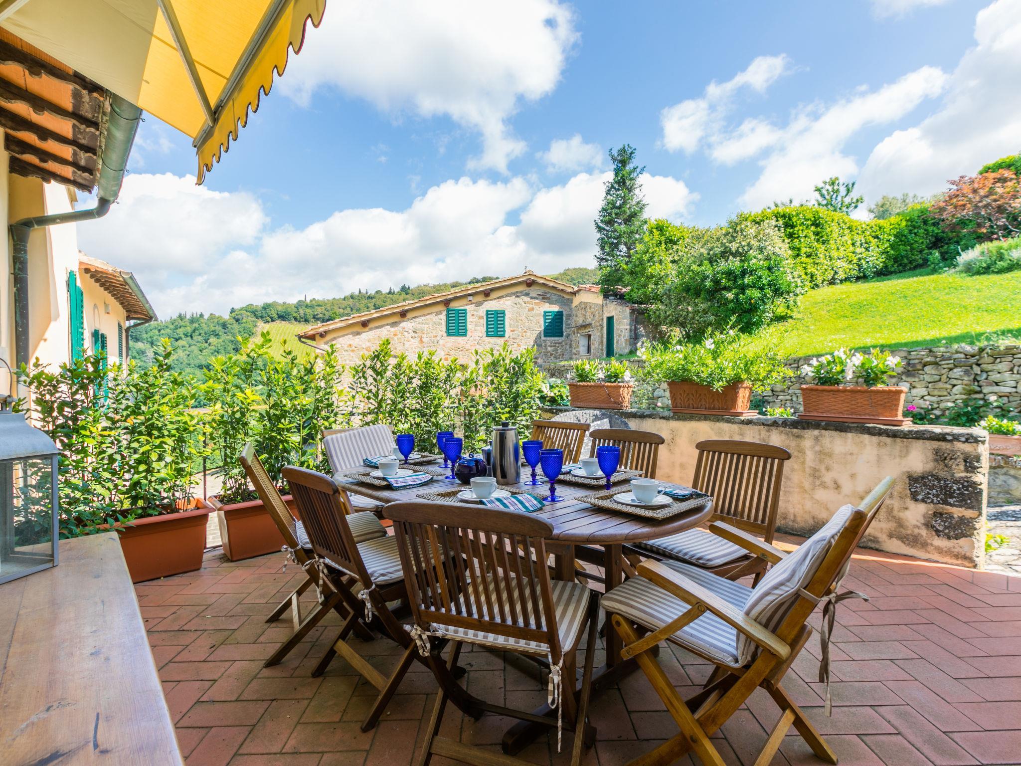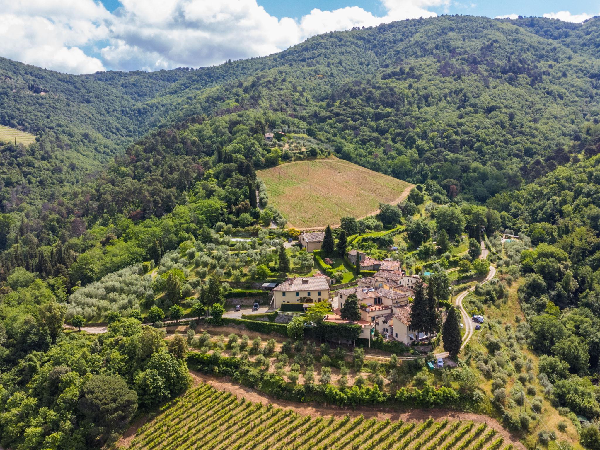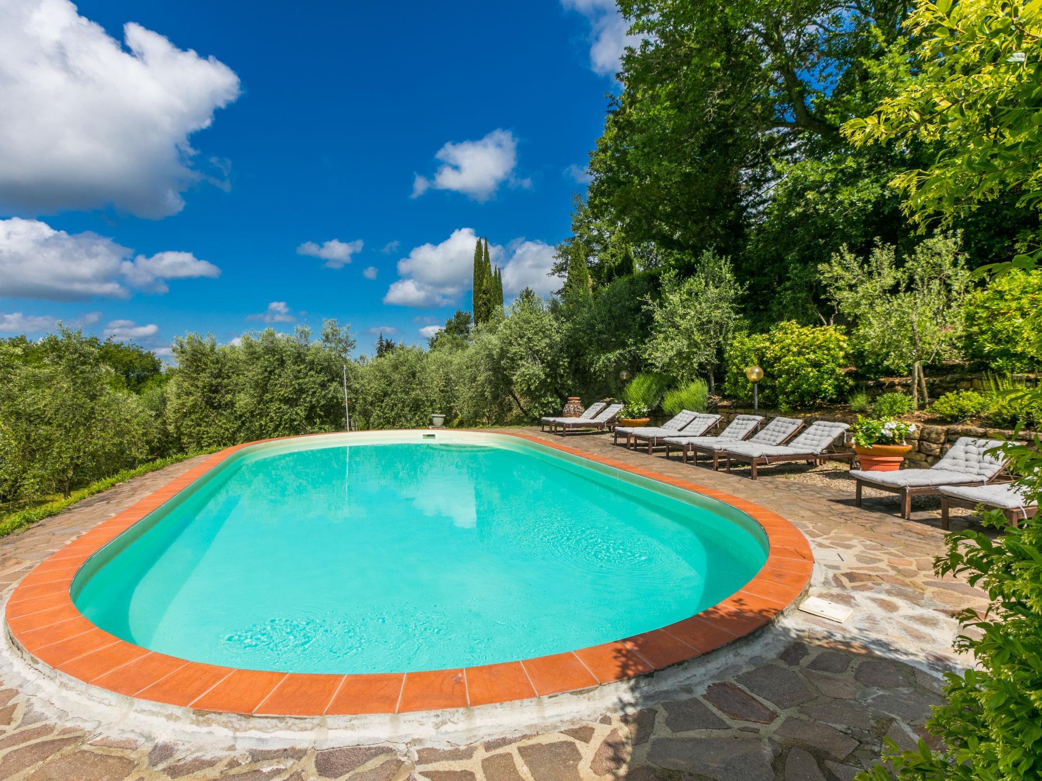 Very comfortable 2-family house "Ortensia", 500 m a.s.l., 3 storeys, from the 16th century, surrounded by trees and vineyards. 2 houses in the residence. 5 km from the centre of Greve in Chianti, in a secluded, quiet, elevated position, 200 m from the edge of the forest, in the countryside. For shared use: swimming pool fenced (6 x 12 m, seasonal availability: 15.May. - 30.Sep. pool opening hours: 80:00-20:00). Shower/WC in the pool area, patio, terrace, barbecue, pool maintenance by the owner/gardener. In the house: washing machine. Linen change (suppl. charge extra). Towel change (suppl. charge extra). Room cleaning daily on request (extra). Cook on request (extra). Storeroom available. 2200 km long bumpy motor access. In Winter: please take snow chains. Parking at the house. Shop 5 km, grocery 5 km, supermarket 5 km, restaurant 5 km, bus stop "Greve in Chianti" 4 km. Golf course (18 hole) 25 km, tennis 5 km. Nearby attractions: Panzano in Chianti 7 km, Castellina in Chianti 20 km, Firenze 40 km, San Gimignano 46 km, Siena 46 km. Please note: car recommended. Baby equipment (included). The owner does not accept any youth groups.