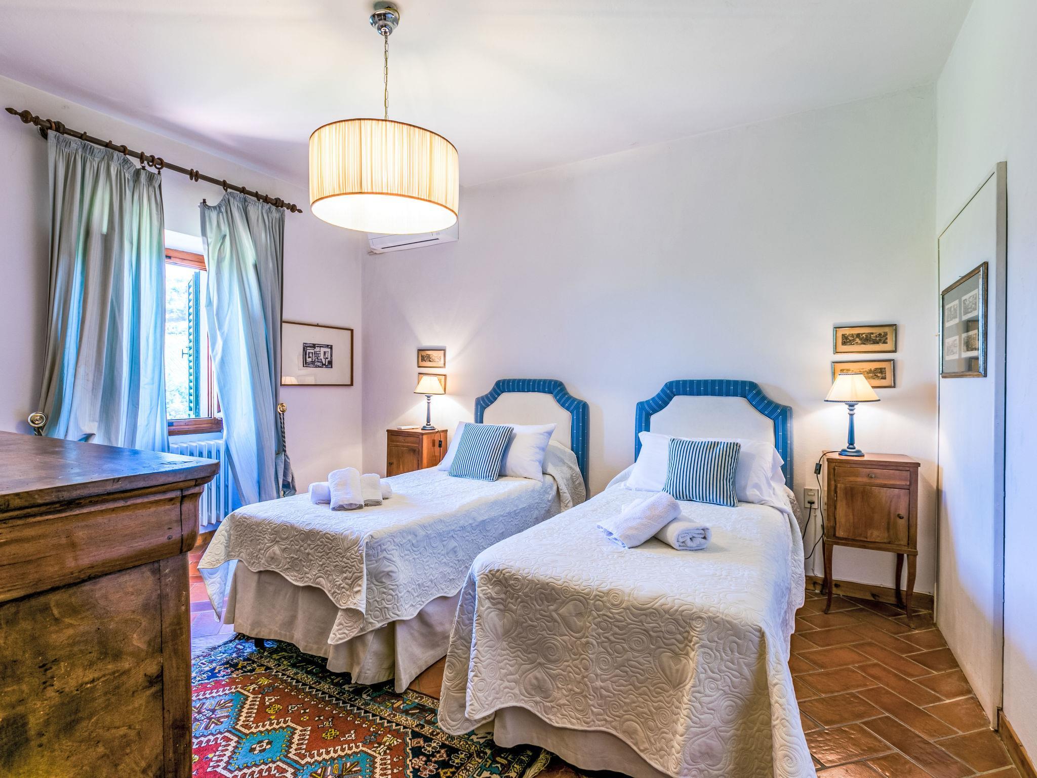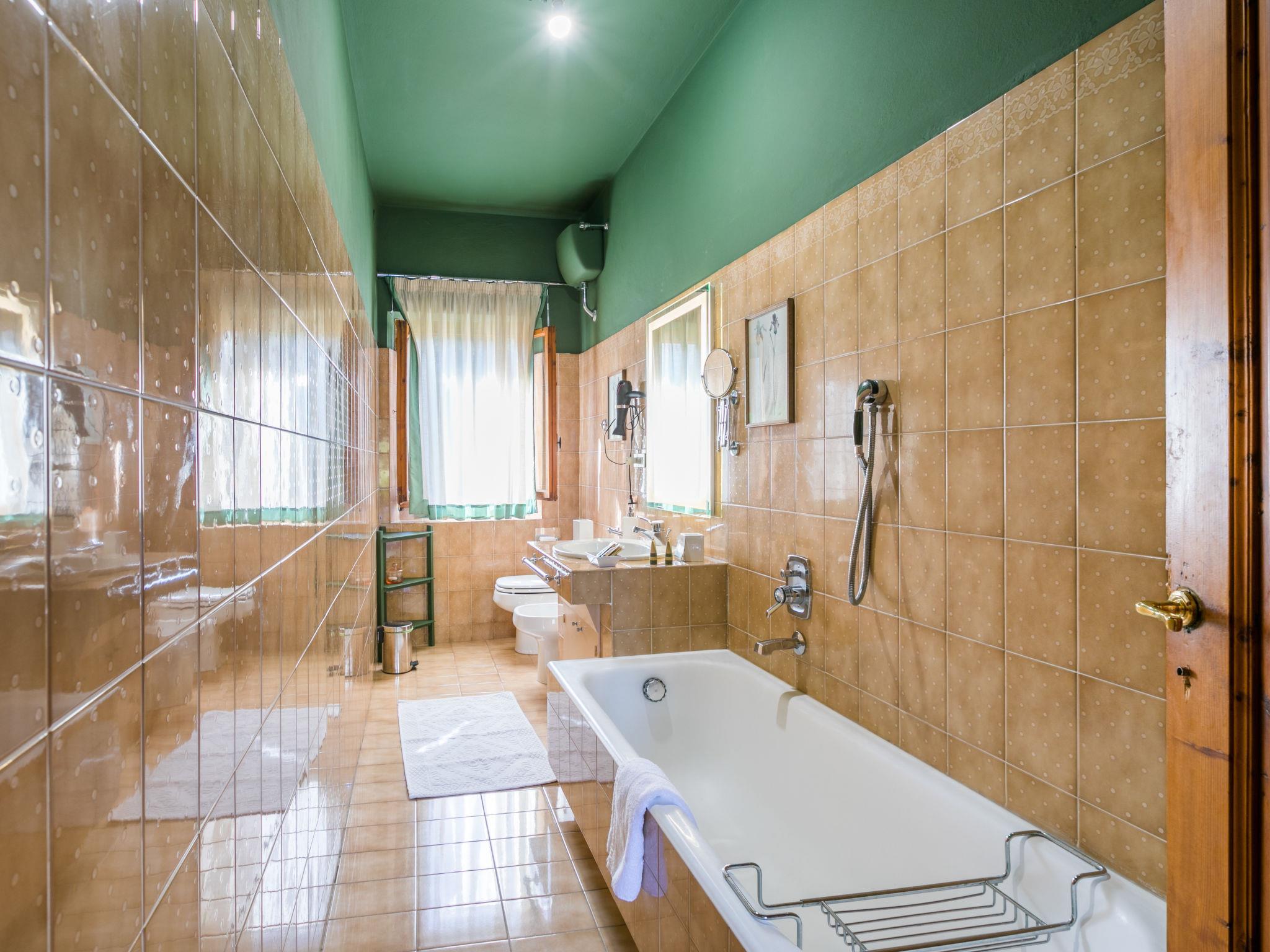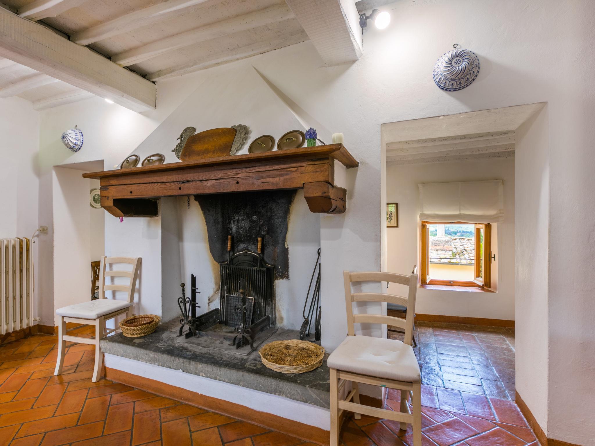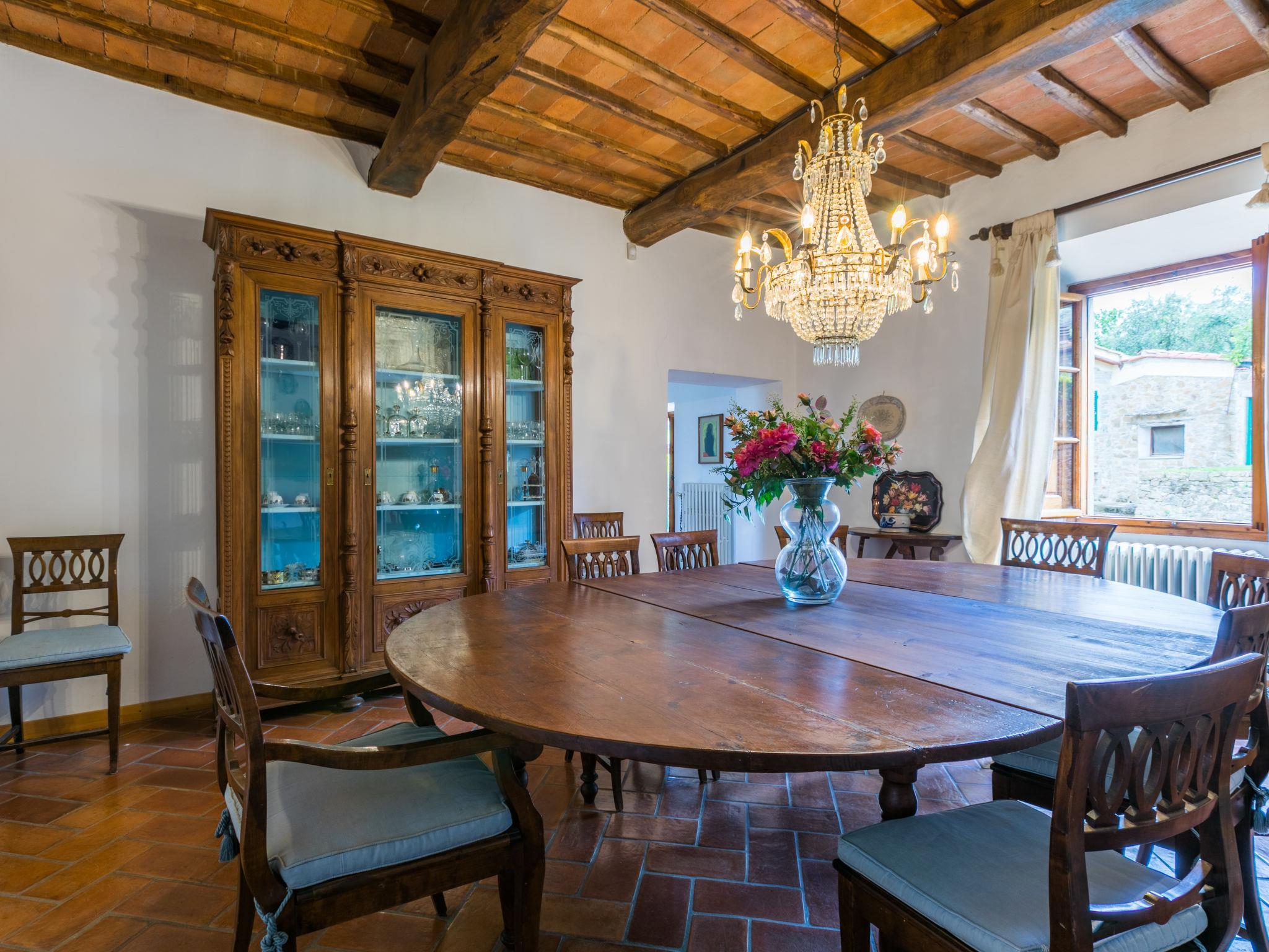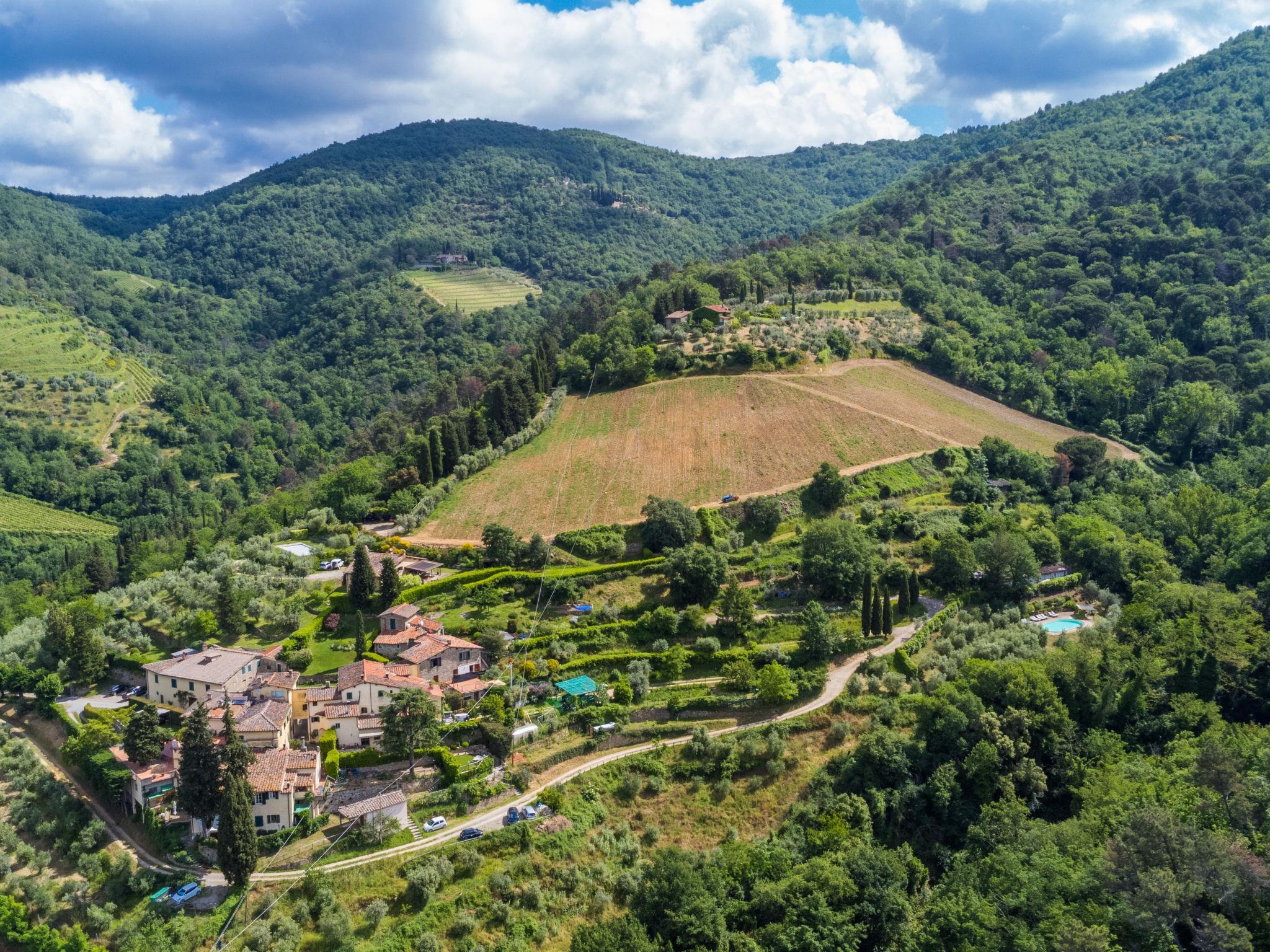 Very comfortable 2-family house "Ortensia", 500 m a.s.l., 3 storeys, from the 16th century, surrounded by trees and vineyards. 2 houses in the residence. 5 km from the centre of Greve in Chianti, in a secluded, quiet, elevated position, 200 m from the edge of the forest, in the countryside. For shared use: swimming pool fenced (6 x 12 m, seasonal availability: 15.May. - 30.Sep. pool opening hours: 80:00-20:00). Shower/WC in the pool area, patio, terrace, barbecue, pool maintenance by the owner/gardener. In the house: washing machine. Linen change (suppl. charge extra). Towel change (suppl. charge extra). Room cleaning daily on request (extra). Cook on request (extra). Storeroom available. 2200 km long bumpy motor access. In Winter: please take snow chains. Parking at the house. Shop 5 km, grocery 5 km, supermarket 5 km, restaurant 5 km, bus stop "Greve in Chianti" 4 km. Golf course (18 hole) 25 km, tennis 5 km. Nearby attractions: Panzano in Chianti 7 km, Castellina in Chianti 20 km, Firenze 40 km, San Gimignano 46 km, Siena 46 km. Please note: car recommended. Baby equipment (included). The owner does not accept any youth groups.
