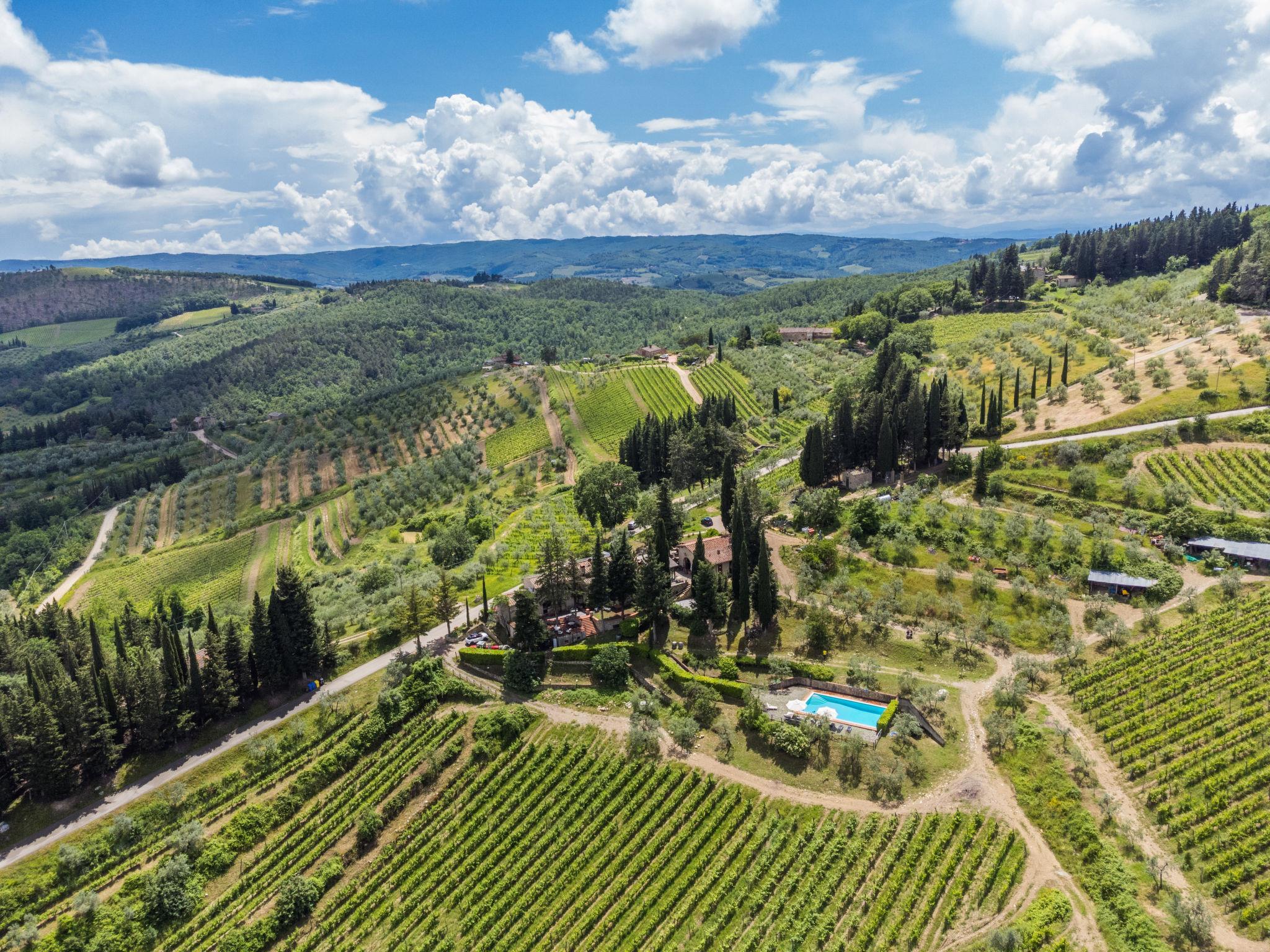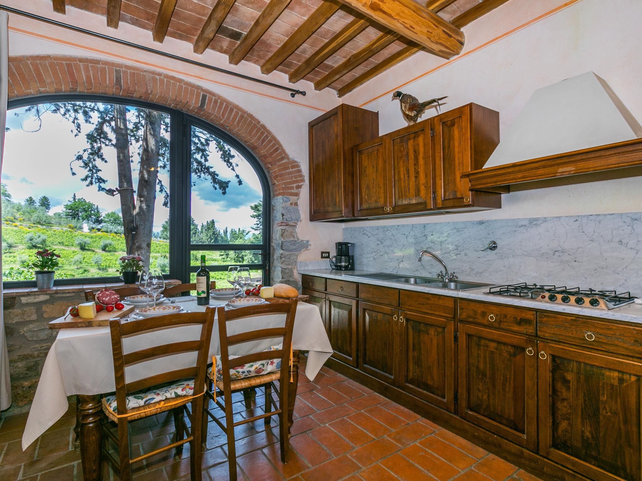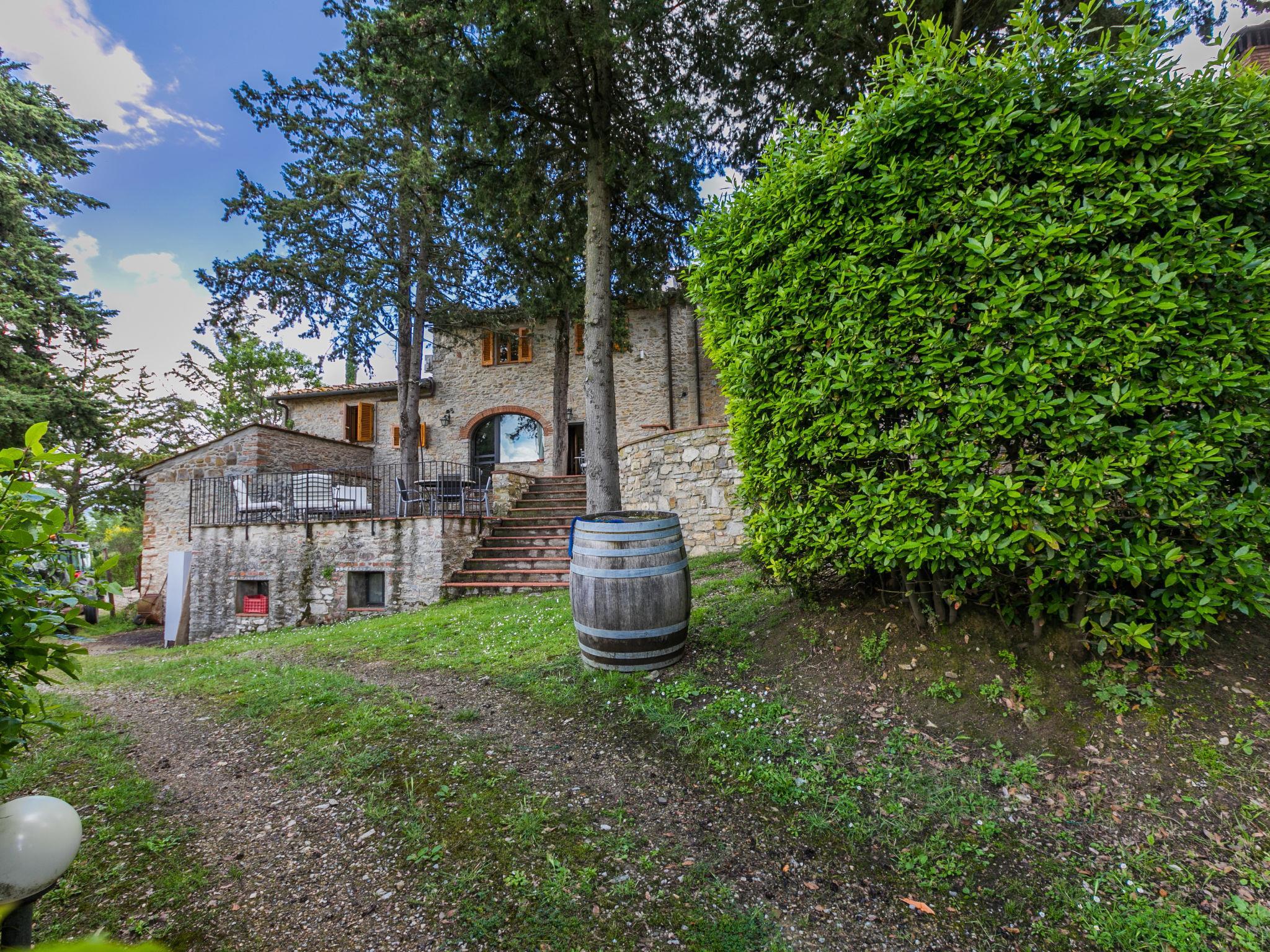 Montefioralle 3 km from Greve in Chianti: Agriturismo on a vinyard "San Rocco", 2 storeys, from the 19th century, surrounded by trees, fields and vineyards. 3 apartments in the residence. 3 km from the centre of Greve in Chianti, 1 km from the centre of Montefioralle, outside the resort, 25 km from the centre of Firenze, in a sunny position, in the countryside. For shared use: terraced garden, 4 ha (not fenced) with plants and trees, natural garden, swimming pool (12 x 6 m, depth 120 - 180 cm, seasonal availability: 02.May. - 03.Oct. pool opening hours: 08:00-20:00). Outdoor shower, barbecue, pool maintenance by the owner/gardener. In the house: washing machine (extra). Parking on the premises. Grocery 3 km, restaurant 3 km, bus stop 3 km, outdoor swimming pool 3 km. Golf course (18 hole) 18 km. Local sale of farm products. Owner lives in separate semi-detached house.