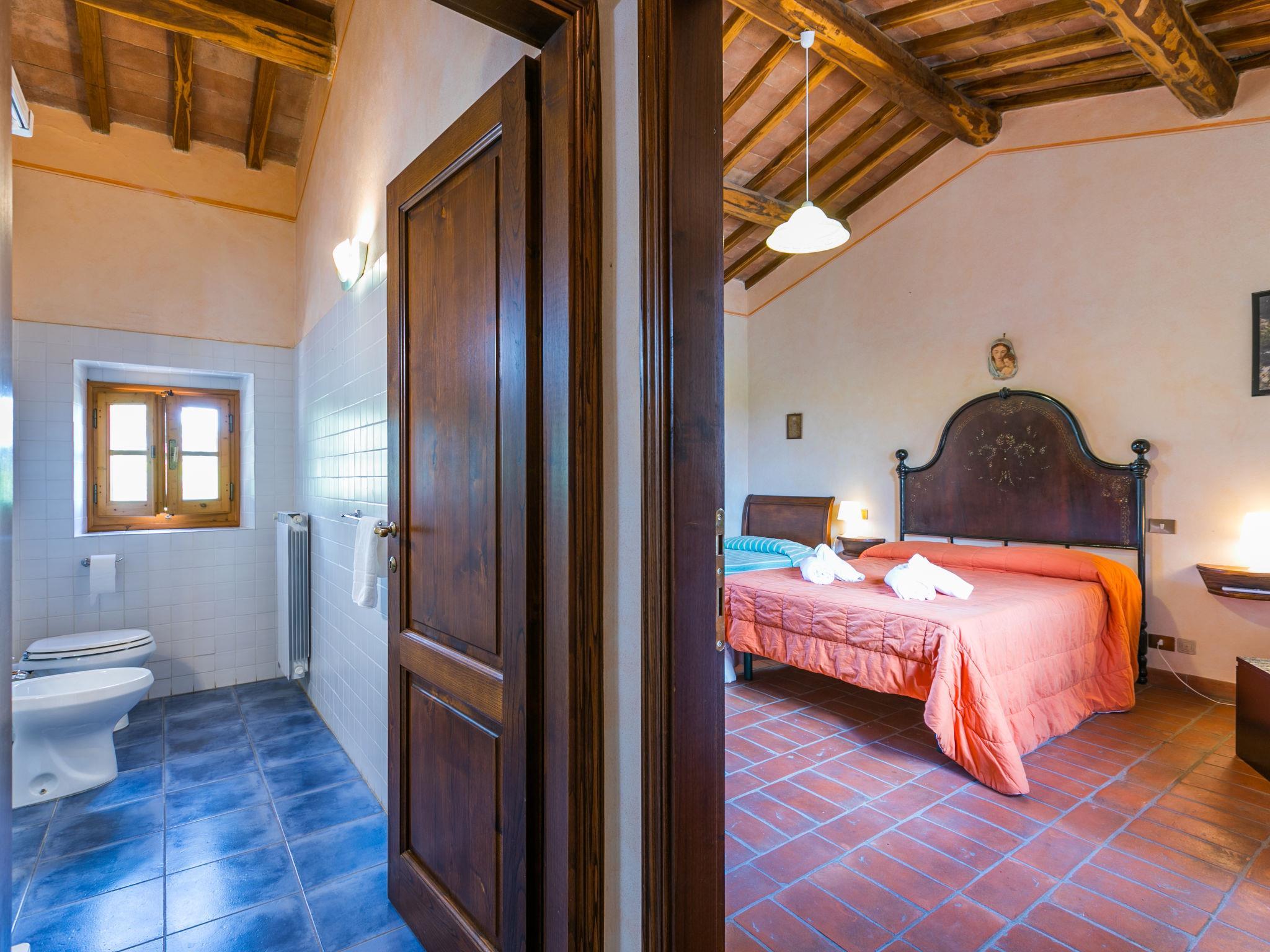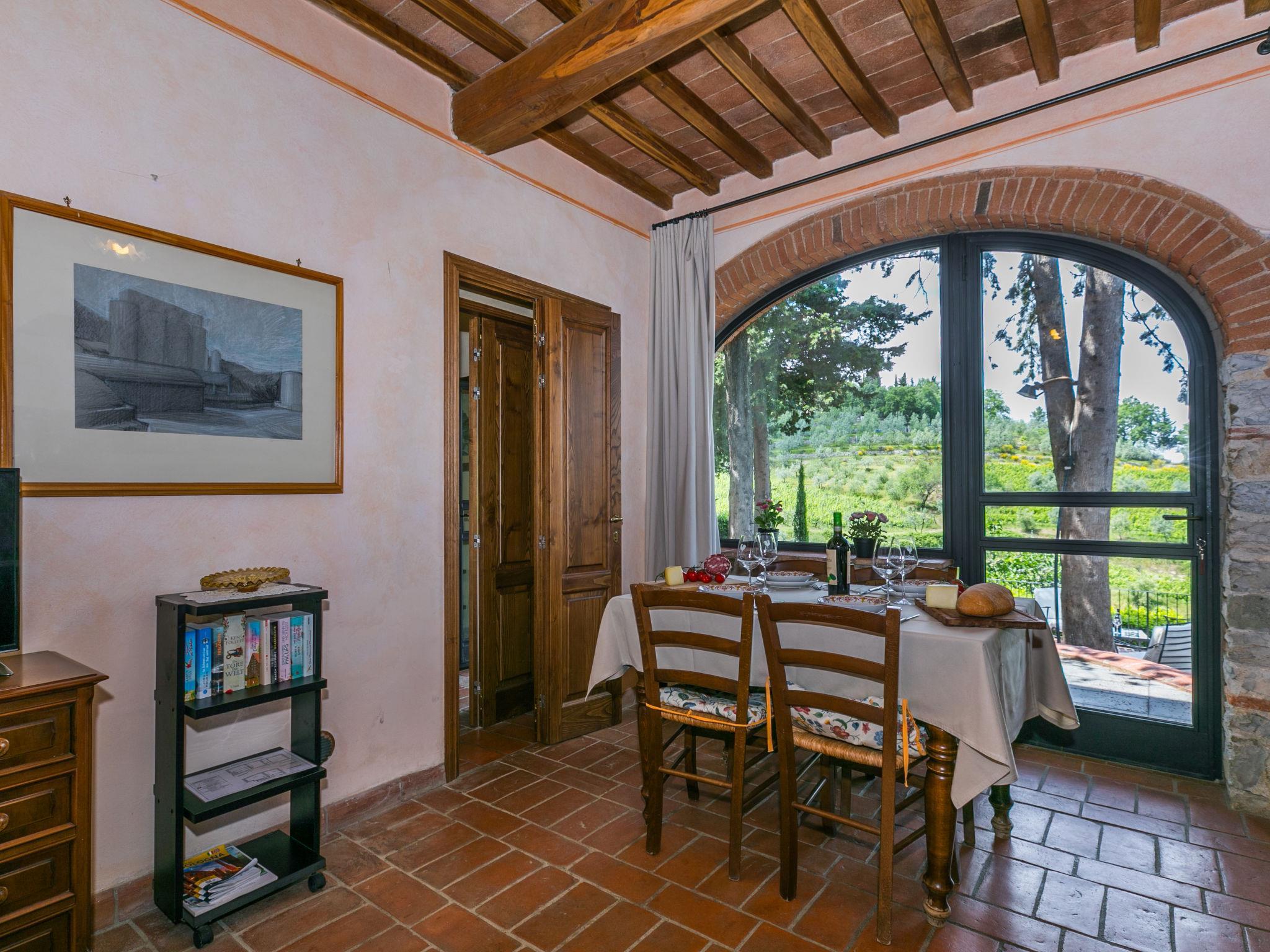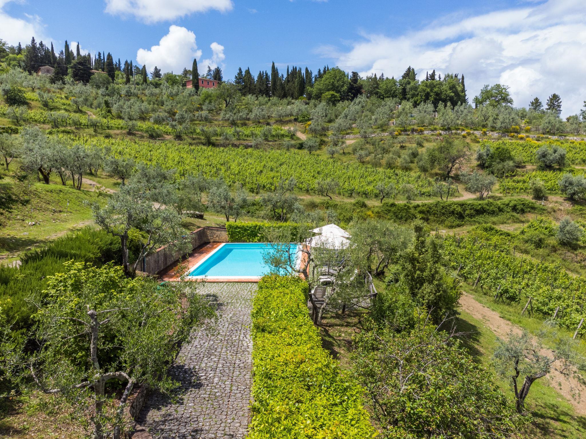 Montefioralle 3 km from Greve in Chianti: Agriturismo on a vinyard "San Rocco", 2 storeys, from the 19th century, surrounded by trees, fields and vineyards. 3 apartments in the residence. 3 km from the centre of Greve in Chianti, 1 km from the centre of Montefioralle, outside the resort, 25 km from the centre of Firenze, in a sunny position, in the countryside. For shared use: terraced garden, 4 ha (not fenced) with plants and trees, natural garden, swimming pool (12 x 6 m, depth 120 - 180 cm, seasonal availability: 02.May. - 03.Oct. pool opening hours: 08:00-20:00). Outdoor shower, barbecue, pool maintenance by the owner/gardener. In the house: washing machine (extra). Parking on the premises. Grocery 3 km, restaurant 3 km, bus stop 3 km, outdoor swimming pool 3 km. Golf course (18 hole) 18 km. Local sale of farm products. Owner lives in separate semi-detached house.