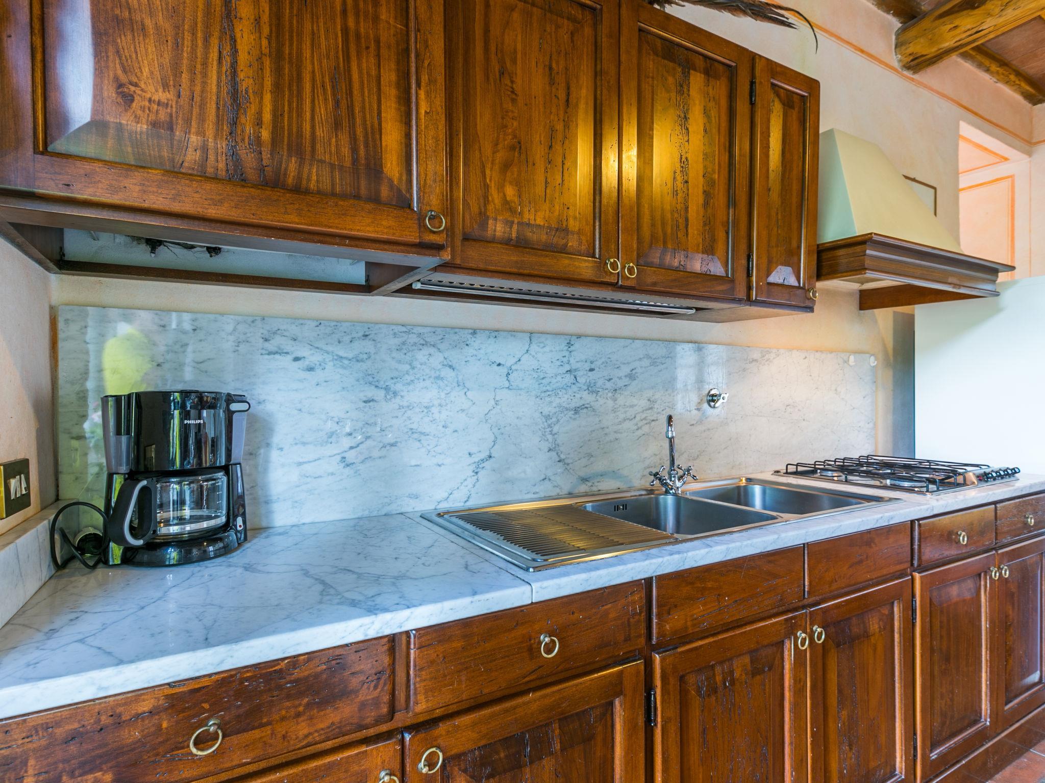 "San Rocco", 2-room semi-detached house 50 m2. Practical and rustic furnishings: living/dining room with dining table and satellite TV (flat screen). Exit to the terrace. 1 room with 1 bed (80 cm), 1 french bed (160 cm), air conditioning. Kitchenette (oven, dishwasher, 4 gas rings, toaster, kettle, microwave, electric coffee machine). Shower/WC. Gas heating. Terrace. Terrace furniture. Beautiful view of the countryside. Facilities: Internet (WiFi, free). Please note: non-smokers only. Maximum 1 pet/ dog allowed. Private entrance. IT048021B5CMIEQKQ5