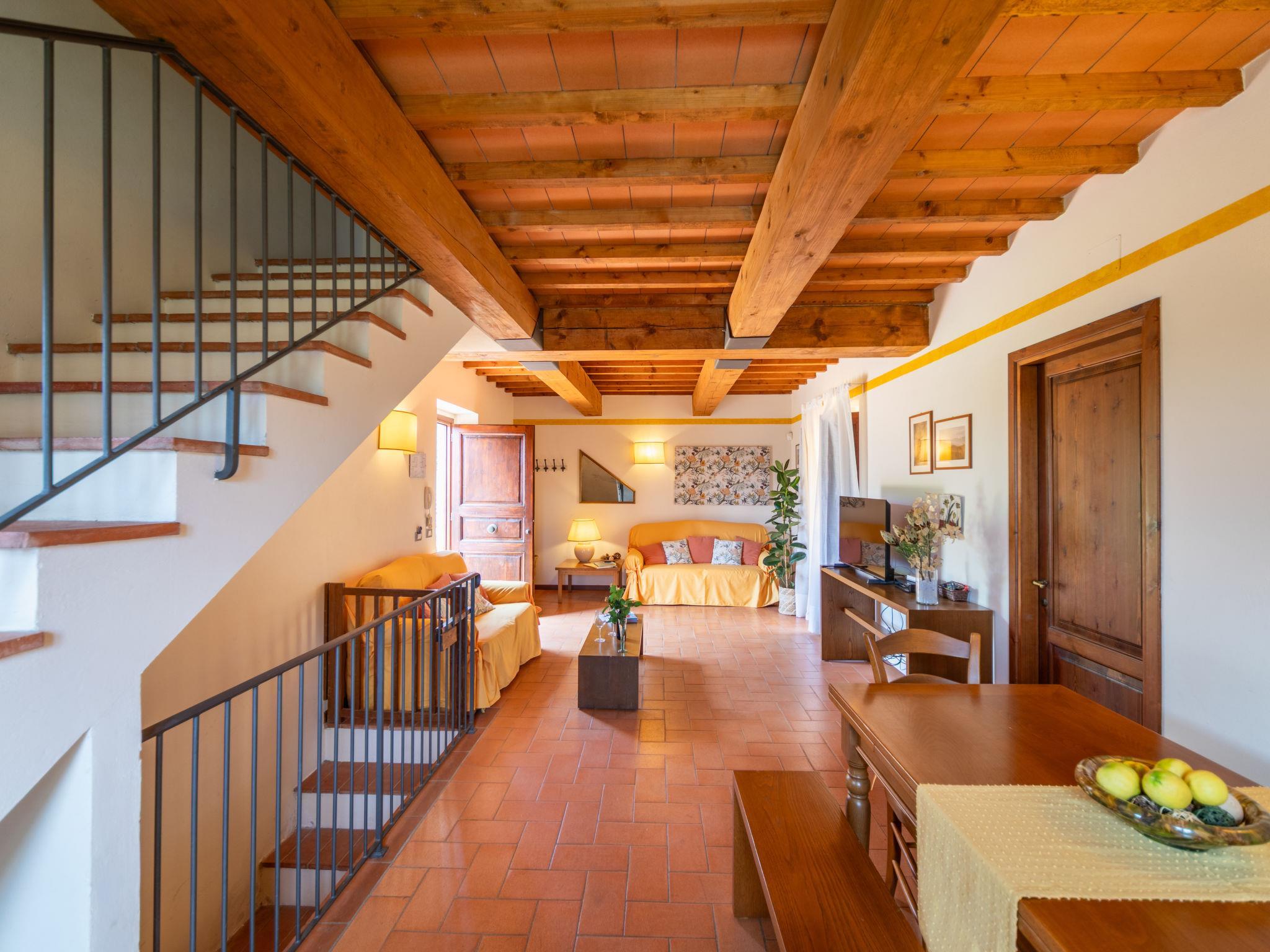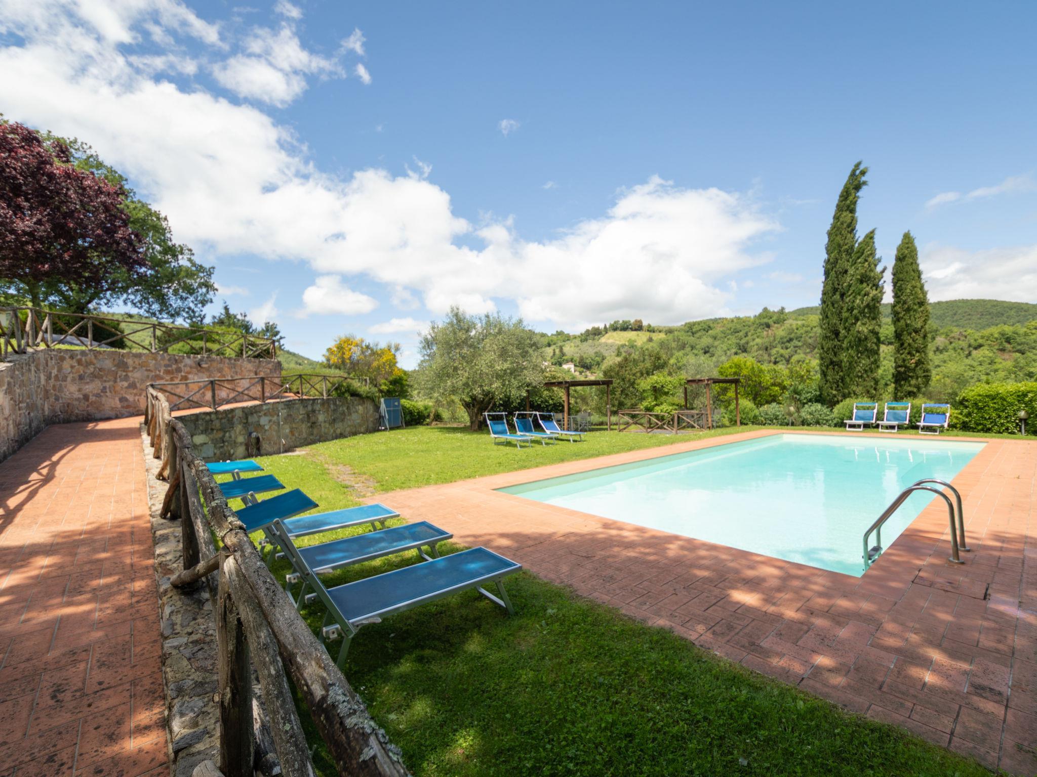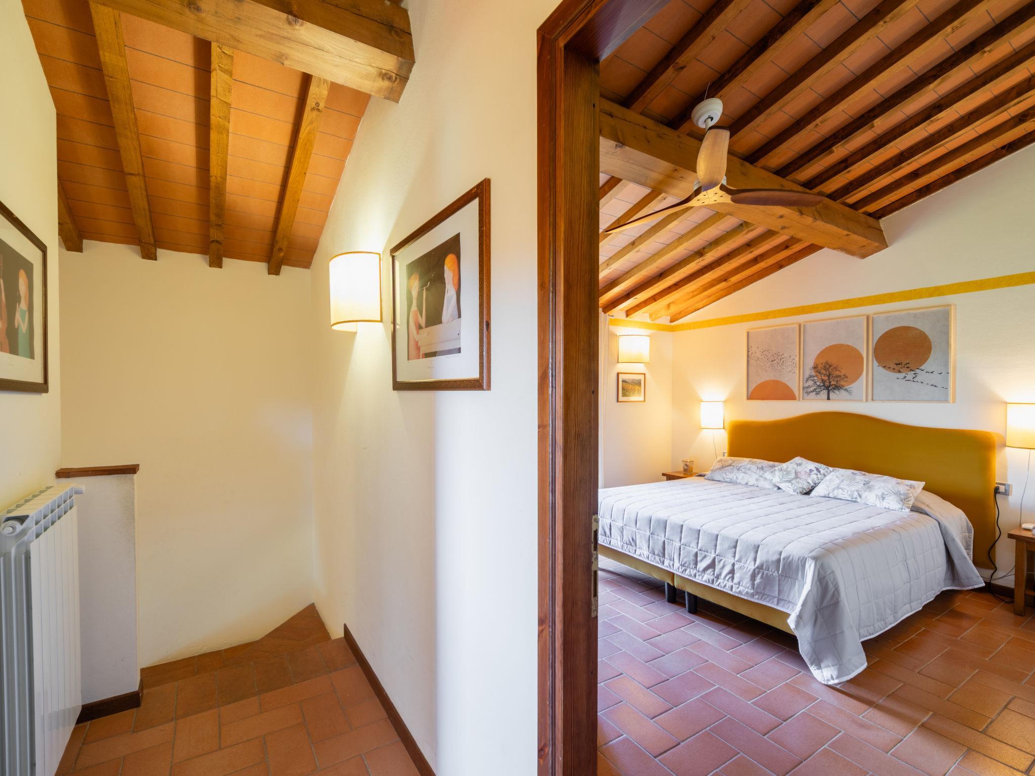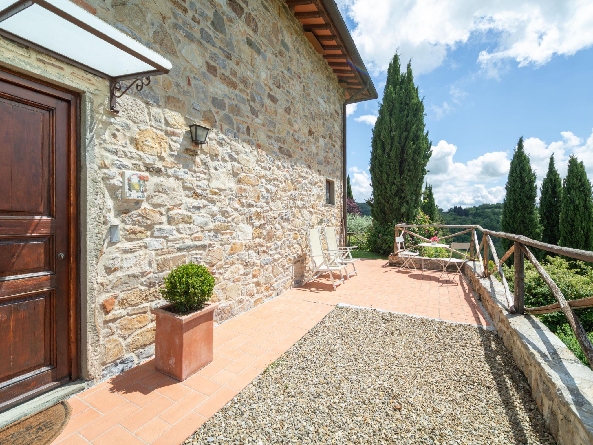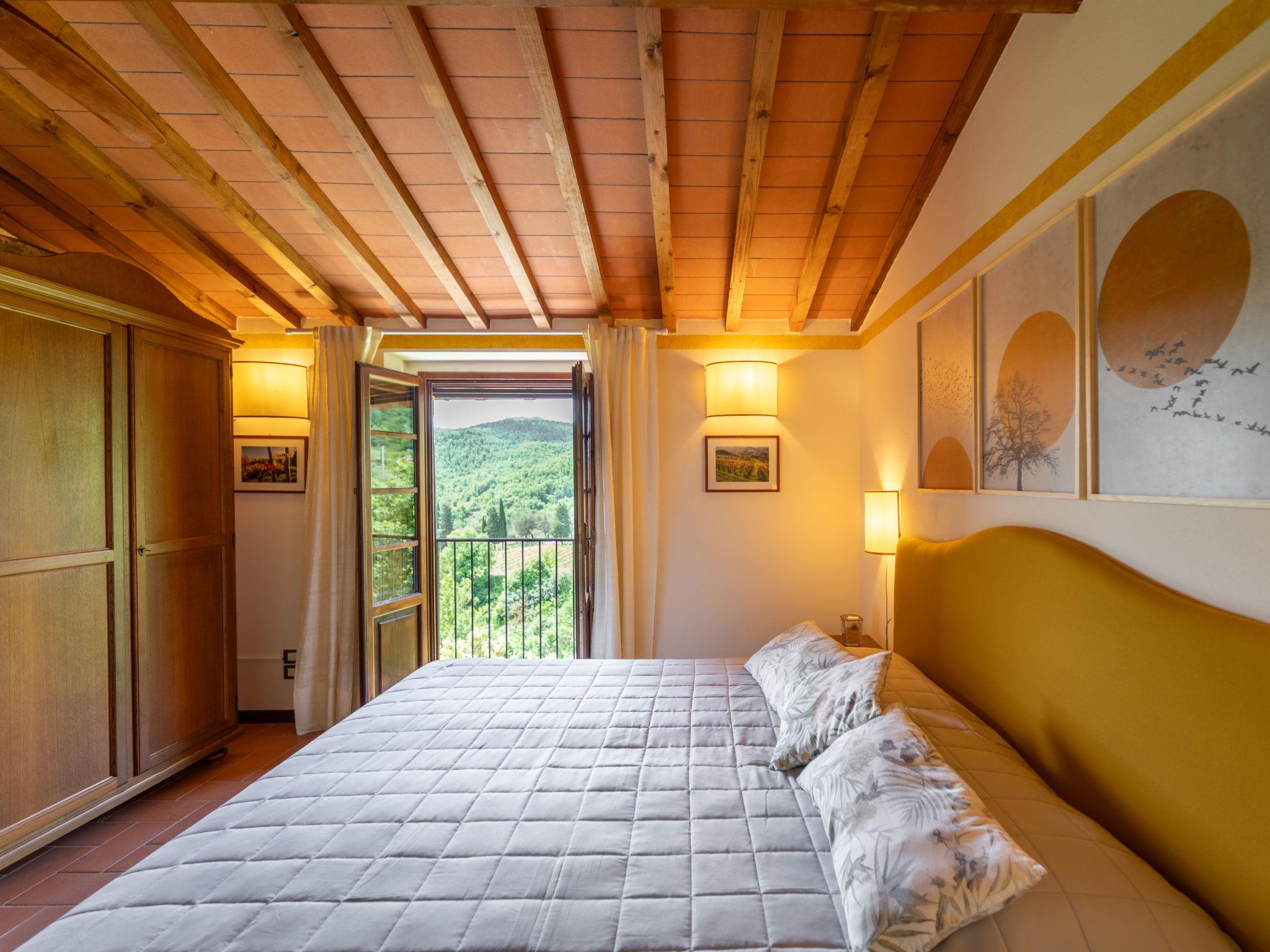 Hamlet surrounded by the countryside with 4 detached houses. In little square you can see 2 houses (I lecci, La Pieve), La Torre and La Corte are in another building separated from the rest by a central courtyard to esclusive use of « La Corte » (I5269.951.5). The furnishings and equipment are well-kept to ensure maximum comfort. Very child friendly, cosy holiday development "Borgo", surrounded by vineyards. 6 houses in the residence. 8 km from the centre of Greve in Chianti, 32 km from the centre of Firenze, 55 km from the centre of Siena, in a sunny position, in the countryside. For shared use: swimming pool (6 x 14 m, depth 80 - 220 cm, seasonal availability: 30.Apr. - 01.Oct.). Barbecue, pool maintenance by the owner/gardener. In the complex: internet access, WiFi, central heating system, heating to be paid on the spot, heating available only from 01.Nov. - 04.Apr.. Room cleaning on request (extra). Parking on the premises. Shop 3 km, supermarket 8 km, restaurant 3 km, bus stop 2 km. Golf course (18 hole) 9 km, tennis 9 km, riding stable 9 km. Nearby attractions: Panzano in Chianti 17 km, Radda in Chianti 21 km, San Casciano in Val di Pesa 23 km, Gaiole in Chianti 29 km, San Gimignano, Siena 55 km, Volterra 75 km. For the second week's supply, the cost of bed linen and towels is 12 euro per person (on request). The property is equipped with a video surveillance system with cameras.