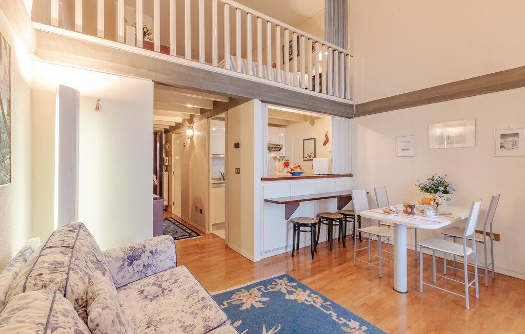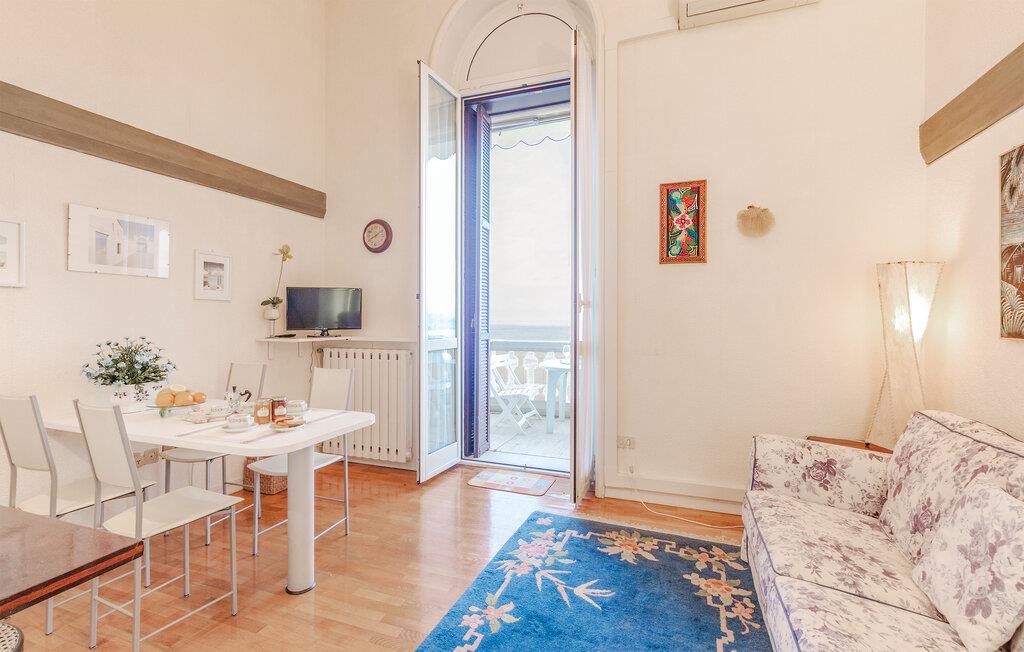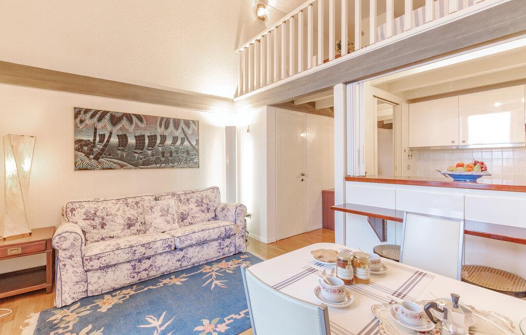 Denne charmerende og lyse ferielejlighed har et soveværelse på loftet og komfortabel indretning. Kom ind og føl jer hjemme med jeres familie. Nyd stemningen og den smukke udsigt, som denne ejendom byder på fra balkonen.