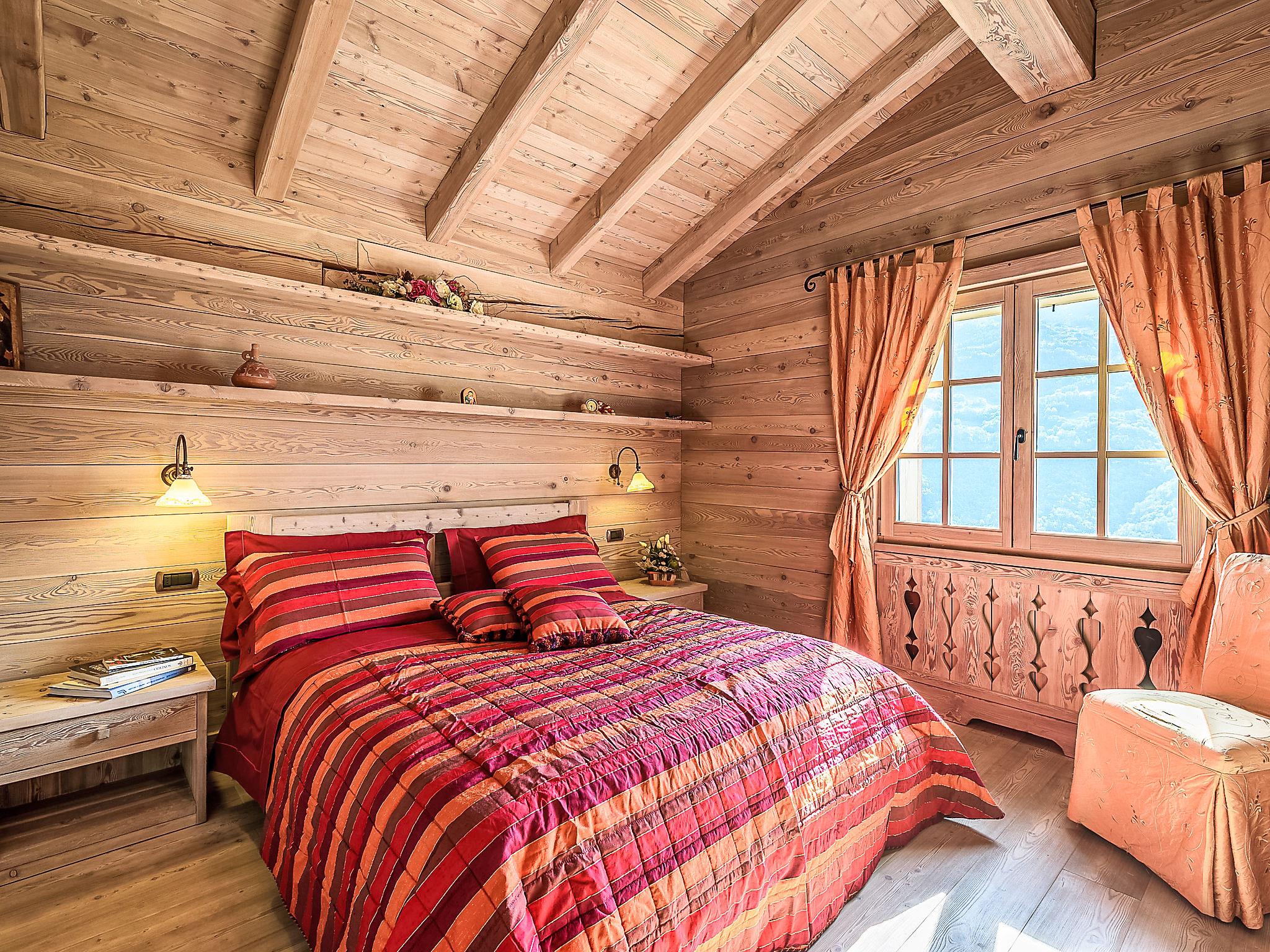 5-room chalet 300 m2 on 2 levels. Spacious and bright, partly with sloping ceilings, beautiful and stylish furnishings: open large living room with open-hearth fireplace and cable TV (flat screen). Exit to the garden. Large kitchen-/living room (4 hot plates, oven, dishwasher, toaster, microwave, freezer, electric coffee machine, Capsules for coffee machine (Nescafè Dolce Gusto)) with dining table, dining nook and wood-burning stove. Shower/bidet/WC. Upper floor: 1 room with 1 bed and 1 x 2 bunk beds, TV. 1 room with 1 double bed (180 cm, length 200 cm), TV. 1 room with 1 double bed (180 cm, length 200 cm), shower/bidet/WC. Exit to the balcony. Shower/bidet/WC. Wooden floors, natural stone floors. Small balcony. Deck chairs (4). Very beautiful panoramic view of the mountains, the valley and the garden. Facilities: washing machine, children's high chair, baby cot, hair dryer, logs (extra). Internet (WiFi, free). Please note: suitable for families. Non-smoking house. Maximum 1 pet/ dog allowed. IT014034C2BNOI9VEQ