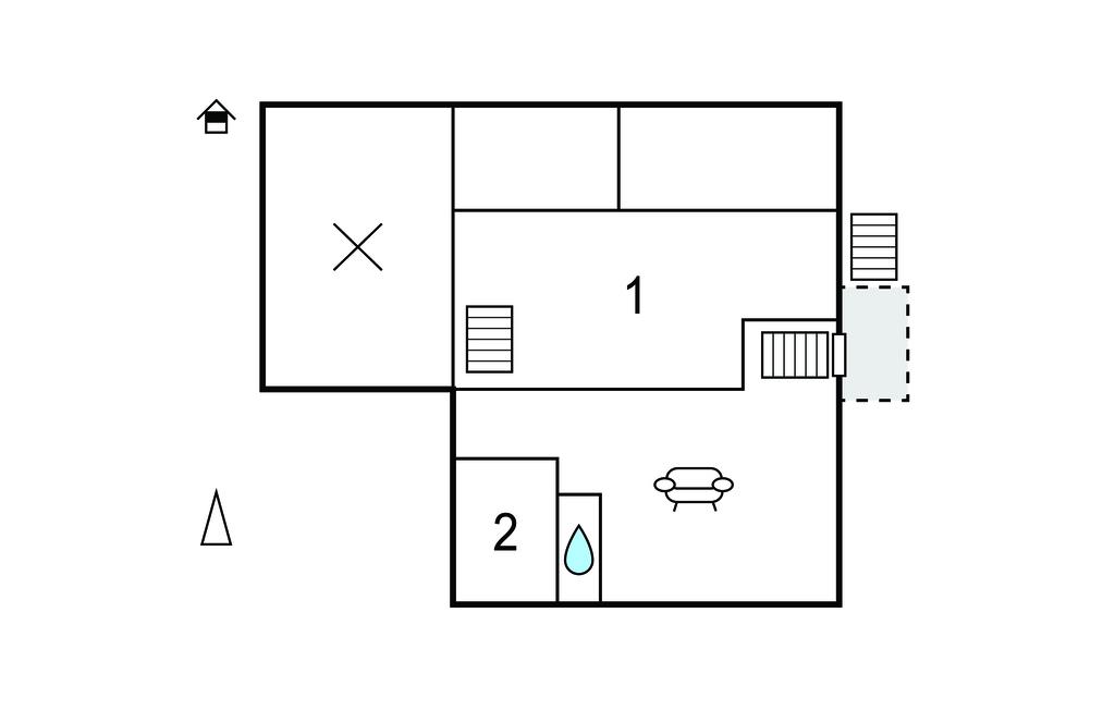 Opholdsstue/køkken 16m2 - 2 Sovepladser. (Sofa, madras eller lignende).