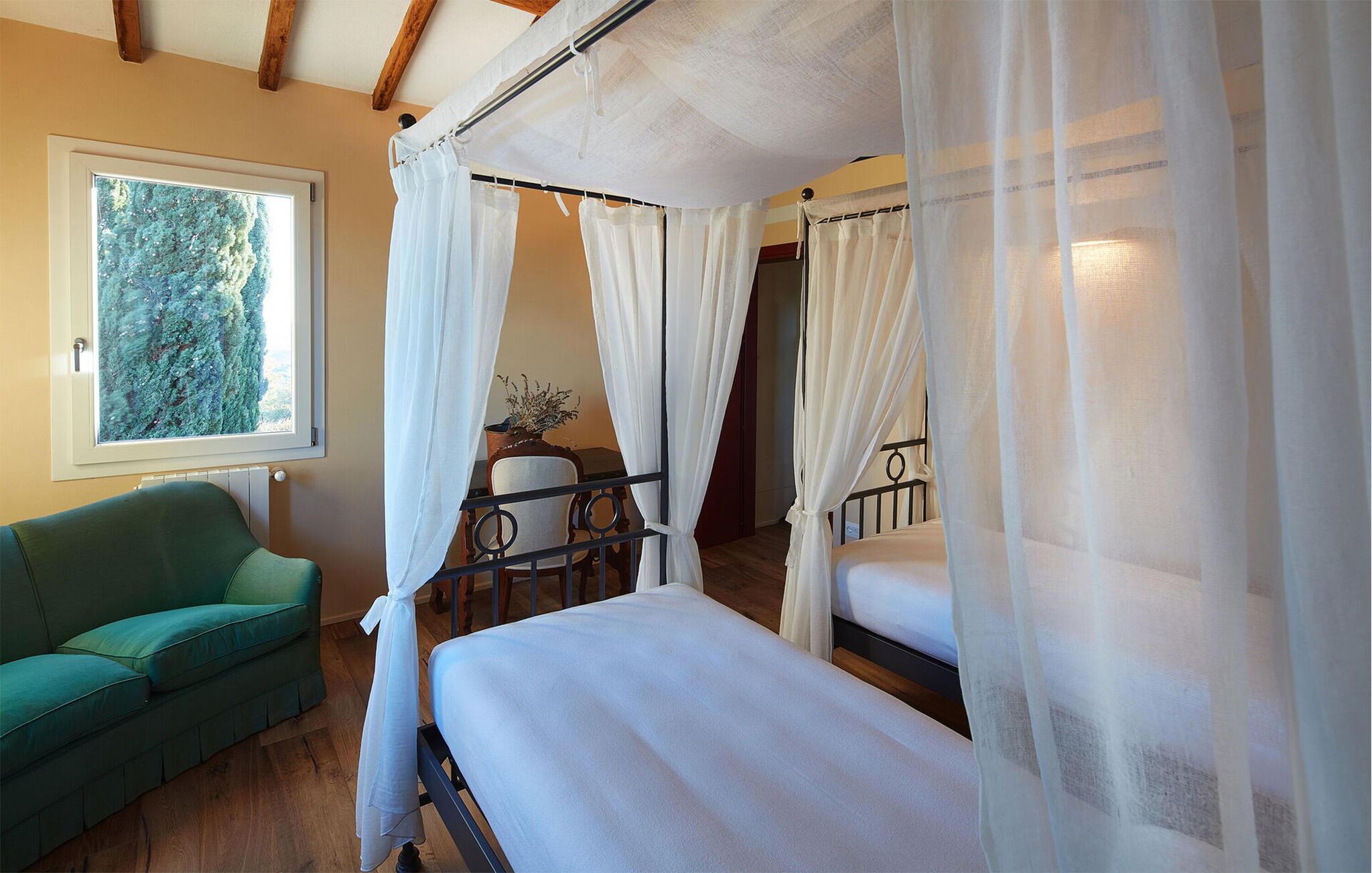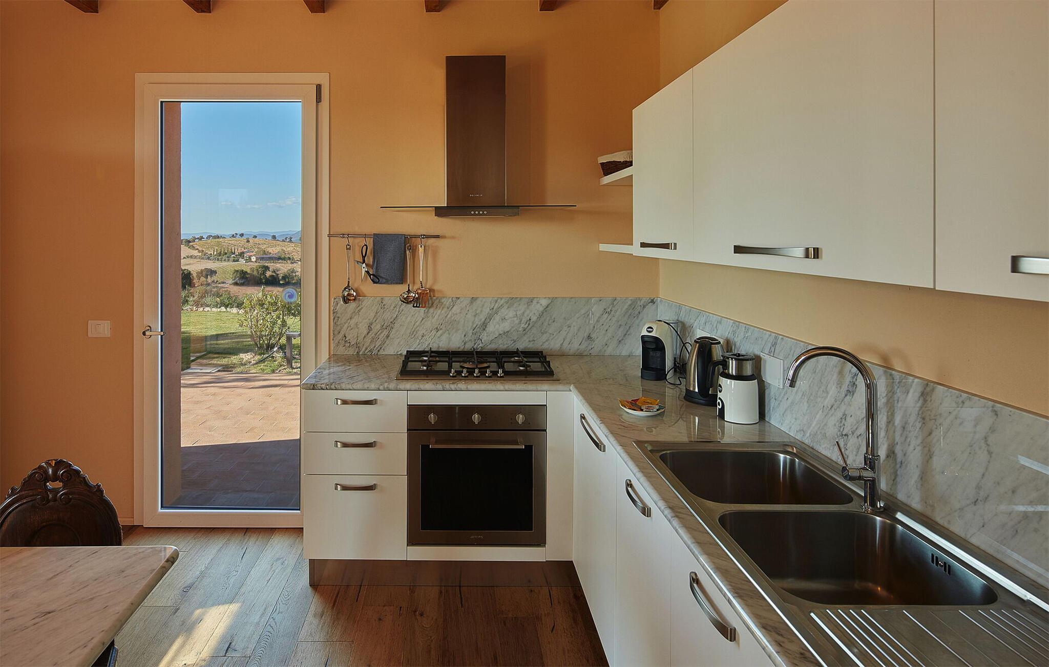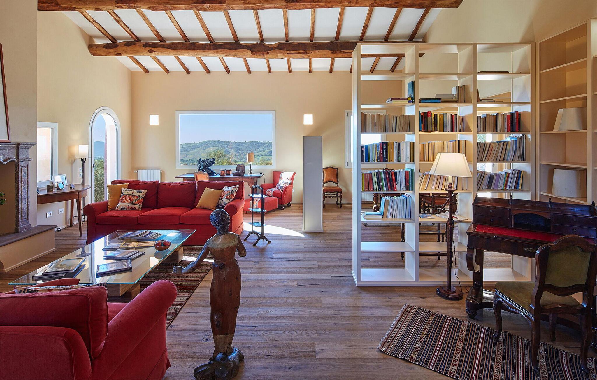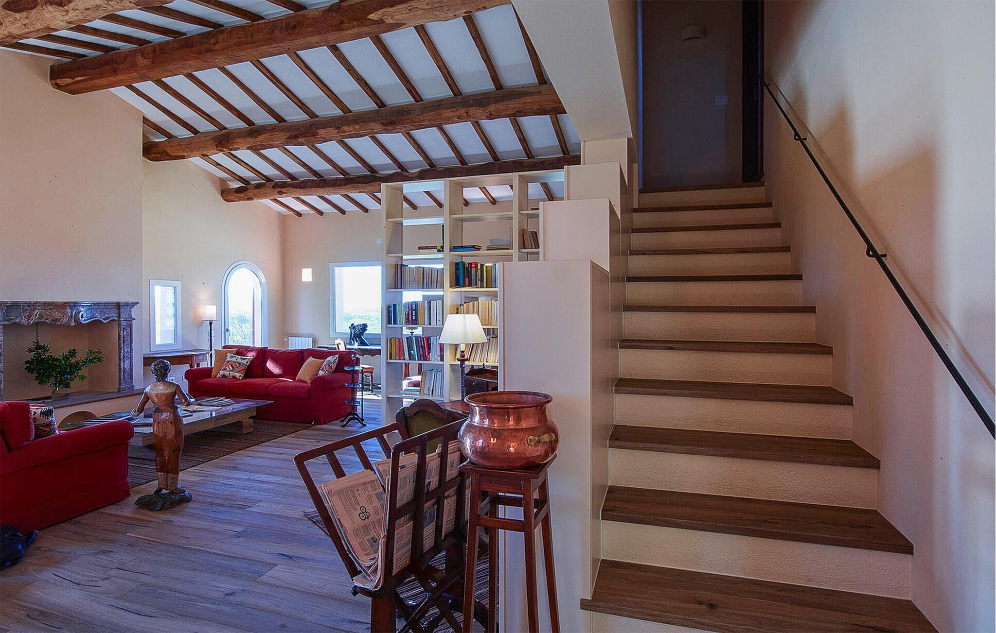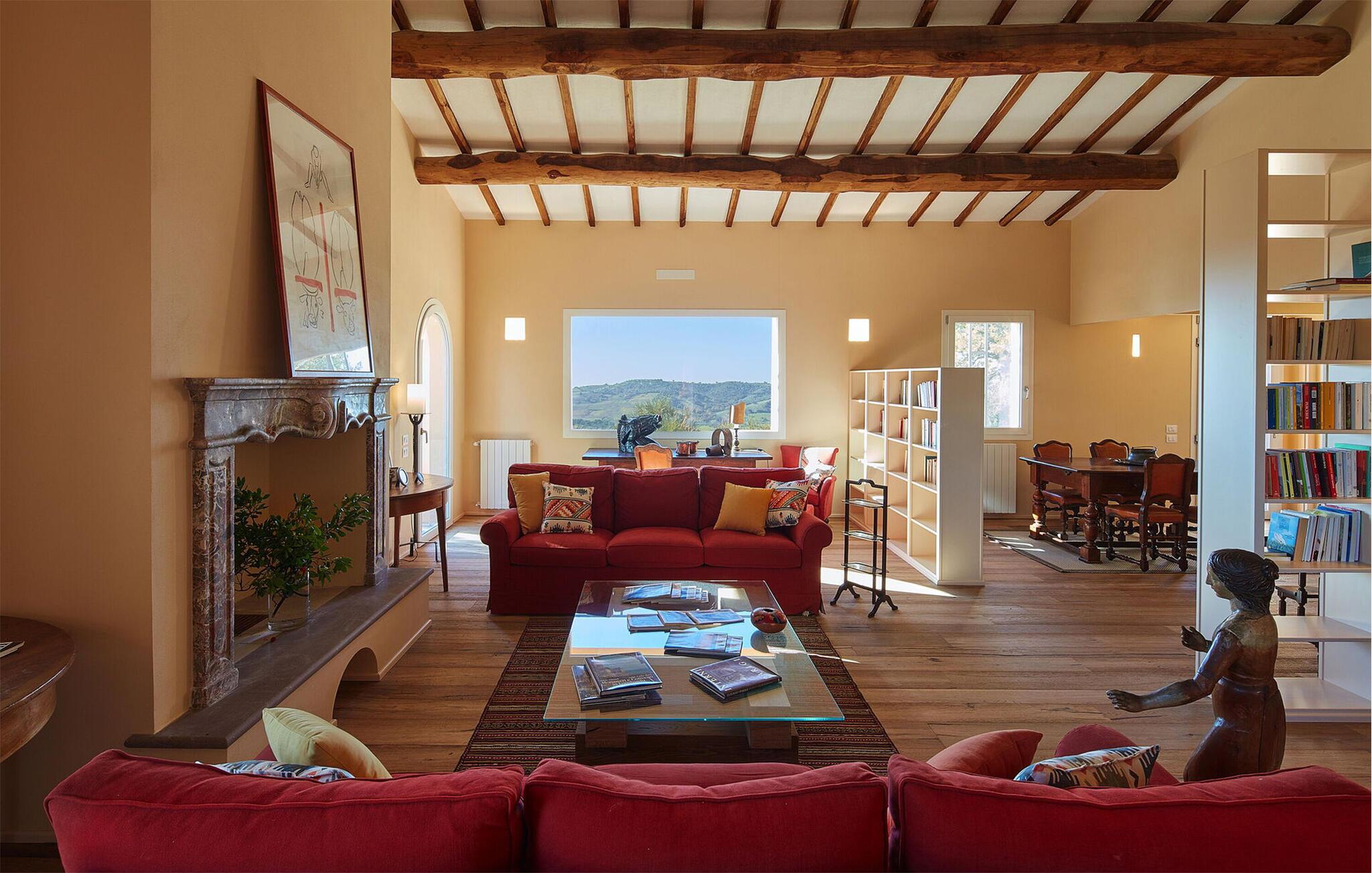 Nyd det gode liv i dette rummelige og smagfuldt indrettede feriehus, beliggende i det smukke toscanske landskab. Her finder I rigelig plads til hyggelige aftener med madlavning, dejlige måltider og hyggelige spilleaftener med familien. Snak om svundne tider i den komfortable stue, stream en film eller kig på biblioteket efter en interessant bog.