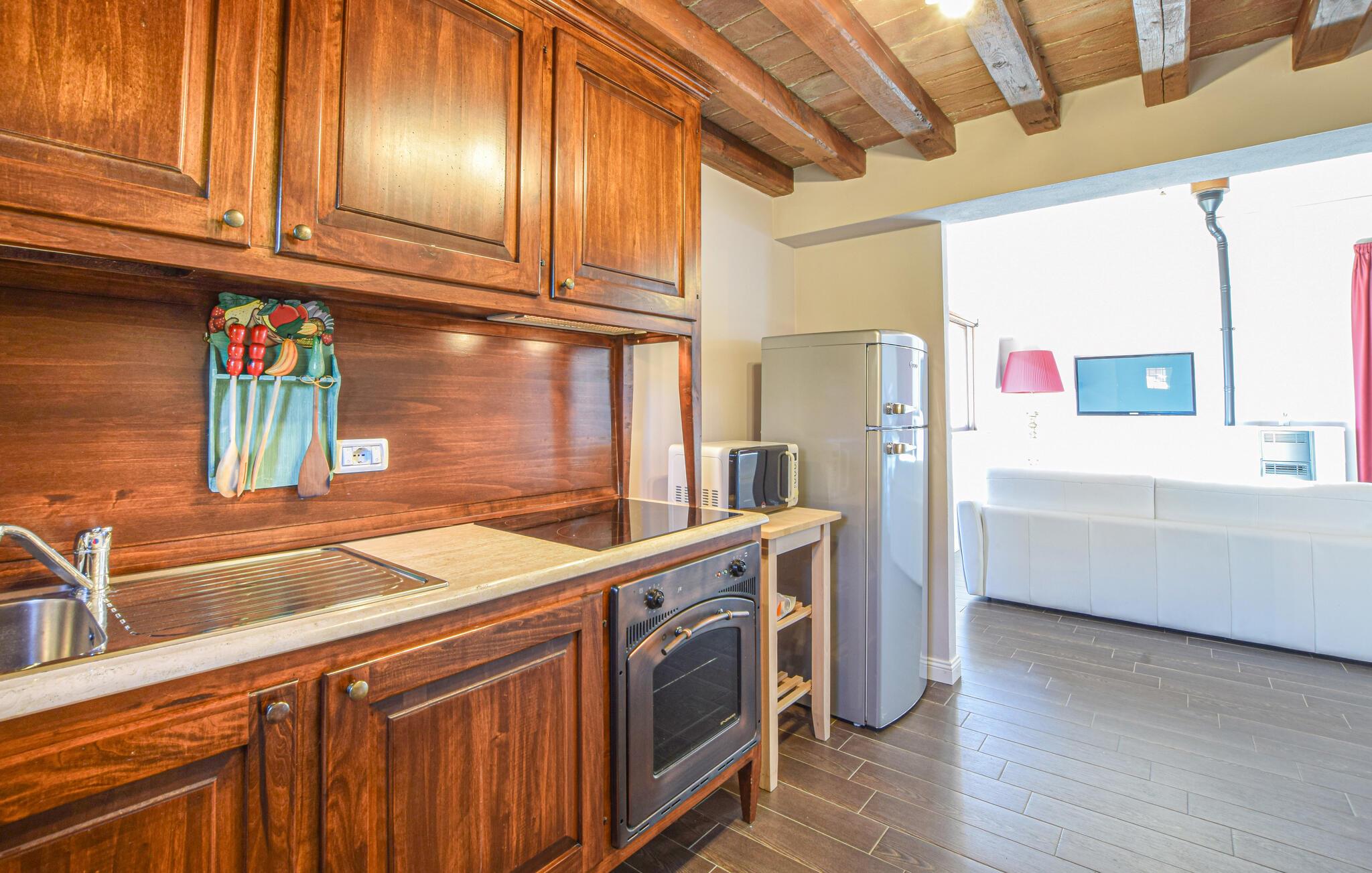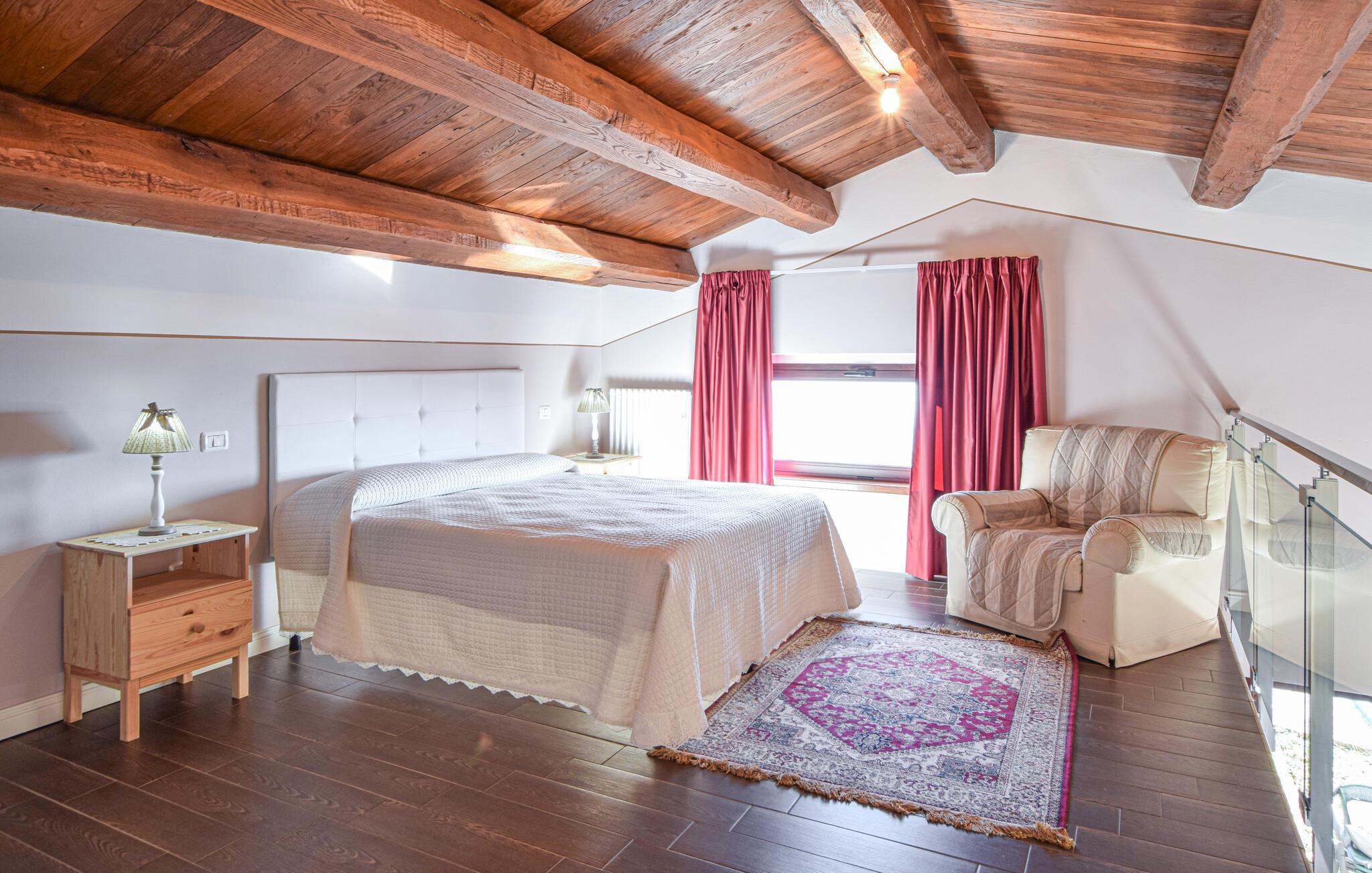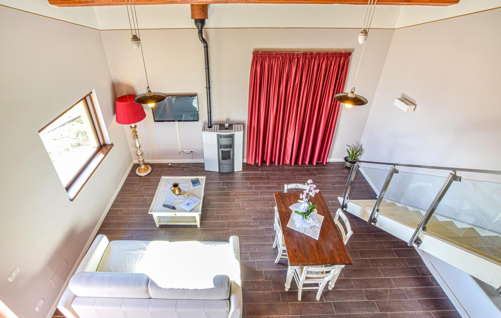Dette charmerende feriehus har et lyst og komfortabelt interiør, hvor hele familien kan sætte hverdagen på pause. Tilbered lækre måltider, planlæg jeres aktiviteter sammen, og brug det fælles fitnesscenter til jeres daglige træning. Om aftenen kan I streame en spændende film eller nyde et brætspil.