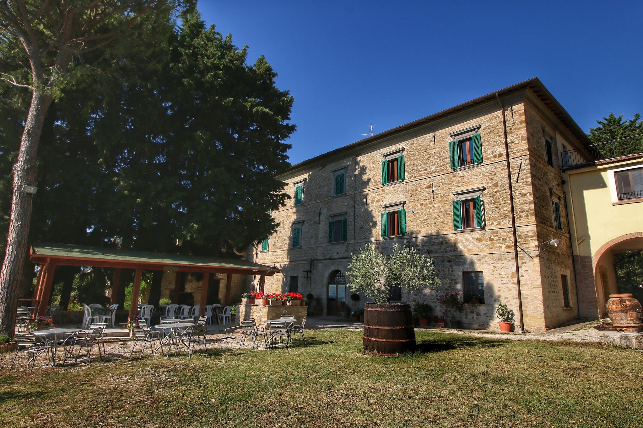 Beliggende i Umbriens fredfyldte bakker inviterer dette charmerende bondehus i Gualdo Cattaneo dig til at opleve Italiens rustikke hjerte med alle de bekvemmeligheder, som et tilbagetog på landet giver. Ejendommen er omgivet af olivenlunde og vinmarker og tilbyder en fredelig oase komplet med en stor fælles swimmingpool, frodig indhegnet have med liggestole, bordtennis og endda et boblebad for et strejf af forkælelse. Børn vil elske legepladsen med bordfodbold, mens voksne kan slappe af i haven med et glas lokal vin. Perfekt til kæledyrselskere, bondegården byder dine lodne ledsagere velkommen, og der er ingen mangel på naturskønne stier og stier på landet kun få skridt væk - ideel til lange gåture eller legende udendørs eventyr. En kort køretur tager dig til Alviano-søen, et roligt sted for picnic og fuglekiggeri, som både du og dit kæledyr vil nyde. Madelskere er i forkælelse: restauranten på stedet serverer traditionelle umbriske retter, lokale vine som Montefalco Rosso og Sagrantino og ekstra jomfru olivenolie direkte fra ejendommen. Om sommeren kan du spise al fresco under stjernerne og nyde atmosfæren i det landlige Italien. For en særlig lokal oplevelse, gå ikke glip af Bevagnas "Market Gaite" i juni eller Spoletos verdenskendte "Festival of the Two Worlds" i juli. Nærliggende byer som Assisi, Perugia og Spoleto er rige på historie, kunst og kultur og byder på fængslende dagsture. Tættere på hjemmet kan du nyde et lækkert måltid på Ristorante Il Grottino di Zio Totò eller Osteria Novecento i Gualdo Cattaneo - perfekte steder for autentisk regionalt køkken. Uanset om du ønsker at slappe af eller udforske, tilbyder denne bondegård den ideelle base for din flugt fra Umbrien.