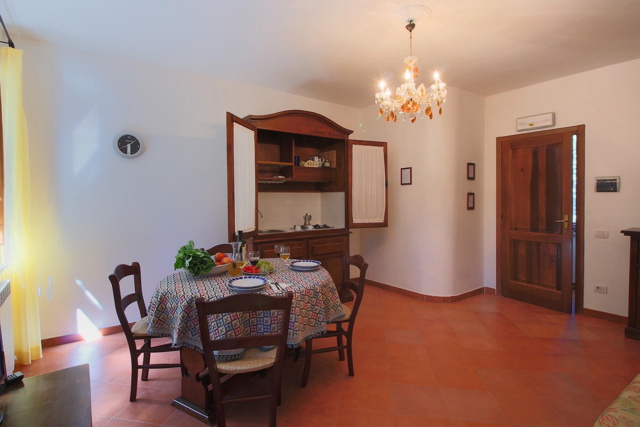 På 1. etage: (tekøkken(kogeplade, komfur, emhætte, kaffemaskine, mikrobølgeovn, køle-fryseskab), stue / spisestue(dobbeltsovesofa, Fjernsyn(parabol), spisebord), soveværelse(dobbeltseng), badeværelse(bruser, håndvask, toilet, bidet)) Bubble bath(betalt), vaskemaskine(deles med andre gæster), fester, varme(central, gas), have(deles med andre gæster, indhegnet), havemøbler, solstole, grill, parkering, Parasol, swimmingpool(deles med andre gæster, 14 x 7 m., opened from Jun upto and including Sep), bordtennisbord