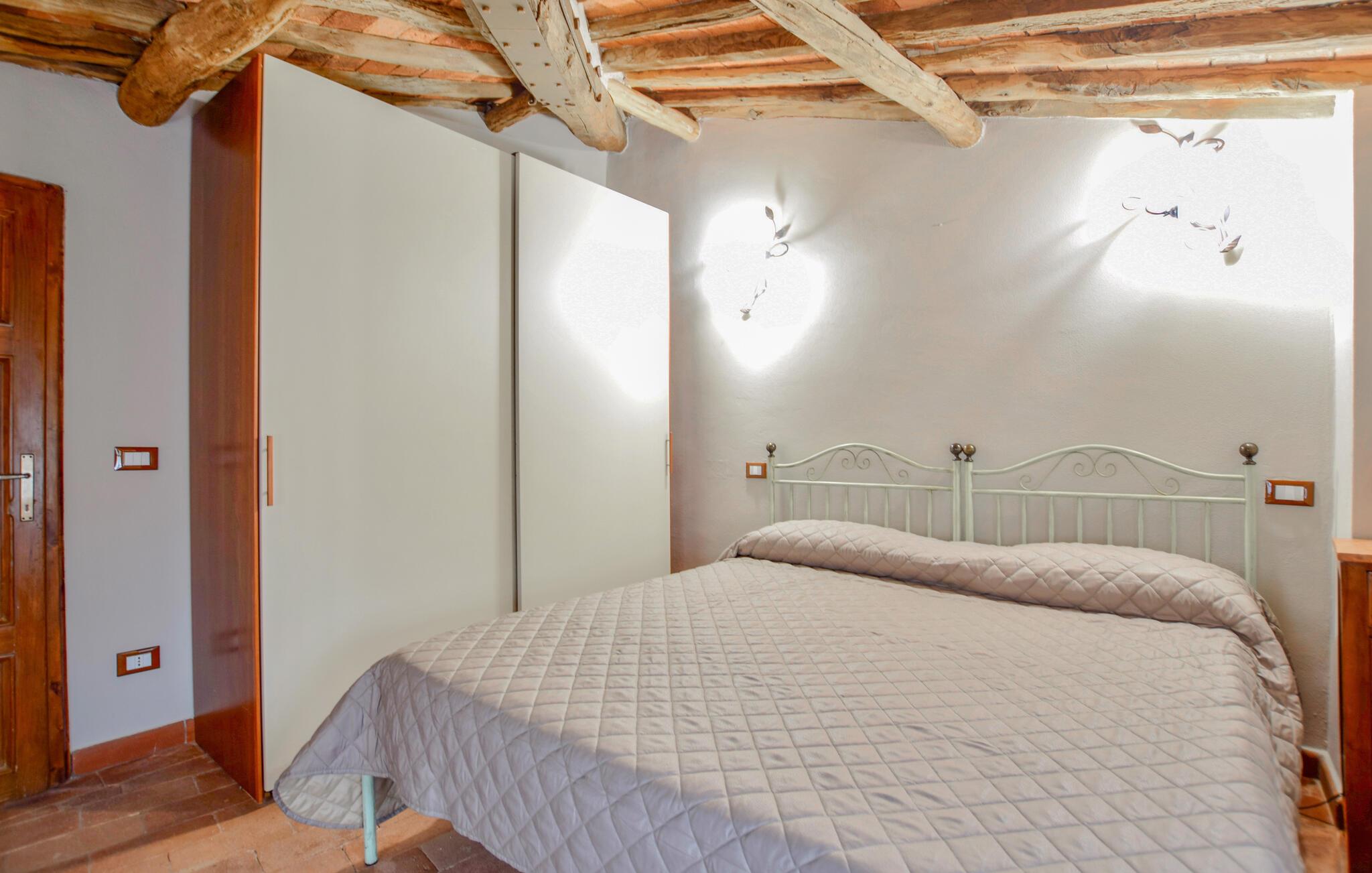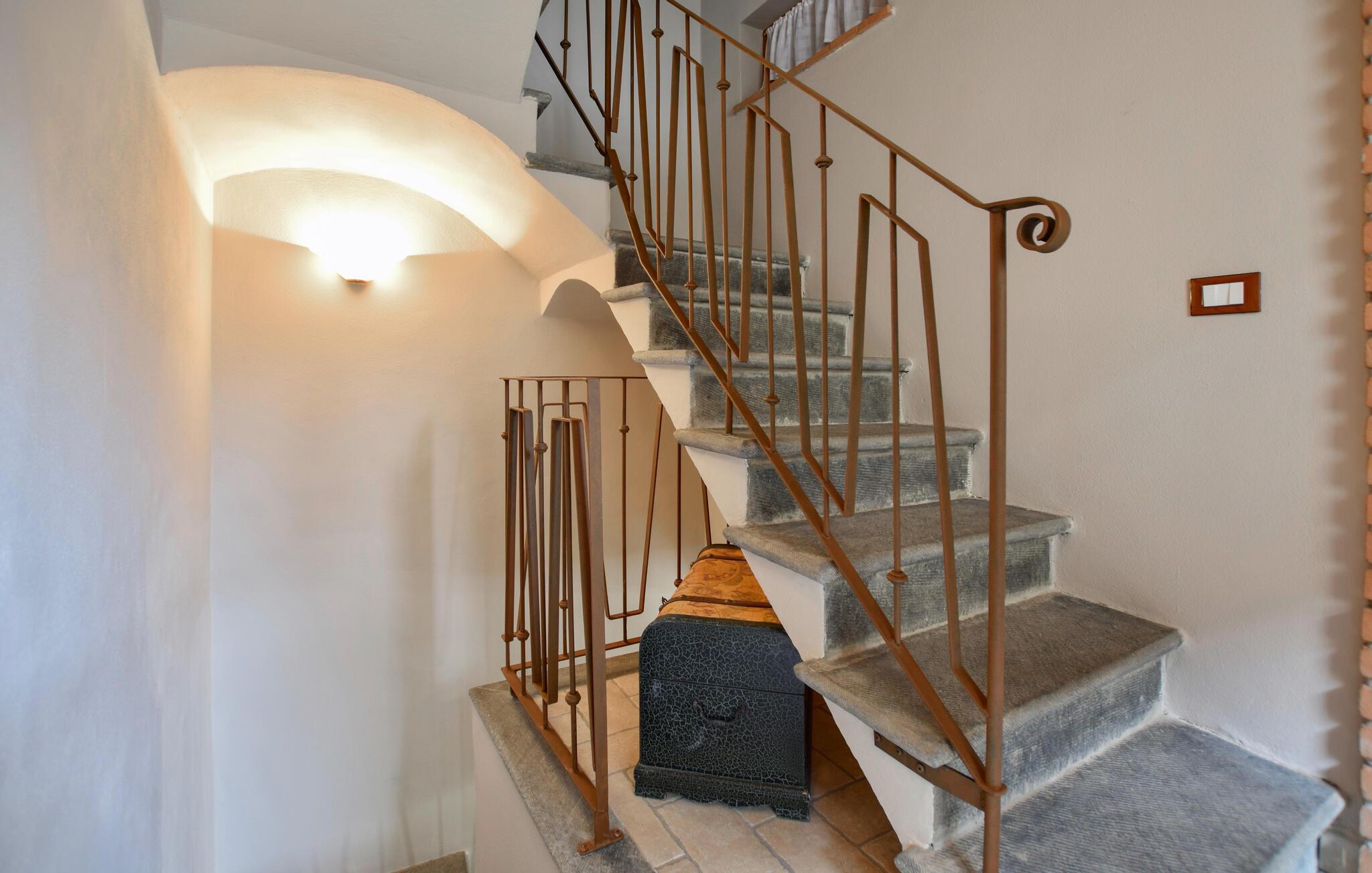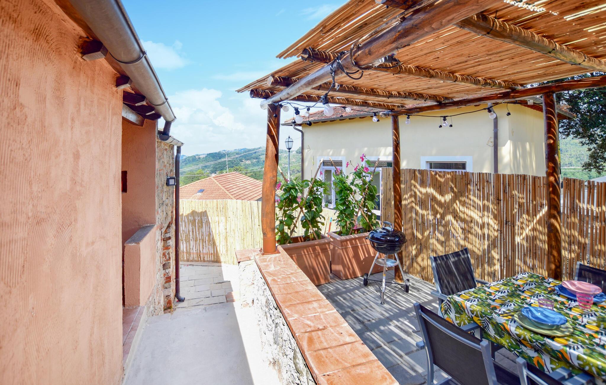 Dette hyggelige feriehus giver jer det optimale miljø til en rolig ferie i Italien. Det nænsomt indrettede udendørsområde skaber en varm og indbydende atmosfære, hvor I straks vil føle jer hjemme. Begynd dagene med en solid morgenmad på den overdækkede terrasse, mens I nyder udsigten over det bjergrige landskab. Efter morgenmaden kan I trække jer tilbage til det praktiske indendørsområde eller læse en god bog på de udendørs liggestole.