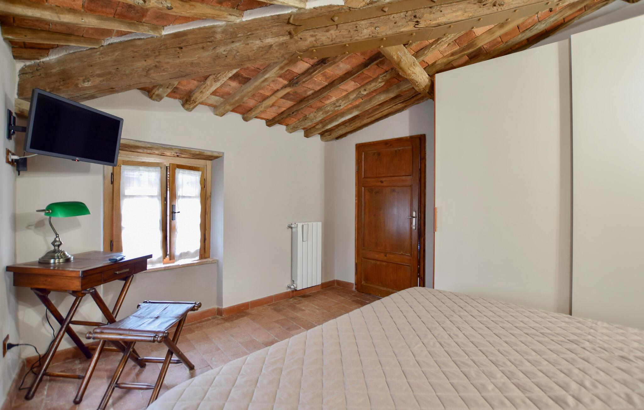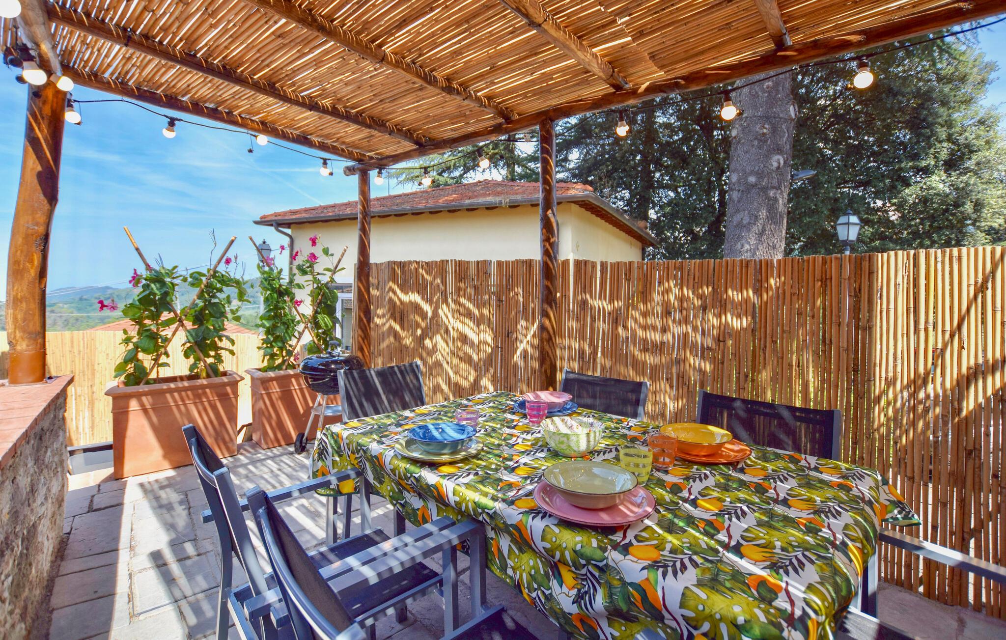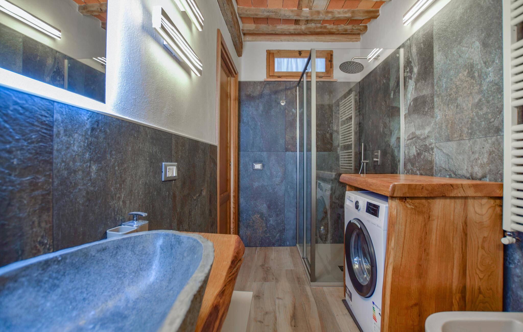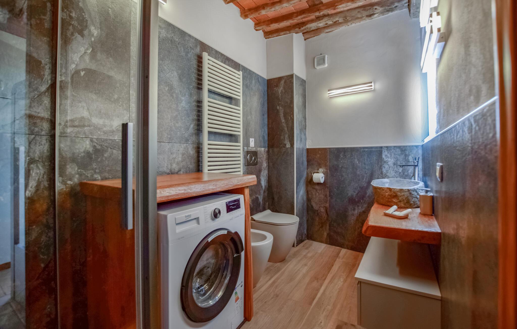 Dette hyggelige feriehus giver jer det optimale miljø til en rolig ferie i Italien. Det nænsomt indrettede udendørsområde skaber en varm og indbydende atmosfære, hvor I straks vil føle jer hjemme. Begynd dagene med en solid morgenmad på den overdækkede terrasse, mens I nyder udsigten over det bjergrige landskab. Efter morgenmaden kan I trække jer tilbage til det praktiske indendørsområde eller læse en god bog på de udendørs liggestole.