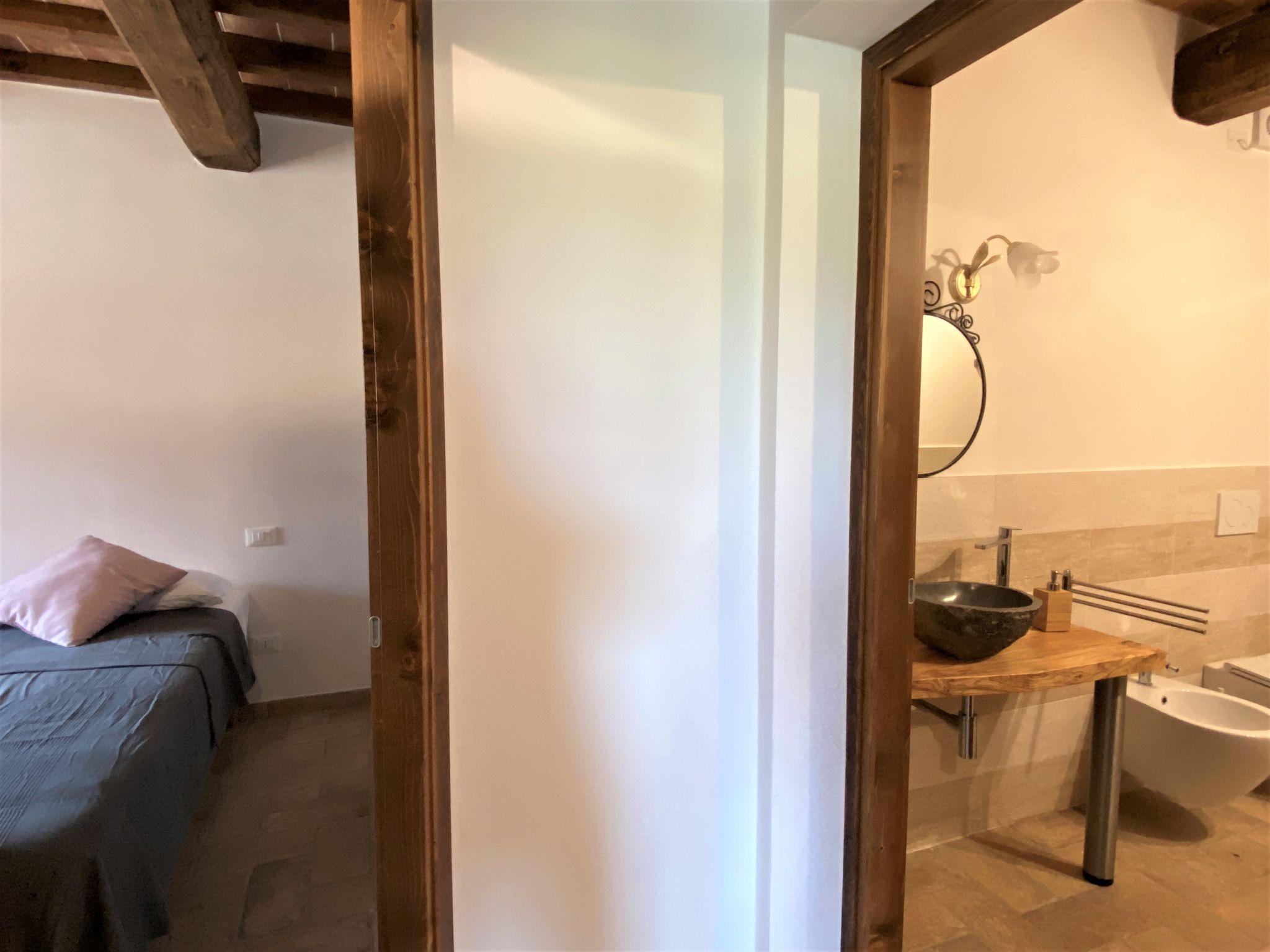 This carefully restored complex is located in the middle of the fields of the Val di Cecina, a few steps from the river of the same name. Much attention was paid to the construction of the swimming pool, where a hydromassage ( about 11 people) and a children's pool carved into the stone were created. Resort "Podere la Querciola", 2 storeys, renovated in 2021, surrounded by meadows and fields. In the district of Casino di Terra 11 km from the centre of Guardistallo, 14 km from the centre of Cecina, in a secluded, quiet position, 16 km from the sea. For shared use: property with plants and trees, swimming pool (6 x 11 m, depth 150 cm, seasonal availability: 01.May. - 15.Oct.). Children's pool, outdoor shower, hot tub, garden furniture, barbecue. In the complex: WiFi, washing machine (extra). Motor access (700 m via unmade road). Parking. Shop 11 km, restaurant 2 km, bar 2 km, bus stop 1.1 km, sandy beach "Marina di Cecina" 16 km. Nearby attractions: Volterra 24 km, Pisa 70 km, Firenze 100 m.