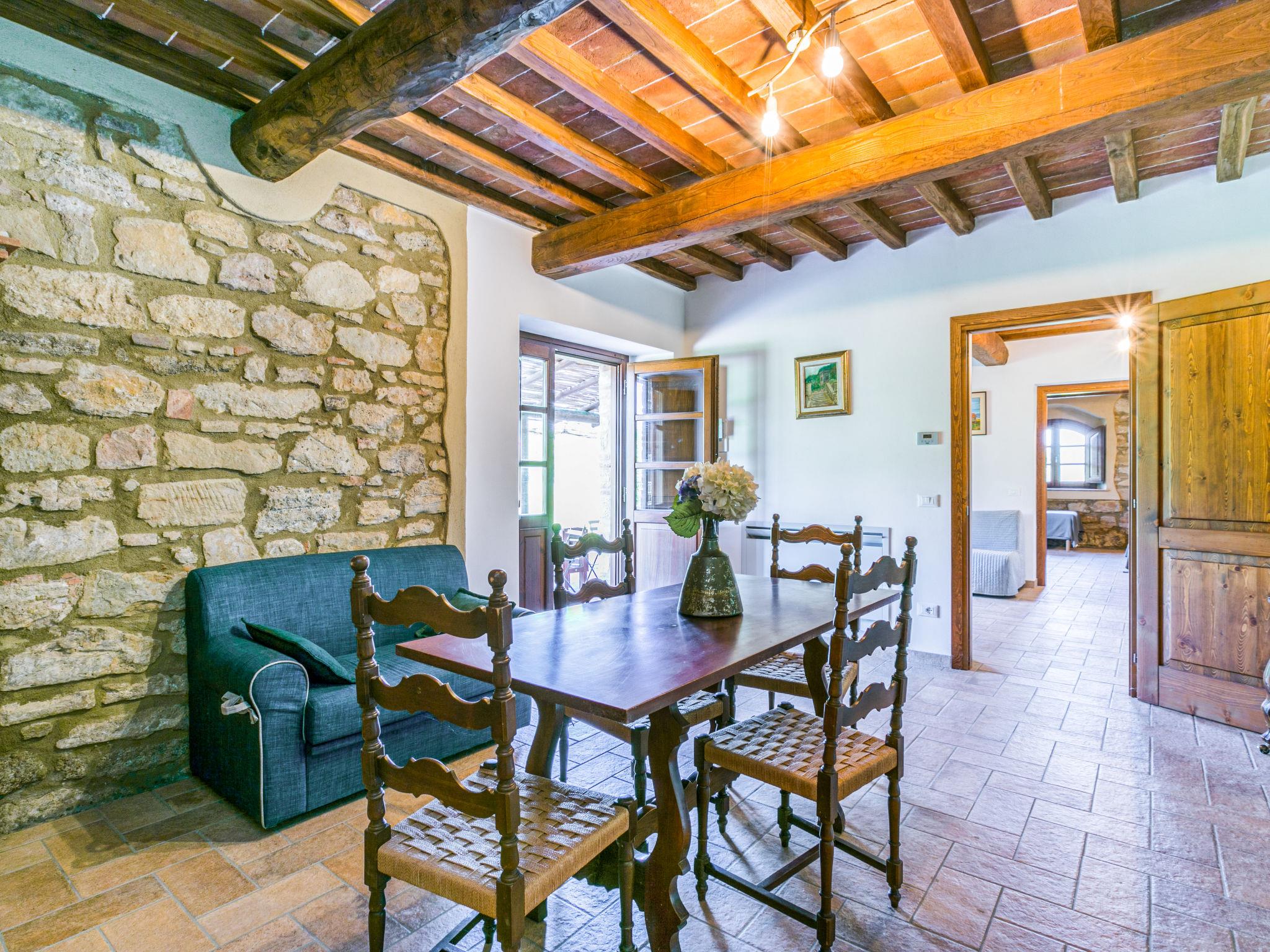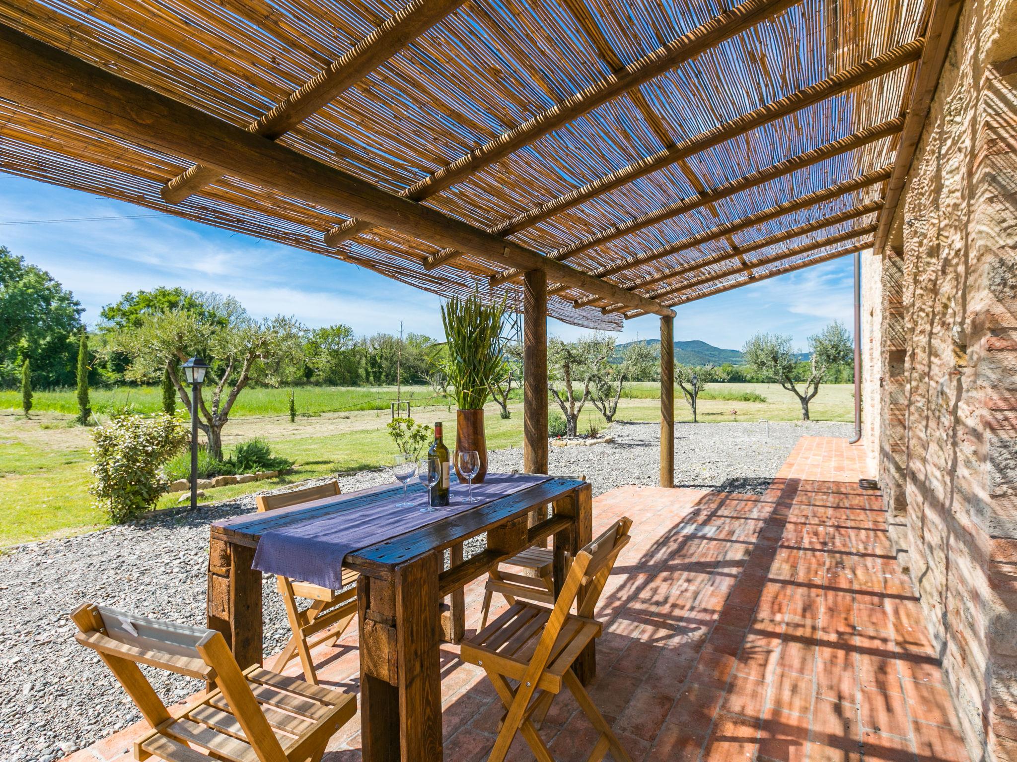 "Olea", 3-room apartment 65 m2, on the ground floor. Object suitable for 2 adults + 2 children. Spacious, beautiful and tasteful furnishings: 1 double bedroom with shower/bidet/WC. Exit to the garden. 1 room with 1 bed, 1 double bed and shower/bidet/WC. Exit to the garden. Kitchen-/living room (Gas stove, 4 gas rings, microwave, freezer) with dining table. Exit to the terrace. Electric heating, air-conditioning. Patio. Terrace furniture. Panoramic view of the countryside. Please note: maximum 1 pet/ dog allowed. Fire extinguisher. IT050015B5AXDWK9MQ