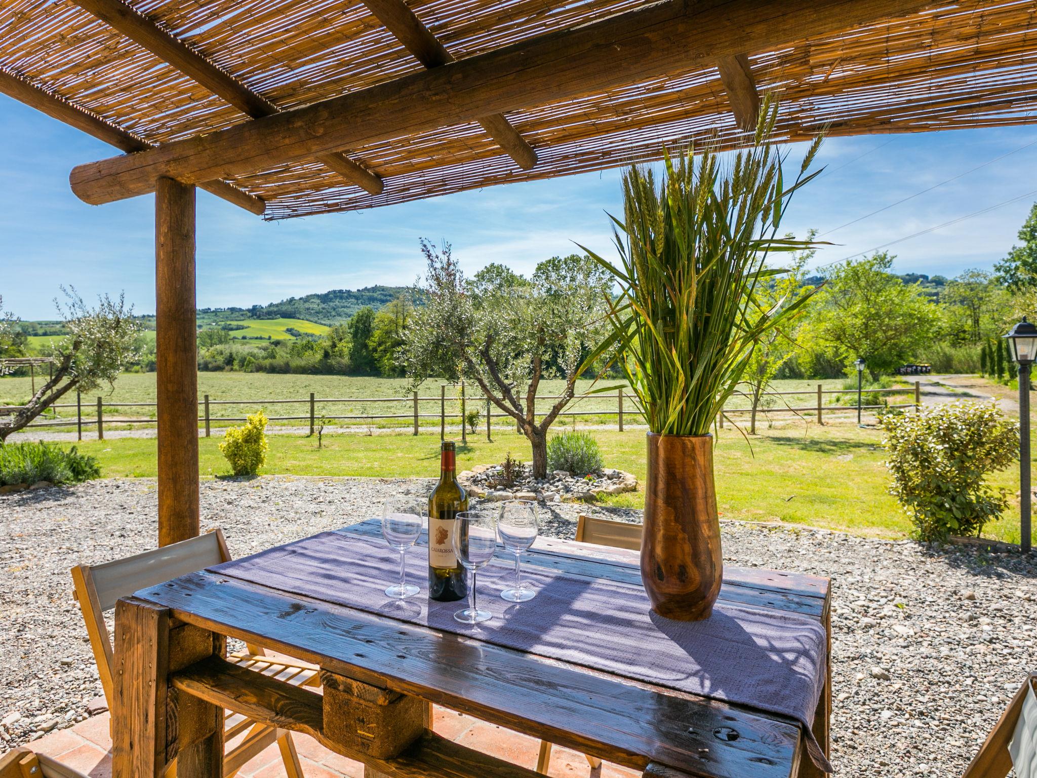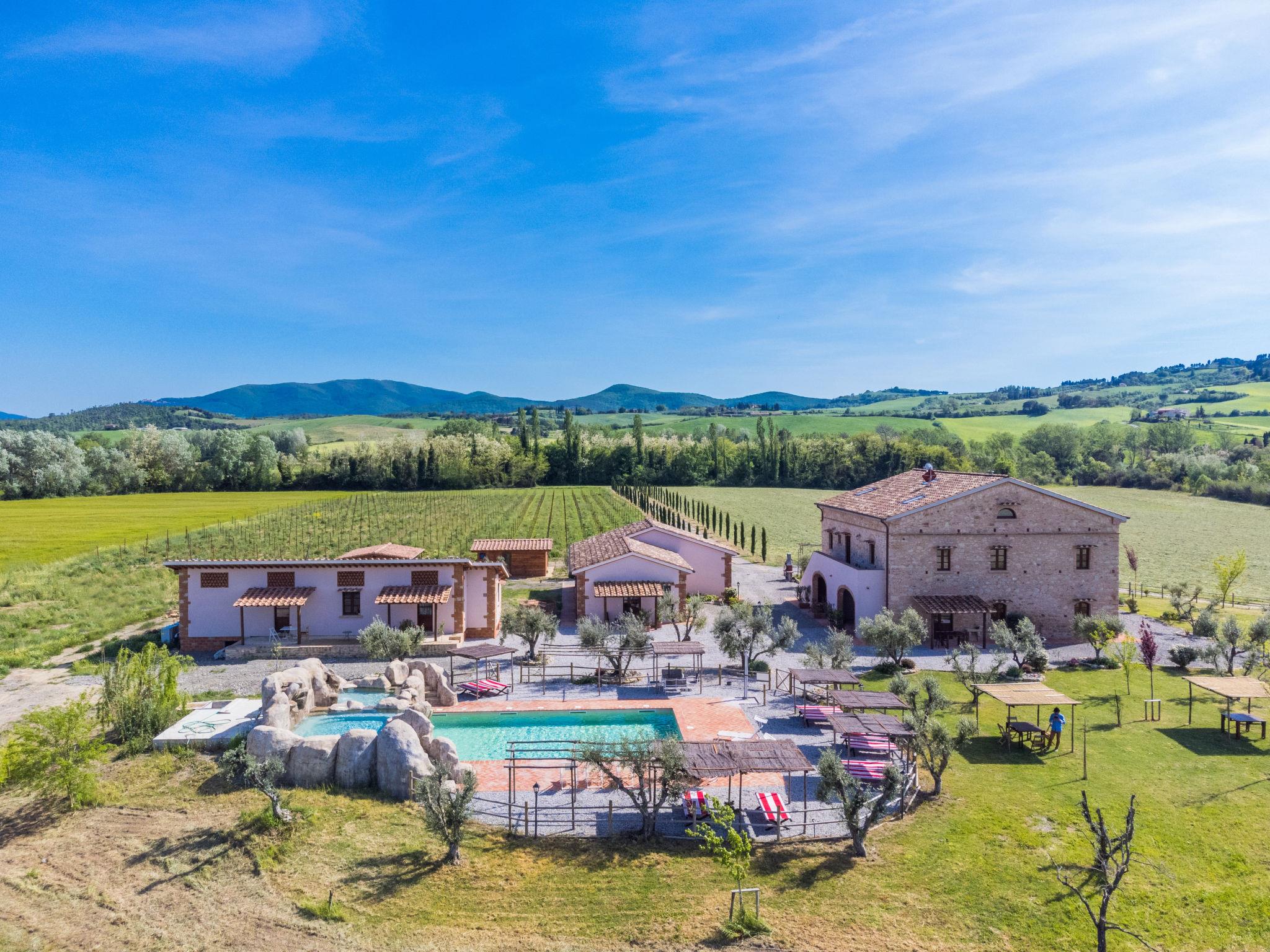 This carefully restored complex is located in the middle of the fields of the Val di Cecina, a few steps from the river of the same name. Much attention was paid to the construction of the swimming pool, where a hydromassage ( about 11 people) and a children's pool carved into the stone were created. Resort "Podere la Querciola", 2 storeys, renovated in 2021, surrounded by meadows and fields. In the district of Casino di Terra 11 km from the centre of Guardistallo, 14 km from the centre of Cecina, in a secluded, quiet position, 16 km from the sea. For shared use: property with plants and trees, swimming pool (6 x 11 m, depth 150 cm, seasonal availability: 01.May. - 15.Oct.). Children's pool, outdoor shower, hot tub, garden furniture, barbecue. In the complex: WiFi, washing machine (extra). Motor access (700 m via unmade road). Parking. Shop 11 km, restaurant 2 km, bar 2 km, bus stop 1.1 km, sandy beach "Marina di Cecina" 16 km. Nearby attractions: Volterra 24 km, Pisa 70 km, Firenze 100 m.