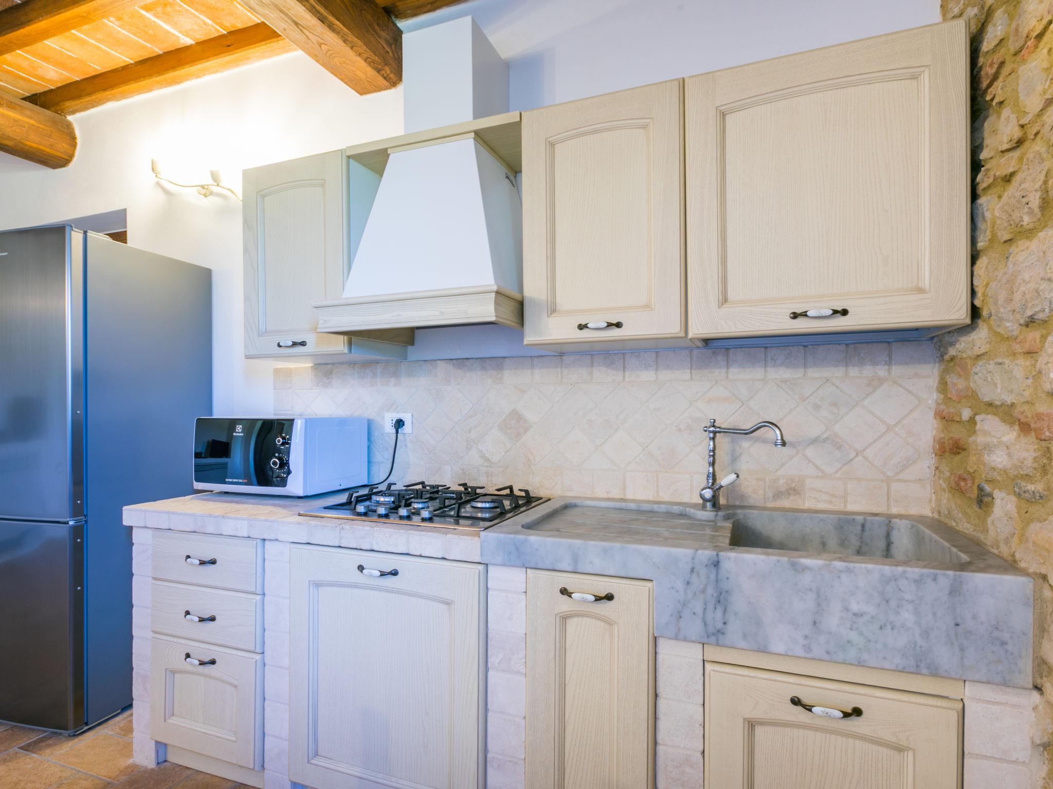 "Sommnium", 3-room apartment 65 m2 on 1st floor. Spacious, beautiful and tasteful furnishings: living/dining room with dining table. 1 double bedroom with shower/bidet/WC. 1 room with 2 beds and shower/bidet/WC. Open kitchen (Gas stove, 4 gas rings, microwave, freezer). Electric heating, air-conditioning. Patio roofed. Terrace furniture. Panoramic view of the countryside. Please note: maximum 1 pet/ dog allowed. Fire extinguisher. IT050015B5AXDWK9MQ