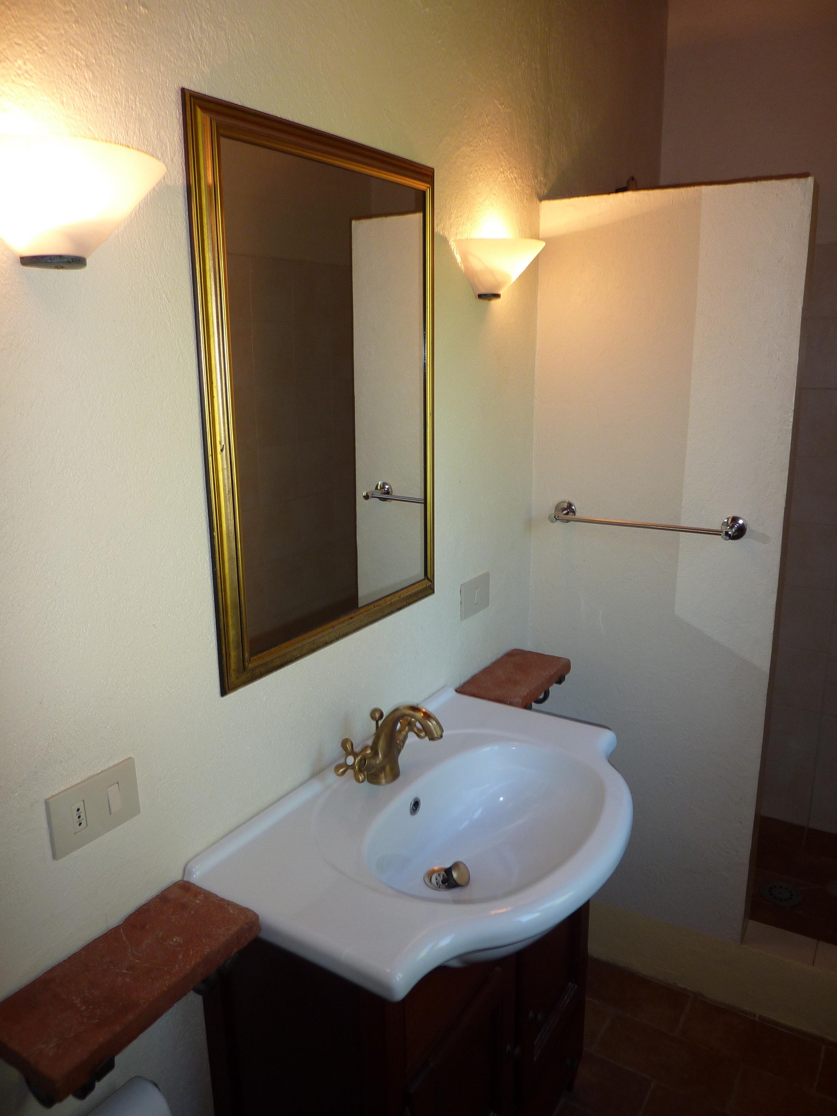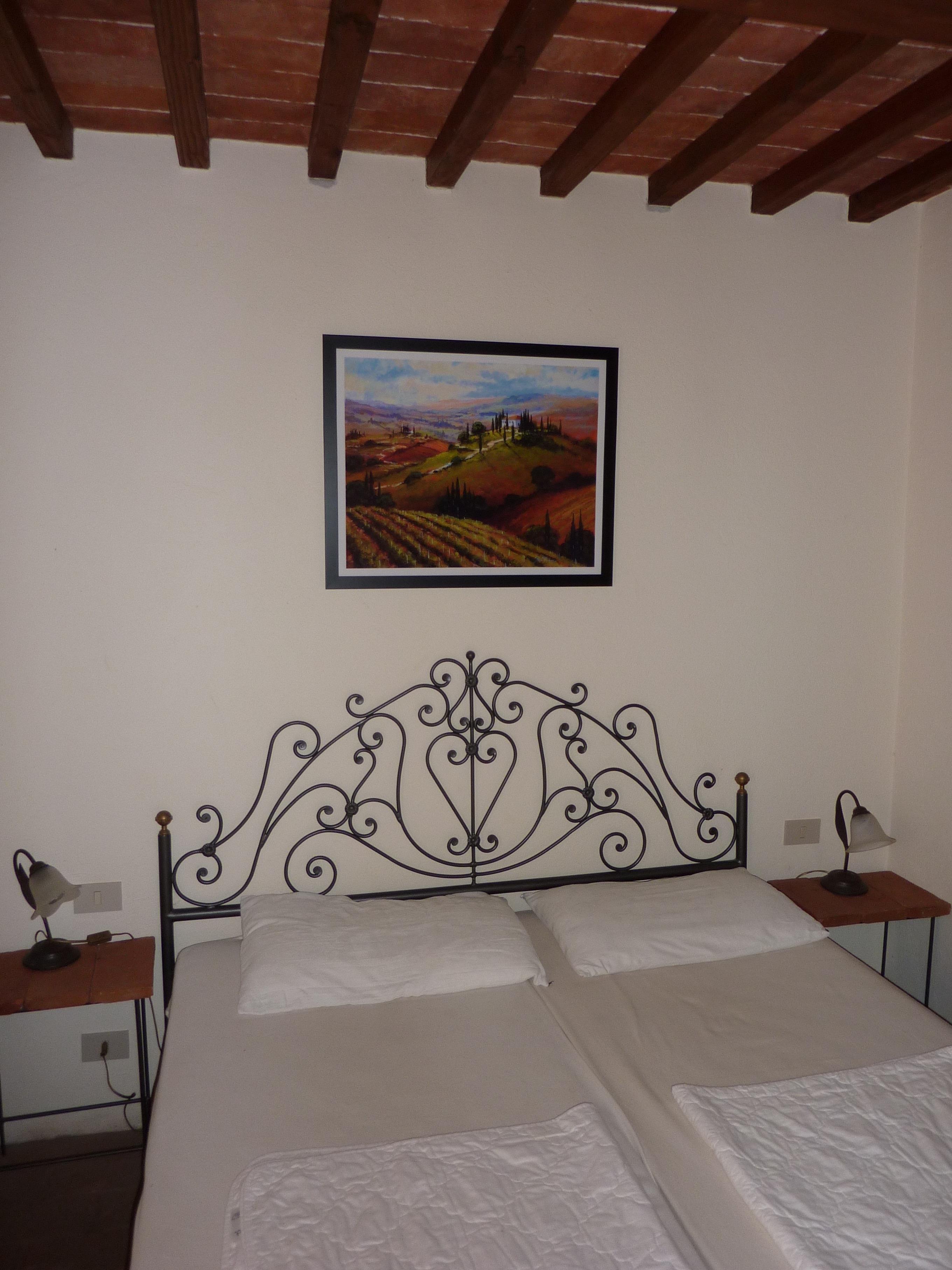 Das Haus verfügt über 2 separate Schlafzimmer, die sich links und rechts vom Wohnzimmer befinden. Jedes Schlafzimmer hat Zugang zu einem eigenen Bad mit Dusche/WC und Waschbecken. Im großzügigen Wohnzimmer ist eine schöne Küche aus Kirschholz (mit Arbeitsplatte aus sardischem Granit) integriert mit anschließendem Essplatz (antiker toskanischer Esstisch). Im Wohnbereich steht eine ausziehbare Schlafcouch (für weitere 2 Personen) sowie 2 Sessel. Flachbildschirm mit Sat TV (Astra) sowie WLAN vorhanden. Das Haus verfügt über eine Zentralheizung, so dass auch im Winter wohlige Wärme gewährleistet ist. Außerdem sorgt ein Kaminofen mit großem Sichtfenster für gemütliche Winterabende.